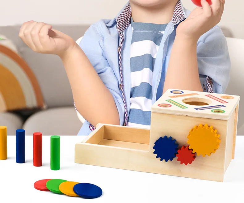 Montessori educatief speelgoed Vroeg leermateriaal Tandwiel Kleuren combineren Houten speelset Baby speelgoed Muntendoos Objectpermanentiedoos Speelgoed