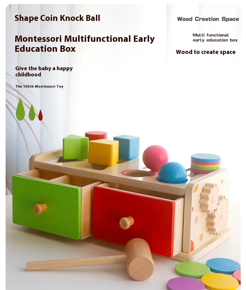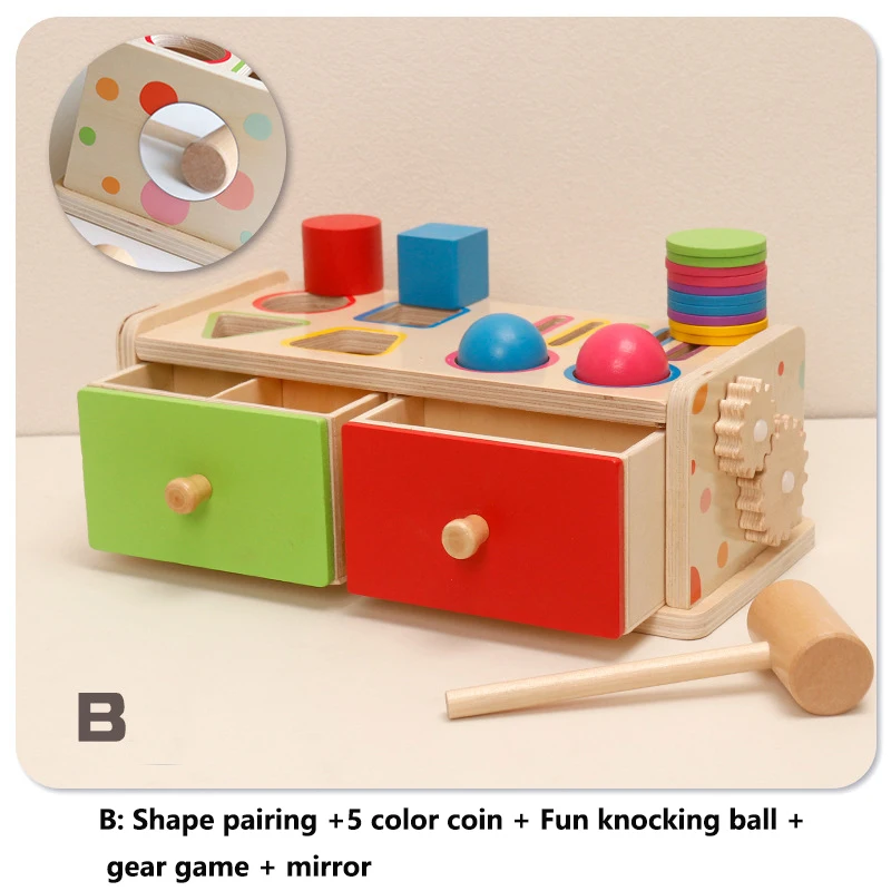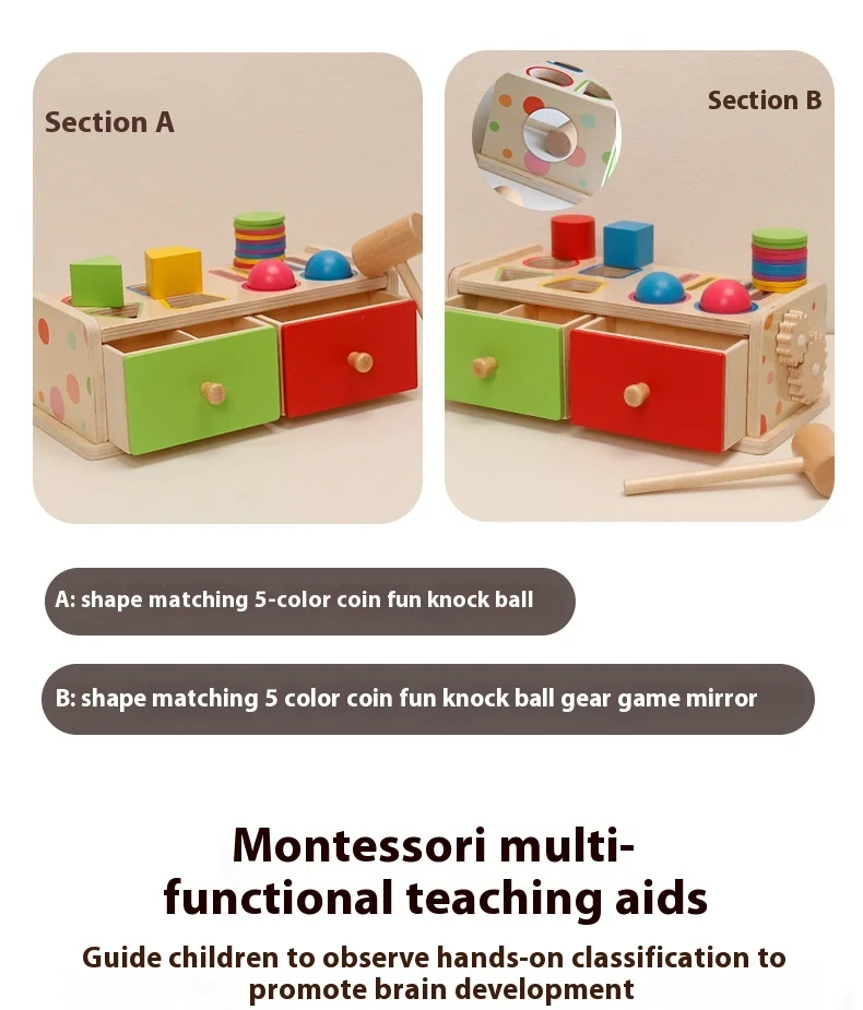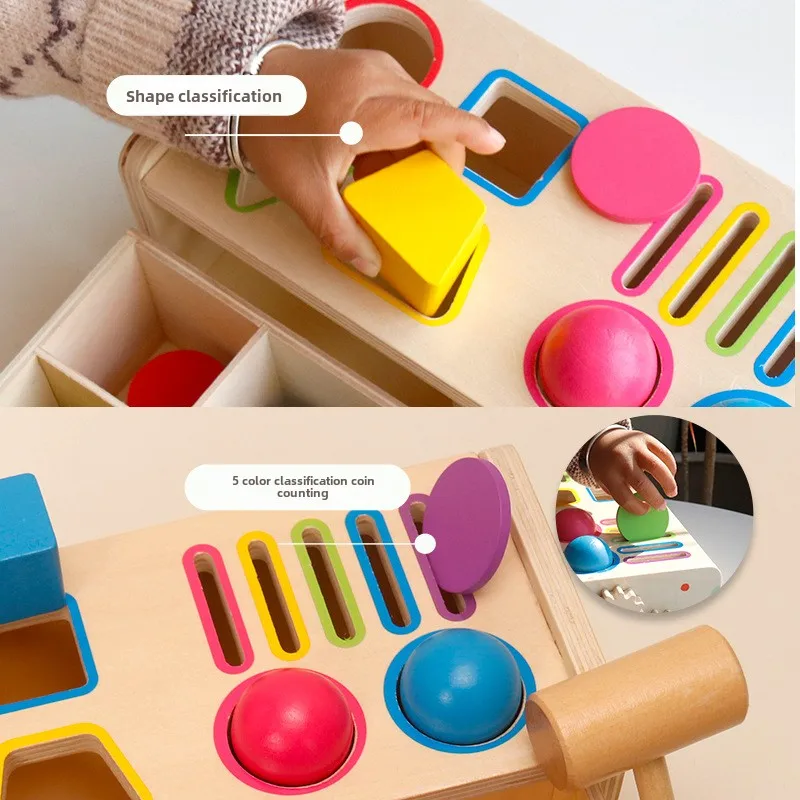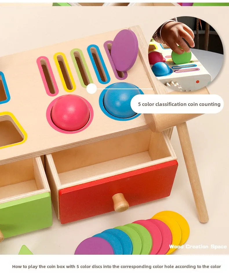 Montessori Houten Multifunctionele Dubbele Laadjes Muntbal Laadjesdoos voor Vroege Educatie Intelligentie Ontwikkeling Speelgoed voor Kinderen
