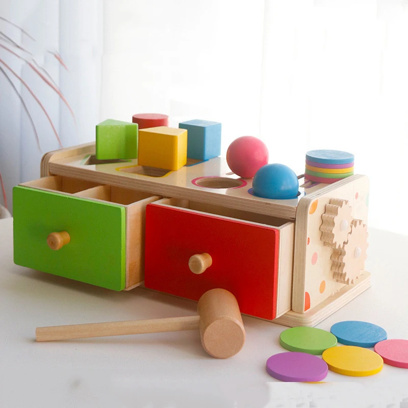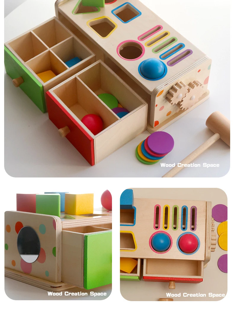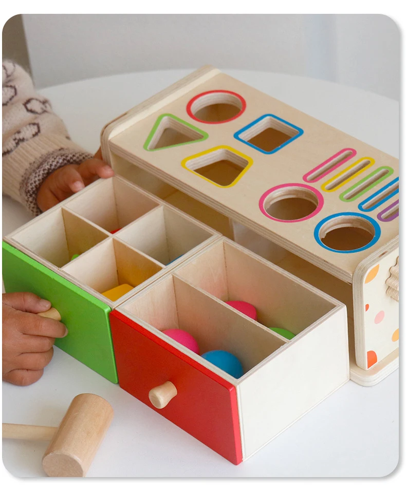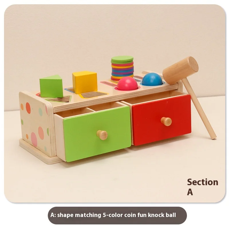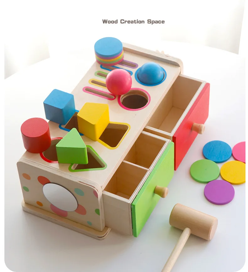 Montessori Houten Multifunctionele Dubbele Laadjes Muntbal Laadjesdoos voor Vroege Educatie Intelligentie Ontwikkeling Speelgoed voor Kinderen