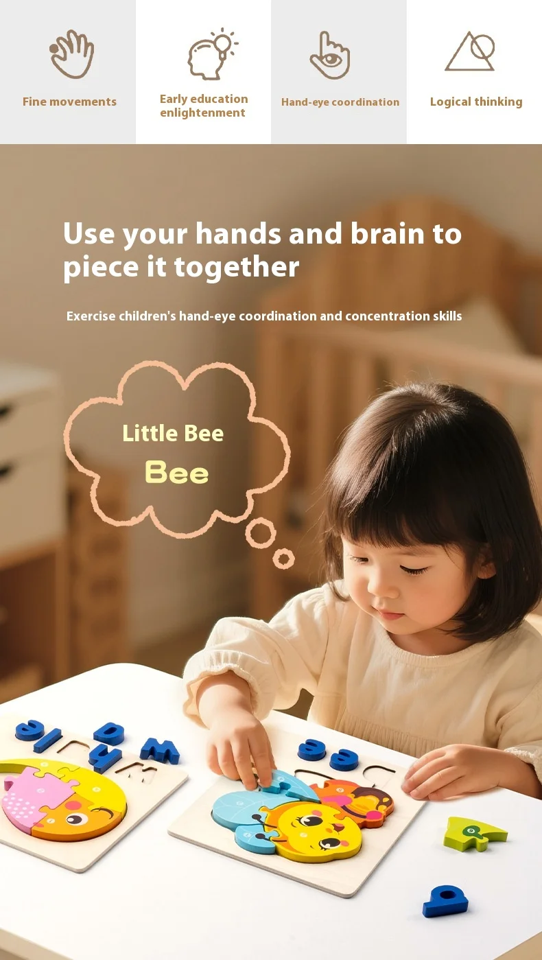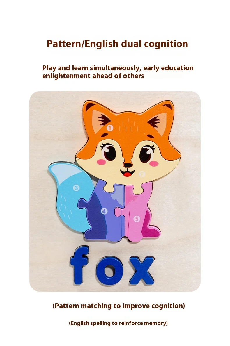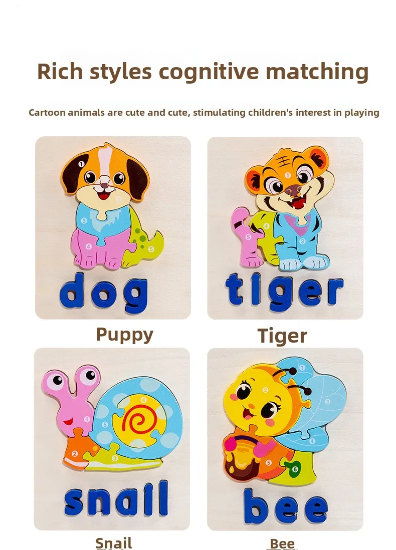 Niestandardowa 3D układanka zwierzęca gra planszowa, układanie alfabetu, montessori edukacyjne zabawki dla dzieci chłopców i dziewczynek