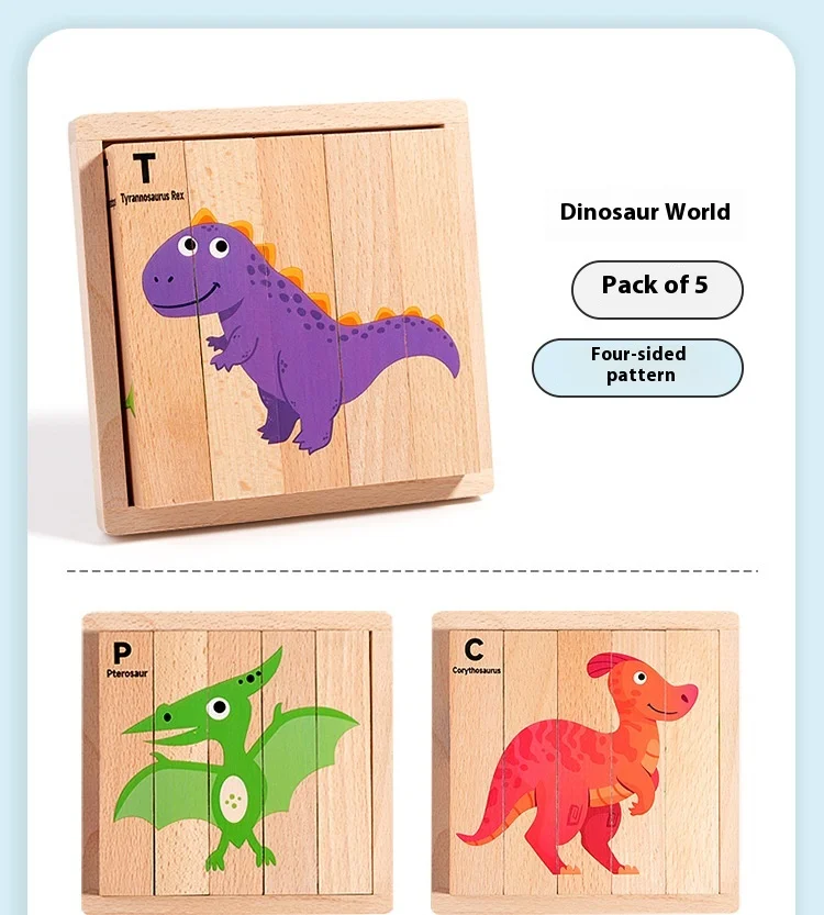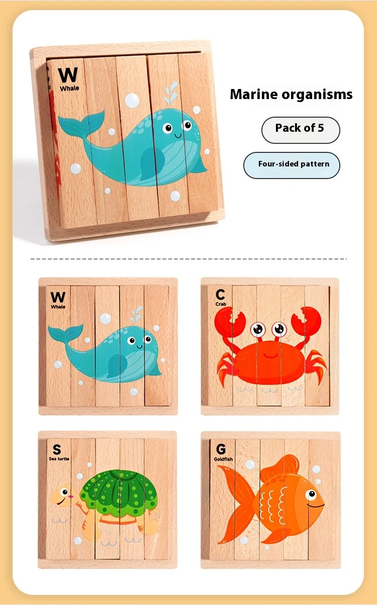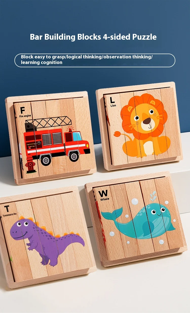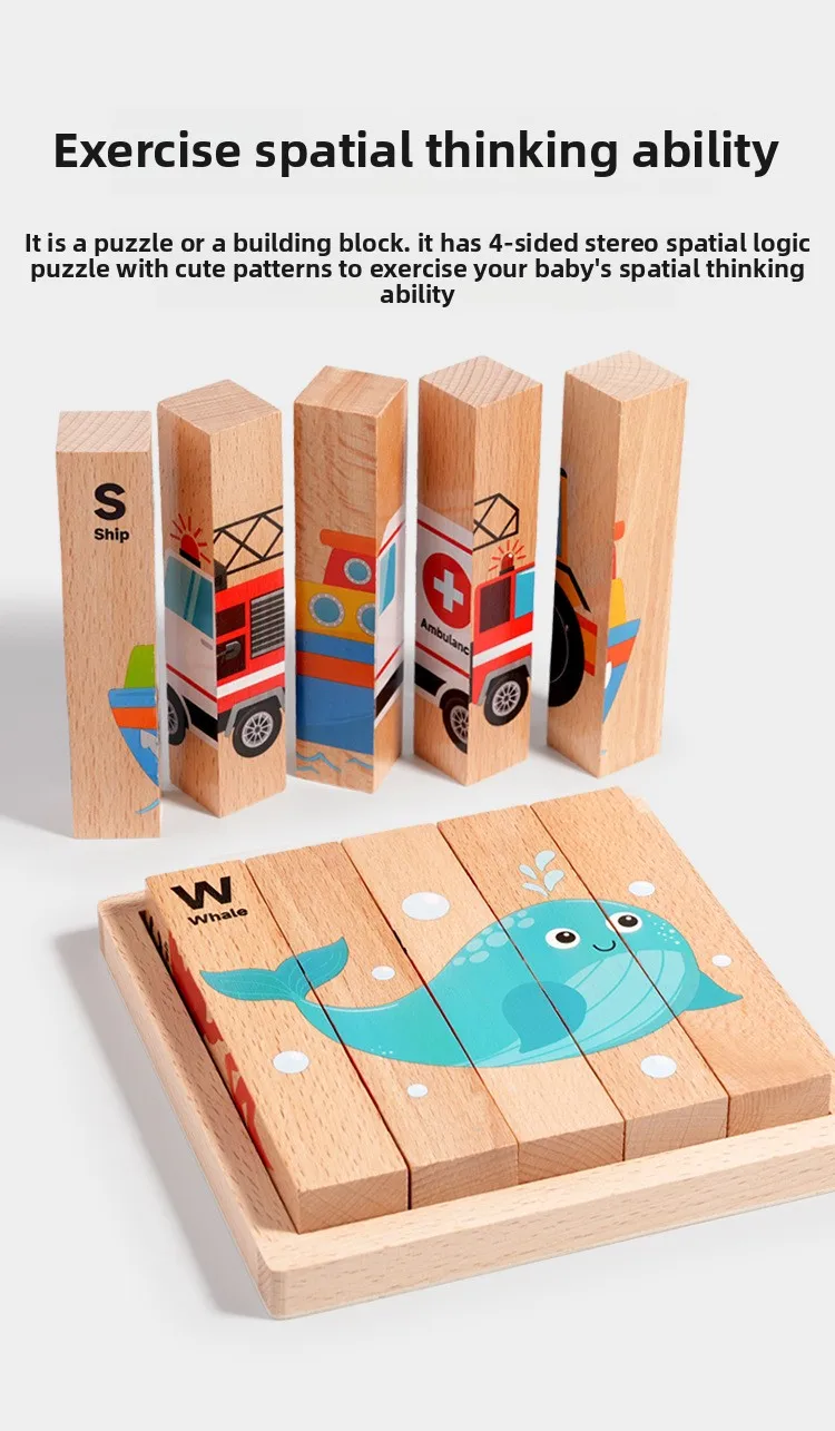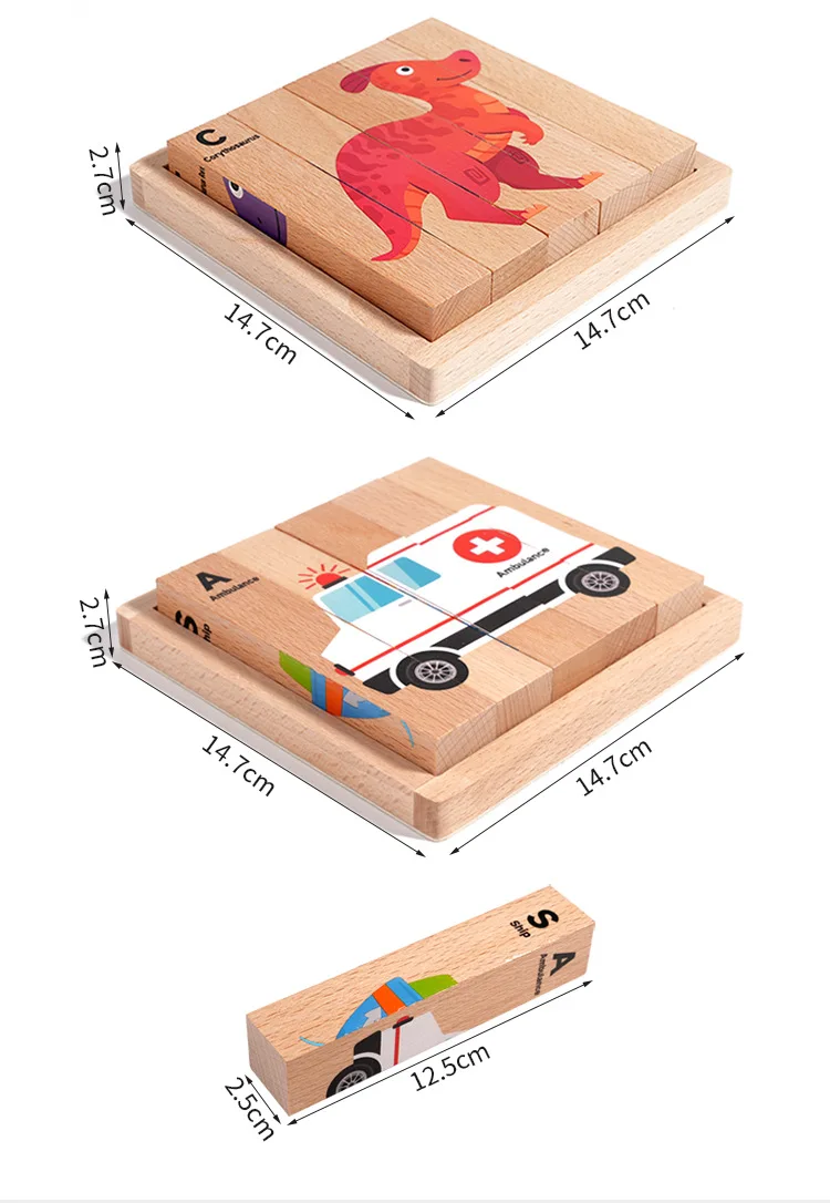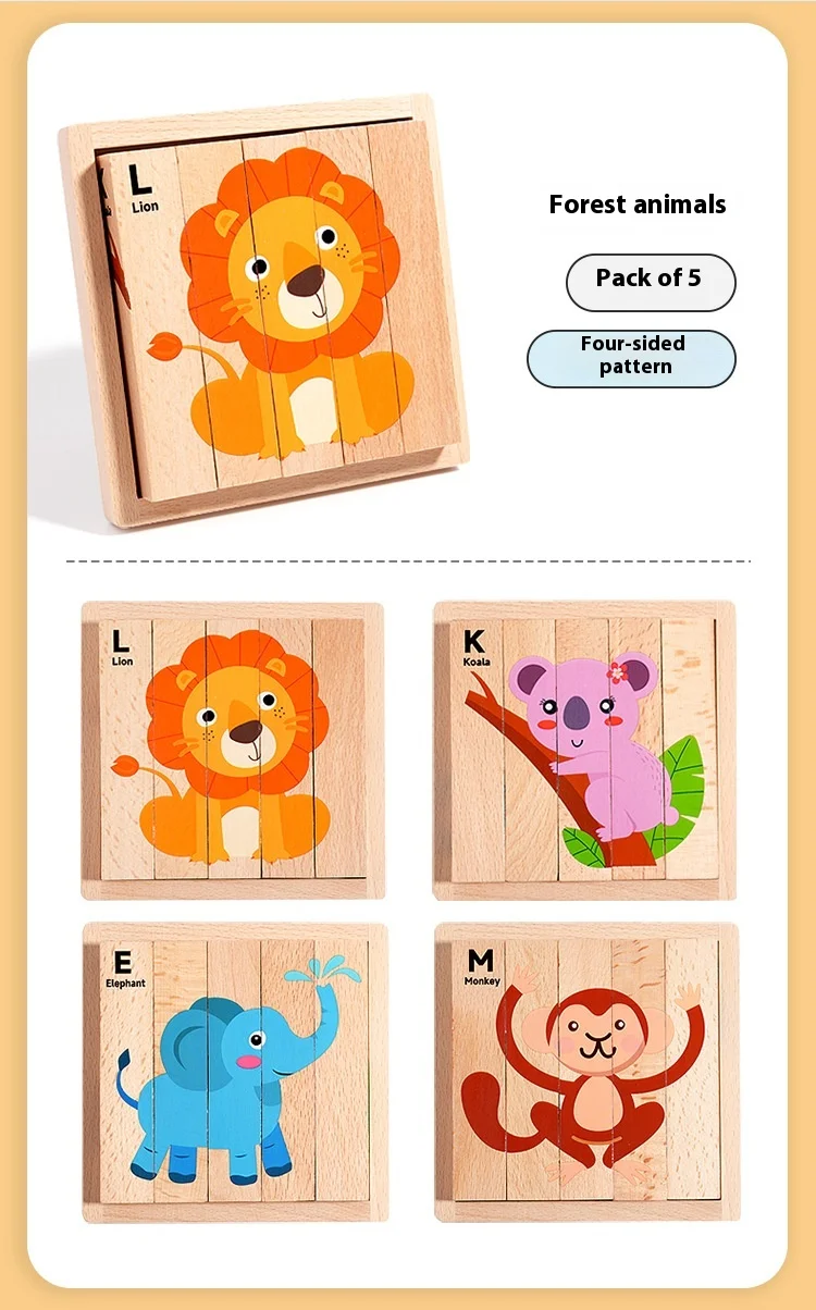 Inspirowane metodą Montessori drewniane puzzle blokowe Zabawka klocki z kolorowymi postaciami zwierząt Edukacyjny zestaw do nauki dla przedszkolaków i najmłodszych 4 w 1