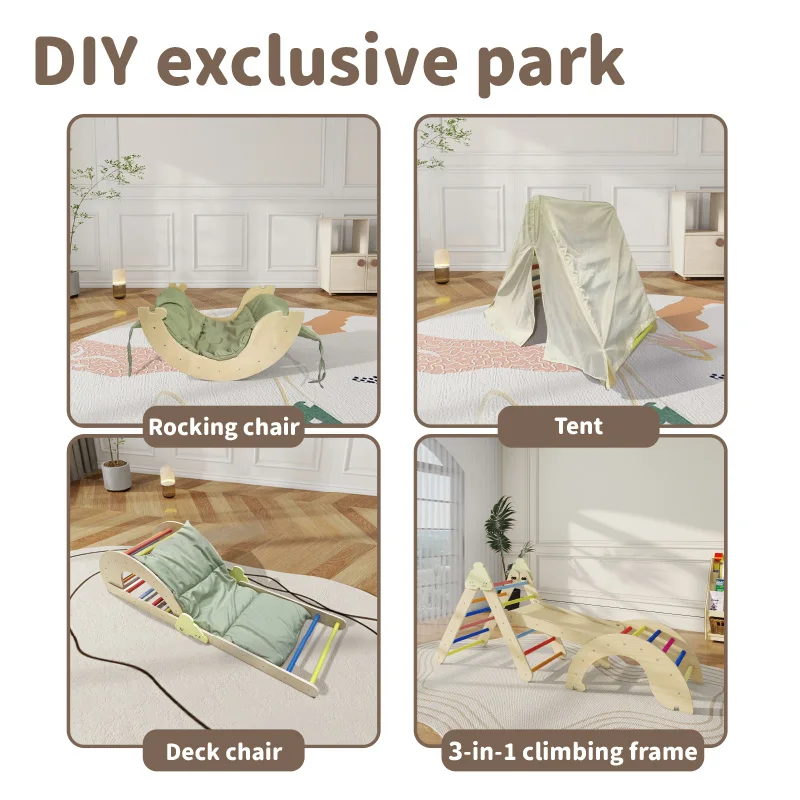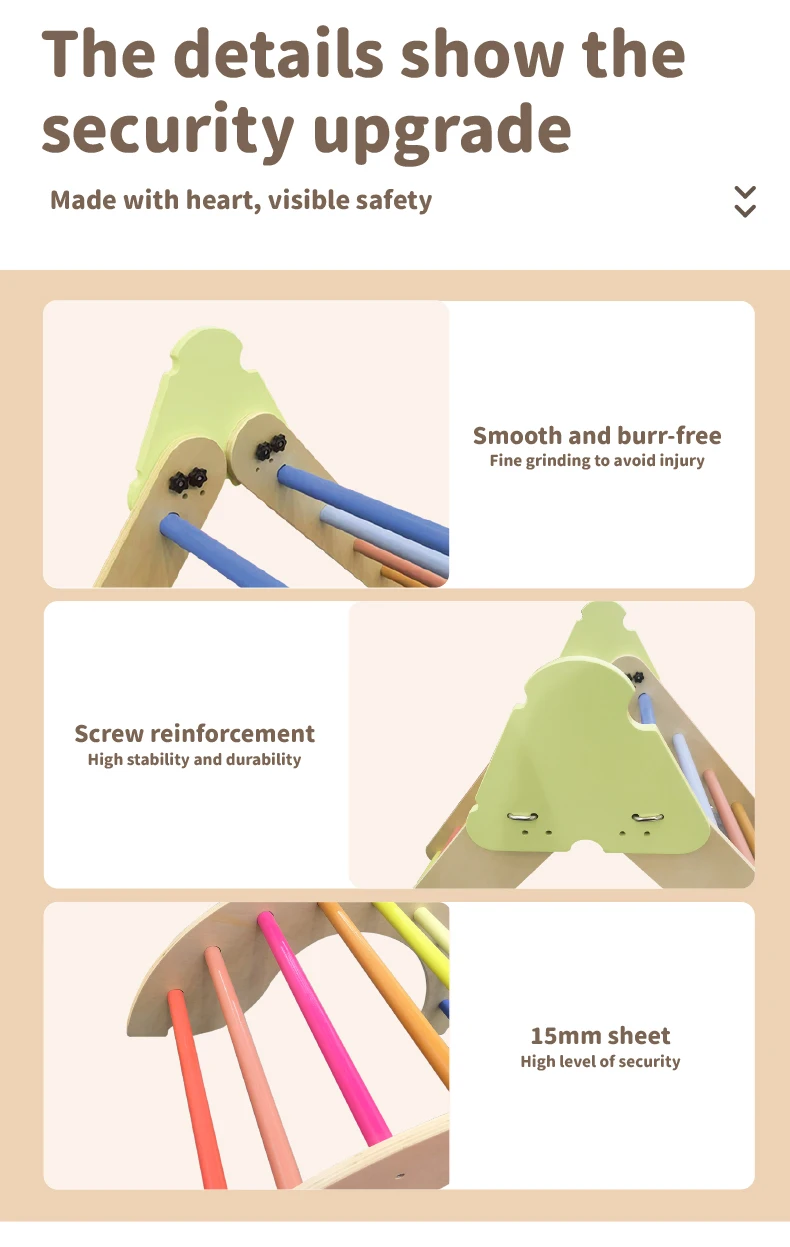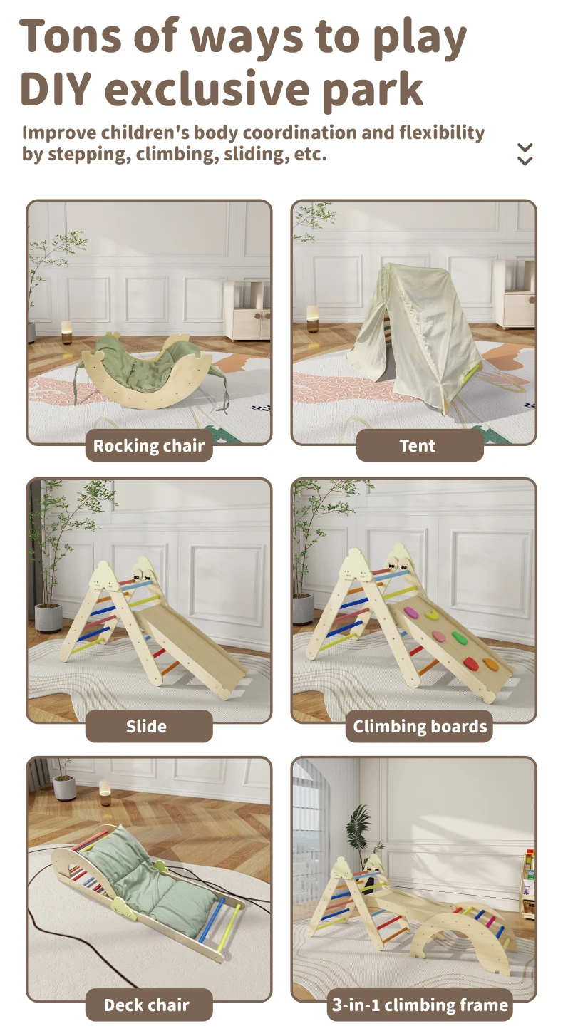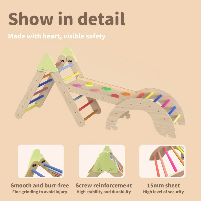 Oryginalny drewniany zestaw zabawek w stylu Montessori z elementami do wspinaczki, trójkąt Picklera dla małych dzieci, siłownia przedszkolna