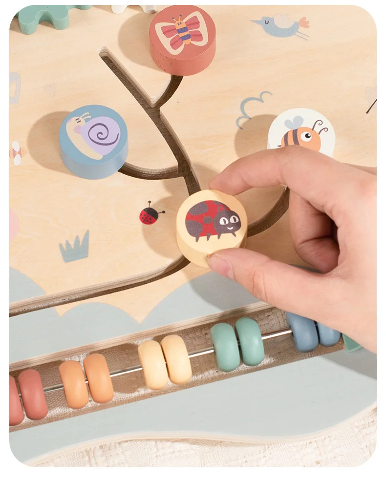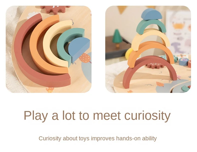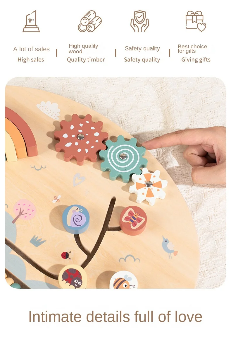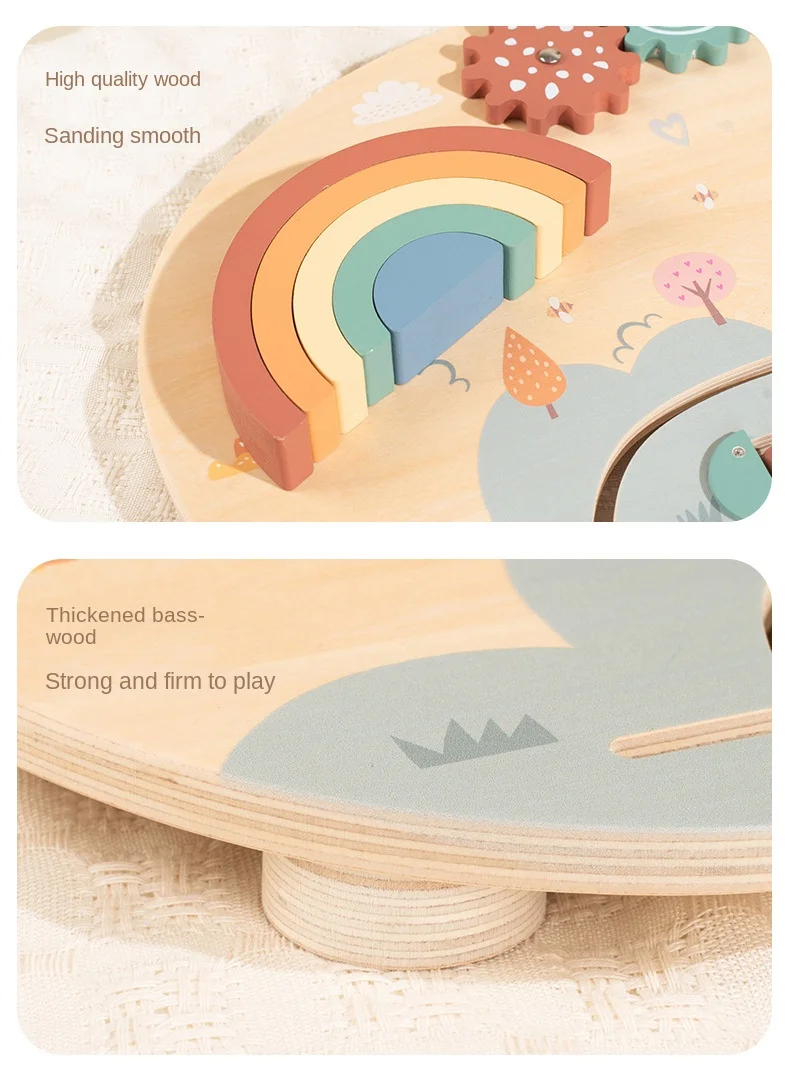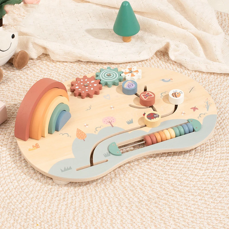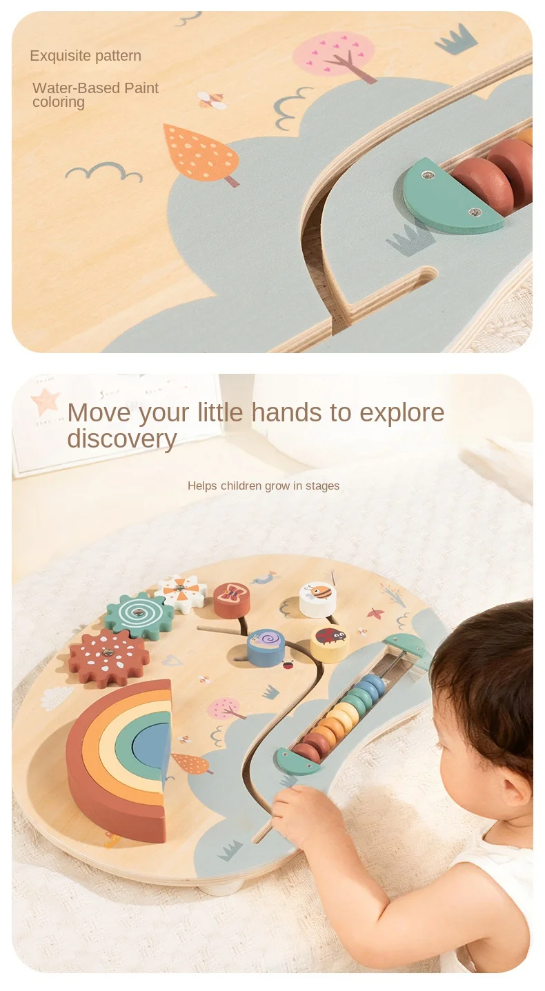 Baby Wooden Activity Board with Rainbow Stacker Gears and Abacus for Toddlers Montessori Educational Sensory Busy Board for Kids