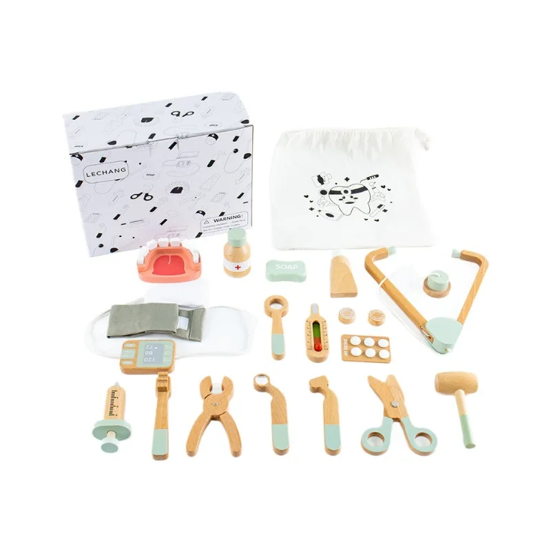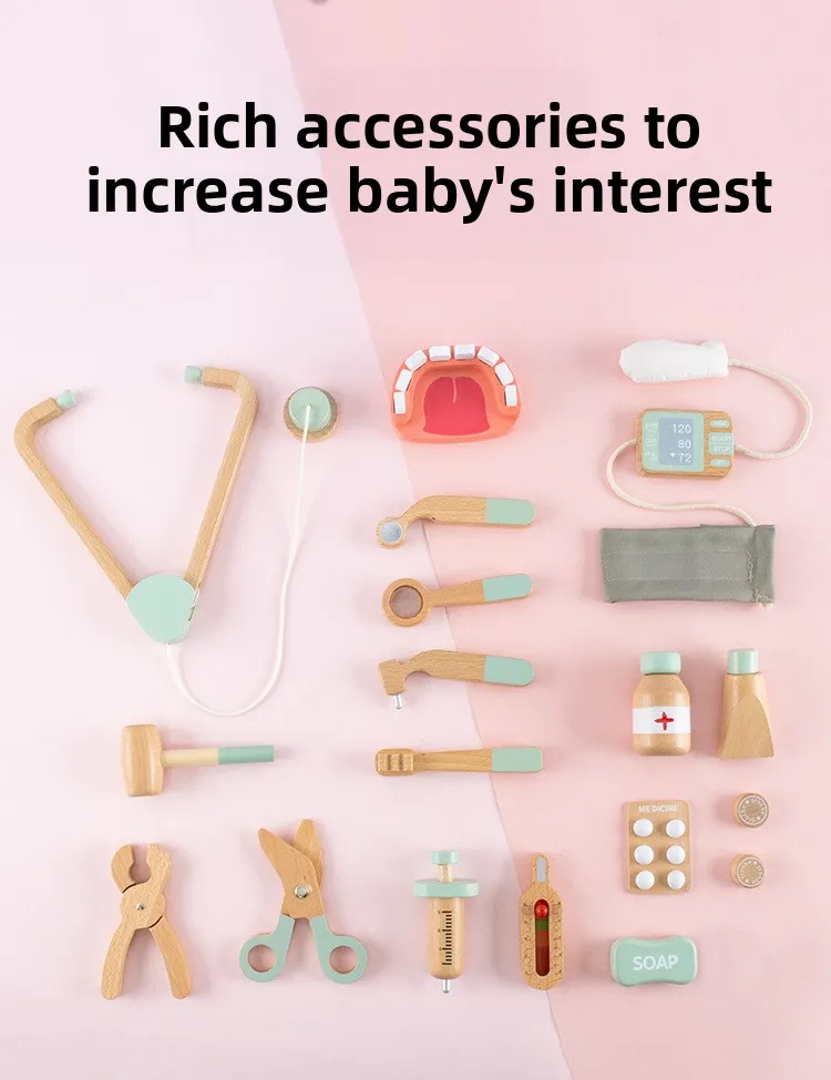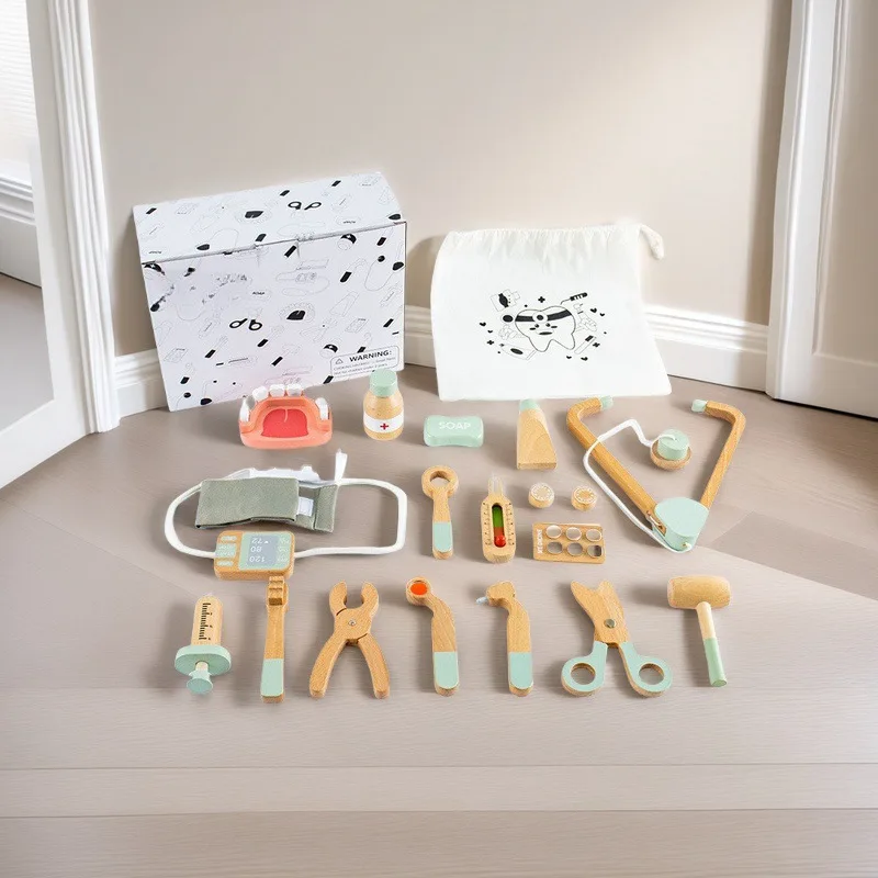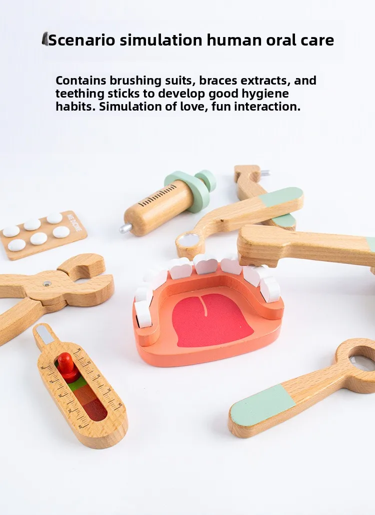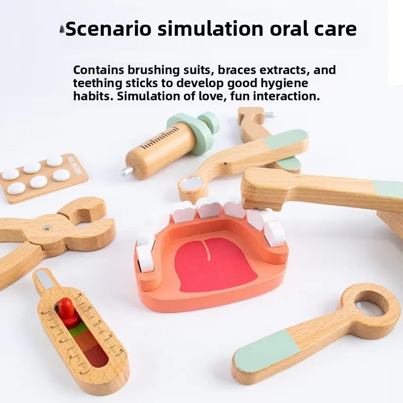 Children Role Play Pretend Wooden Doctor Set Simulation Dentist Tool Medical Play Toy Kids Educational Wooden Toys