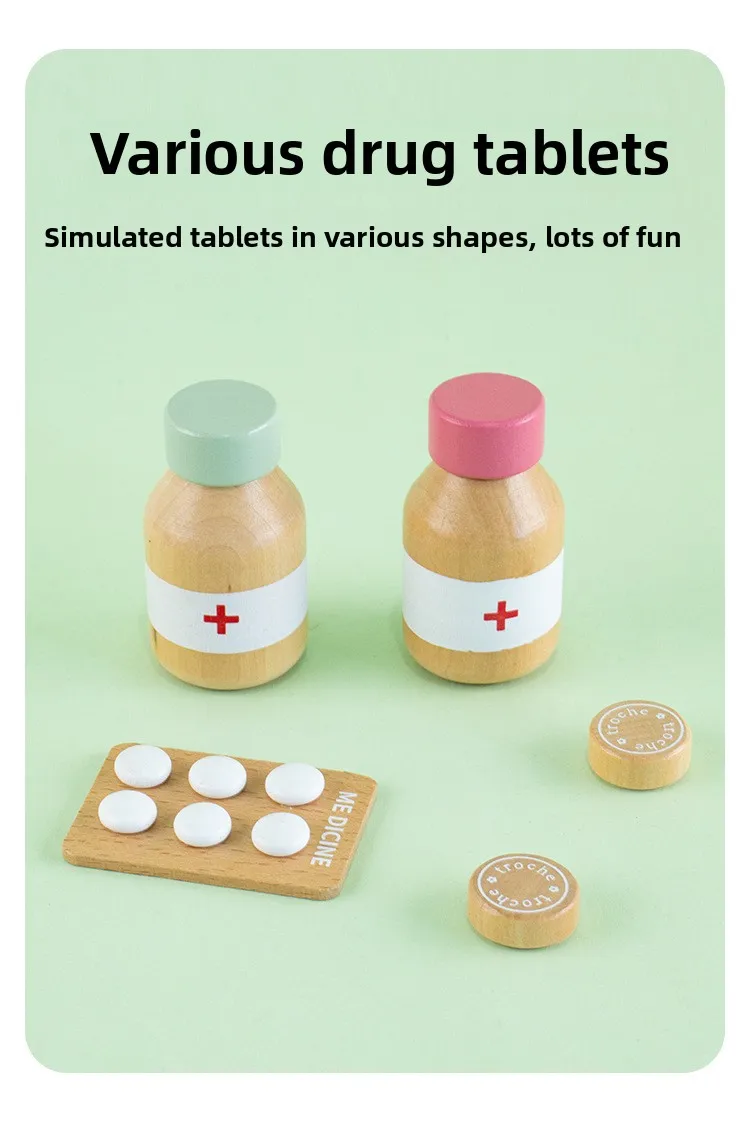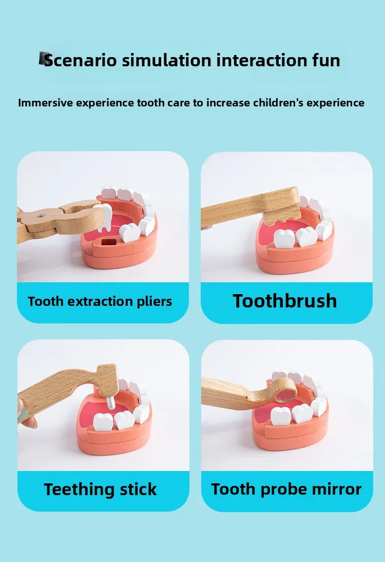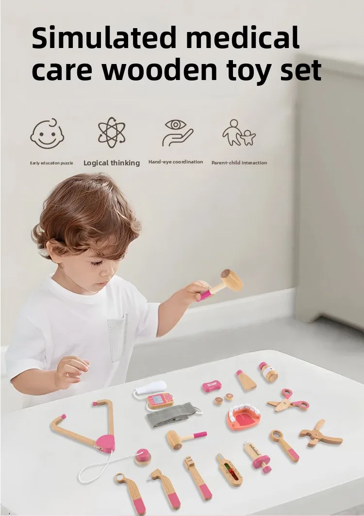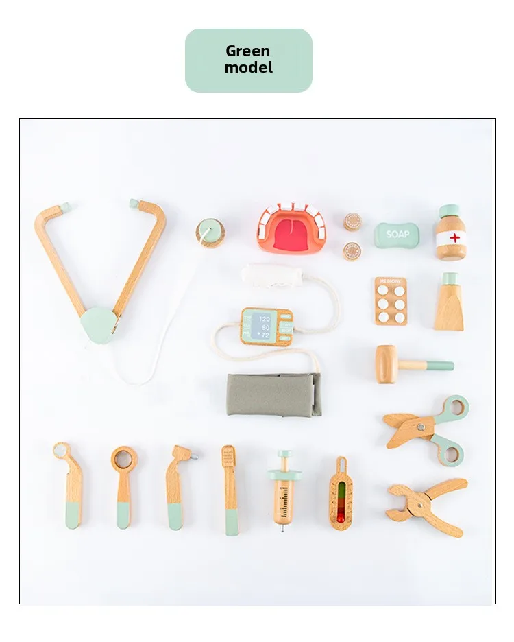 Children Role Play Pretend Wooden Doctor Set Simulation Dentist Tool Medical Play Toy Kids Educational Wooden Toys