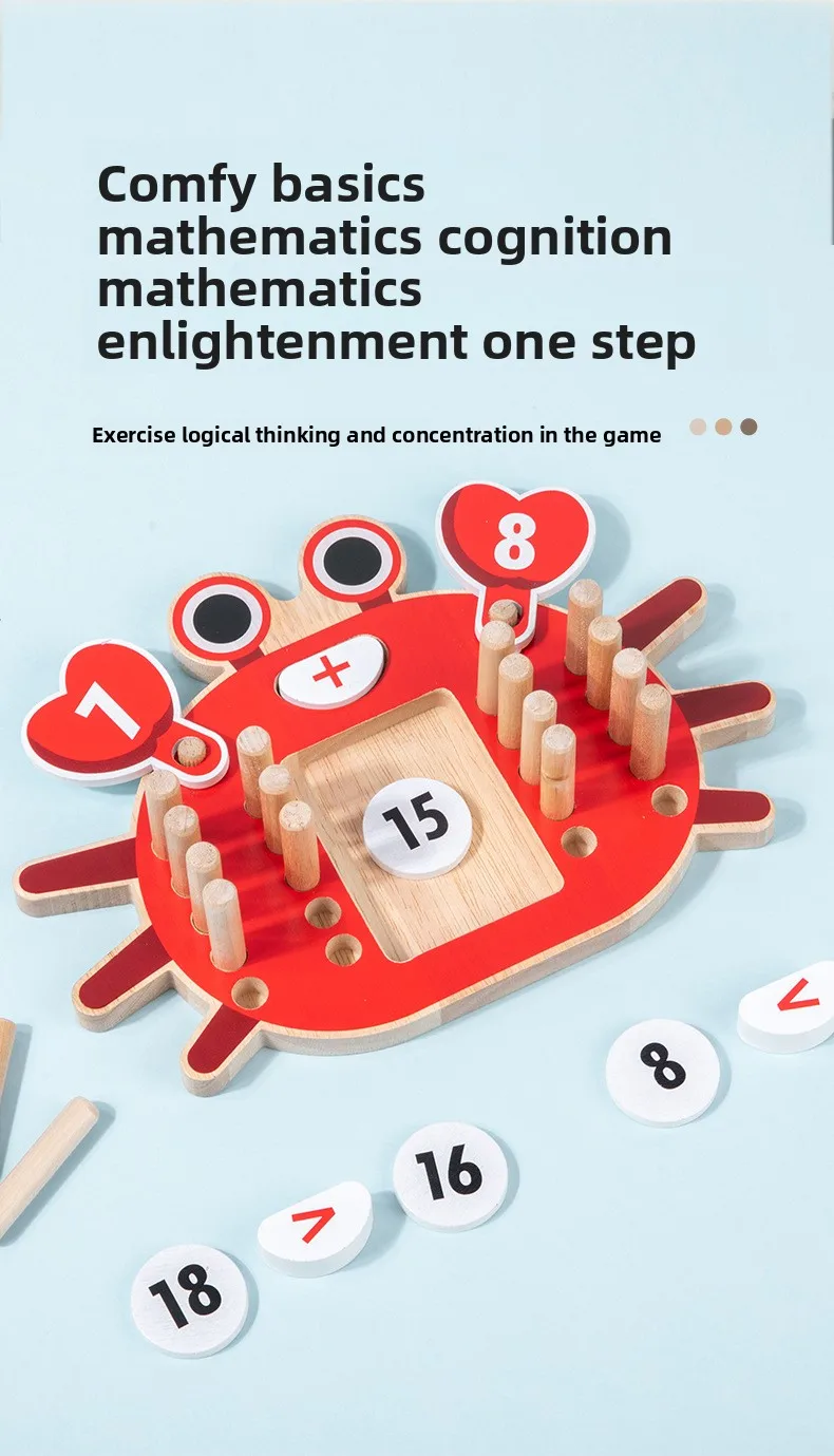 Montessori Math Manipulatives Wooden Learning Number and Counting Crab Games Board Teaching Aids Educational Toys for Kids