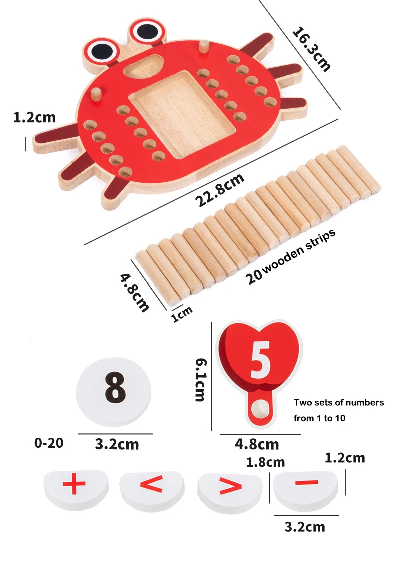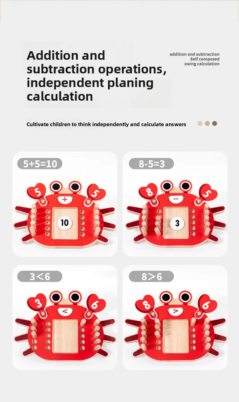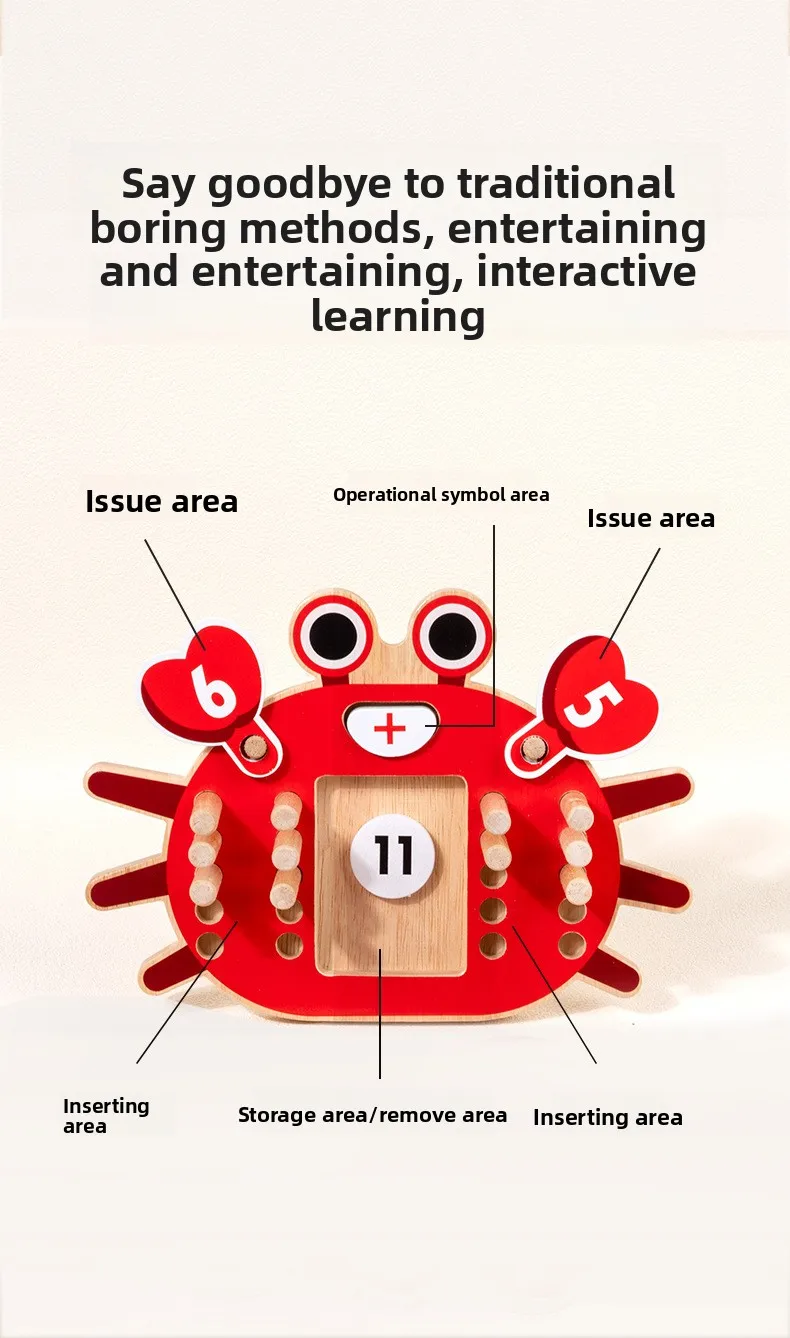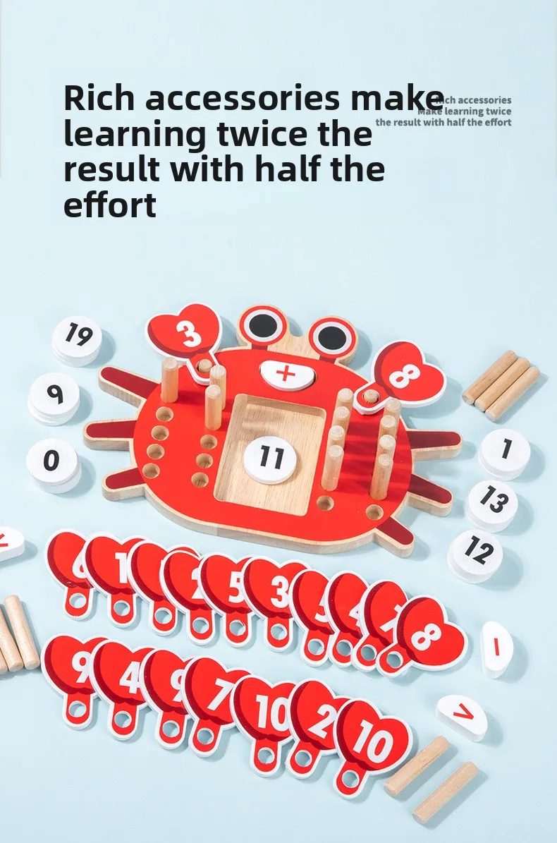 Crab Montessori Math Manipulatives Wooden Learning Number and Counting Games Board Teaching Aids Educational Toys for Kids