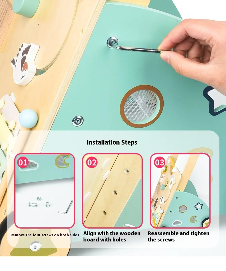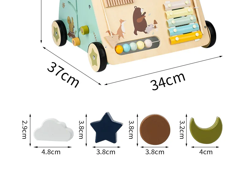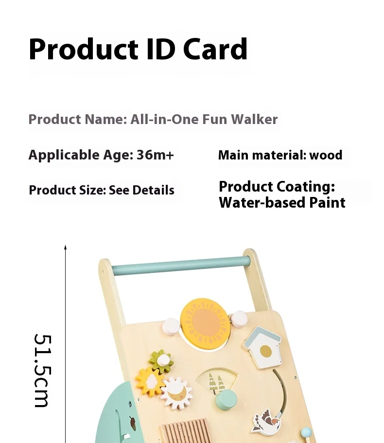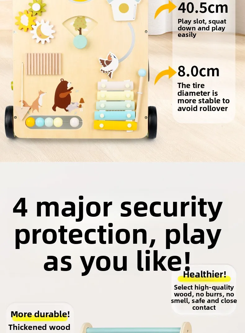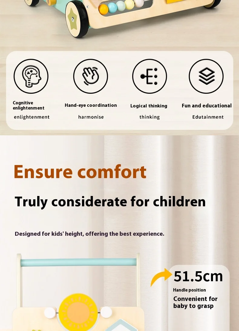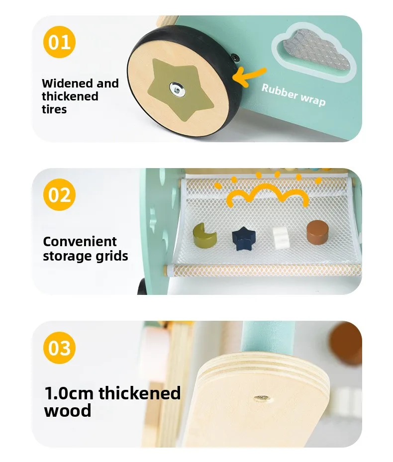 CPC CE Wooden Baby Push Walker and Toddler Pull Learning Activity Toy Develop Motor Skills for Toddler