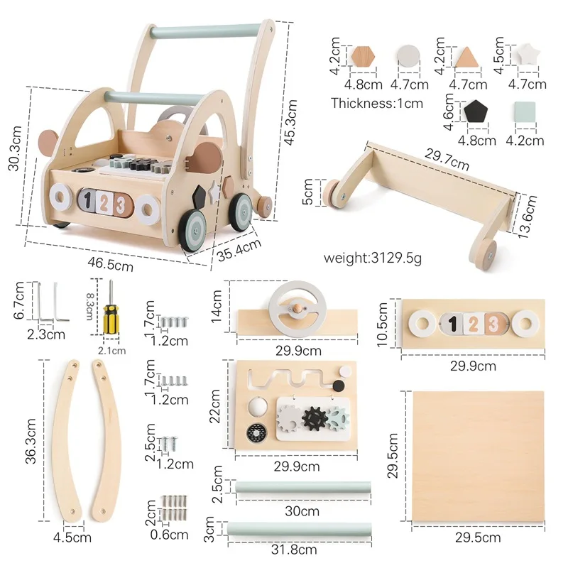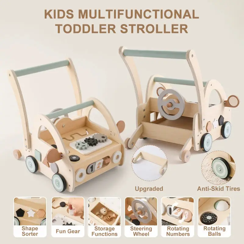 CPC CE Baby Multifunctional Wooden Toys Walker Stroller Puzzle Shape Matching Toys Baby Learning Walk Activity Baby Walker