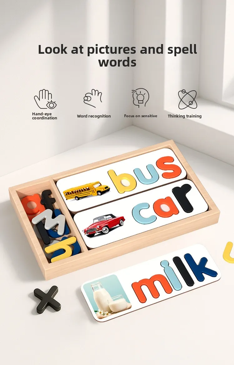 Kid See and Spell Word Games Learning Toy Alphabet ABC Letter Cards Matching Blocks Toy Children Spell Learning Educational Toys