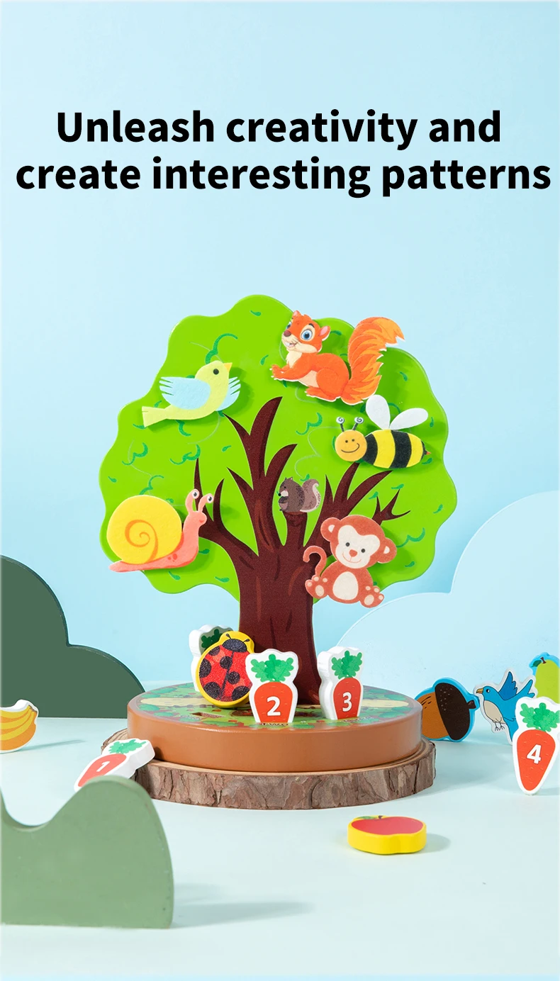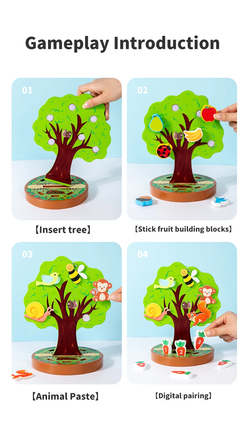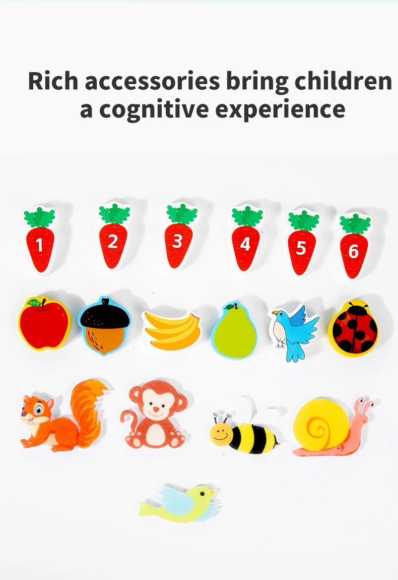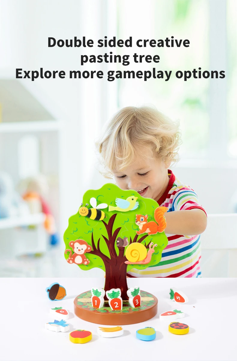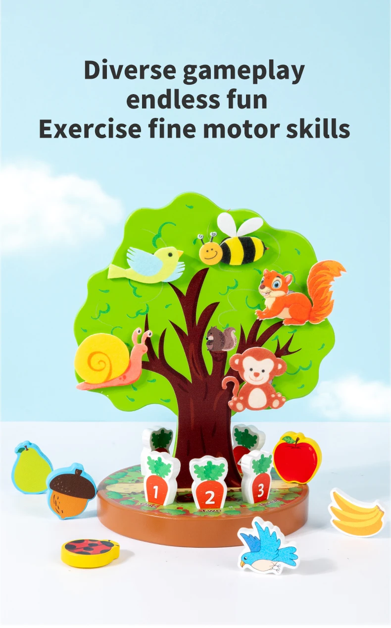 Montessori Early Education Wooden Toys Creative Animal Fruit Felt Sticker Tree Toy for Toddlers Fine Motor Skill Development