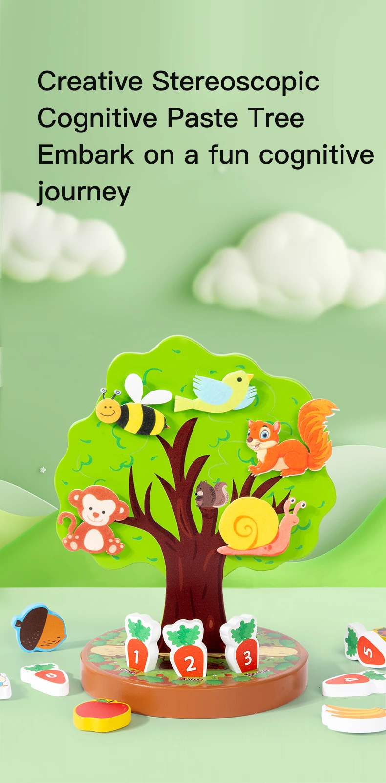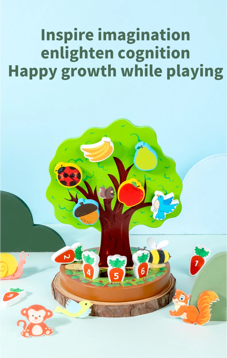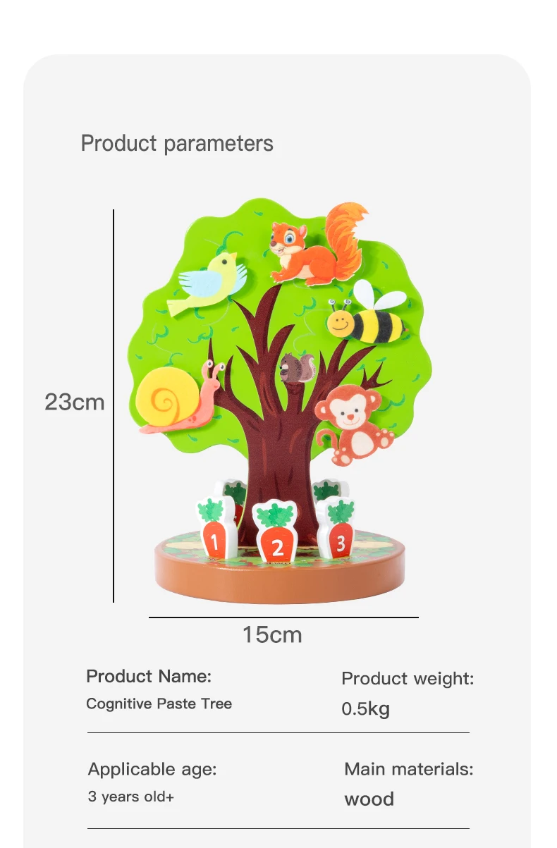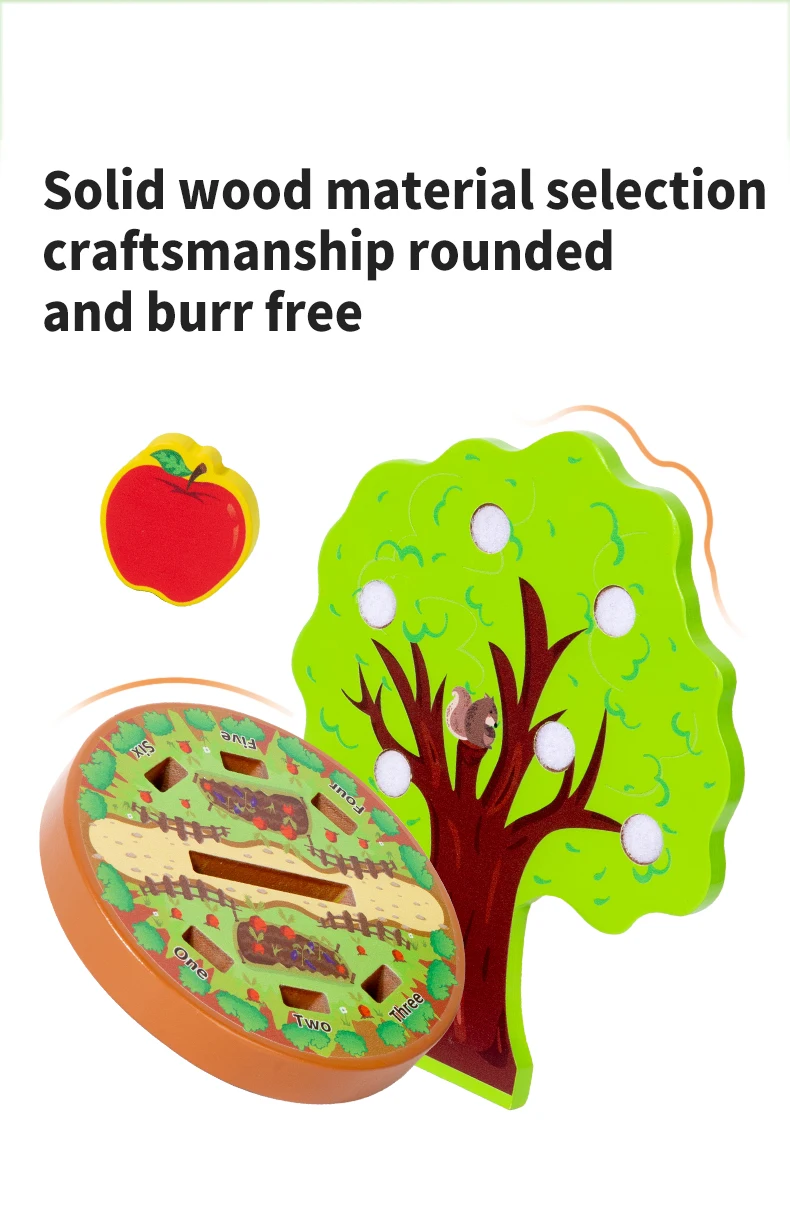 Montessori Early Education Wooden Toys Creative Animal Fruit Felt Sticker Tree Toy for Toddlers Fine Motor Skill Development