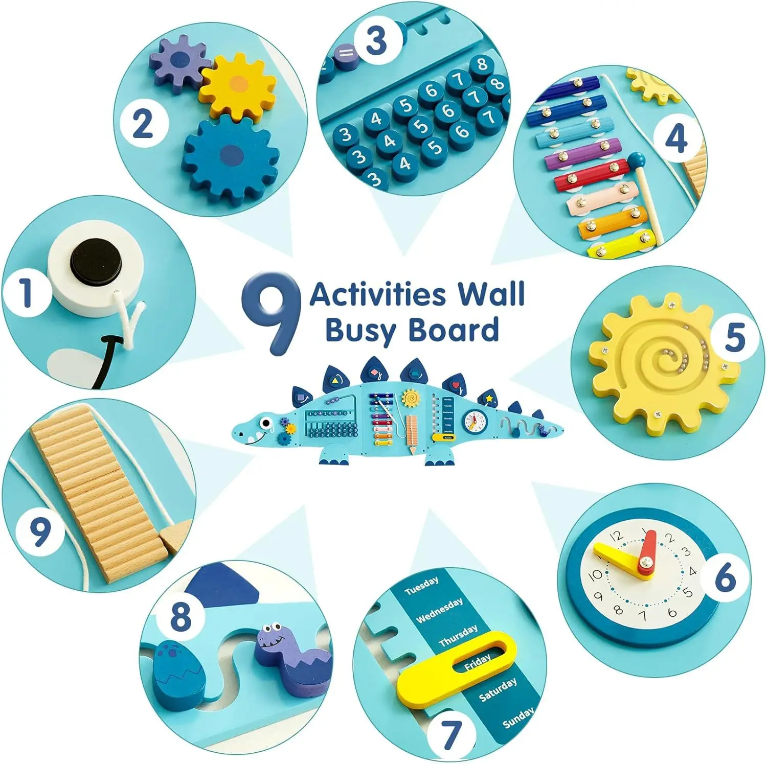 Montessori Sensory Wall Toy Activity Wall Panel Busy Board Wood Educational Toys for Toddlers Playroom & Daycare