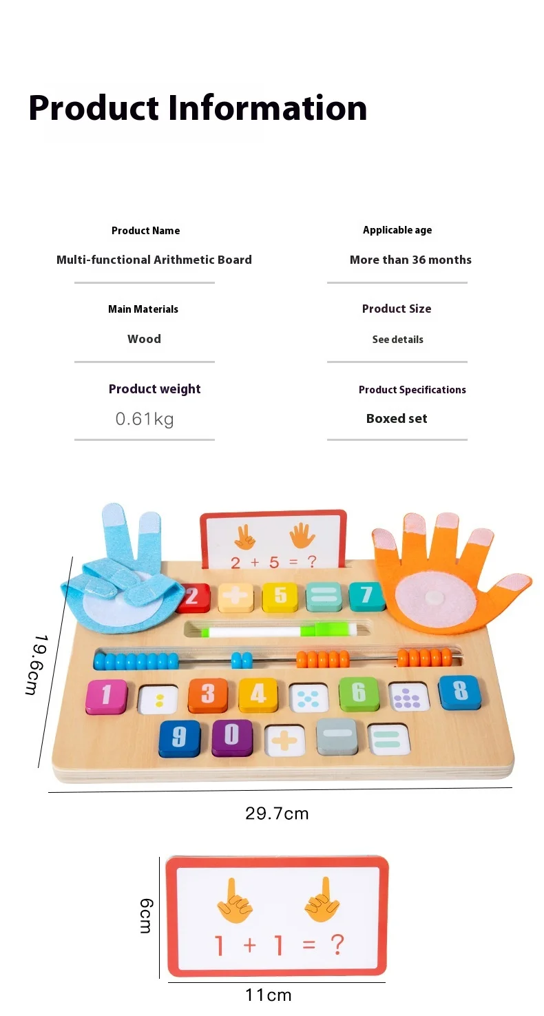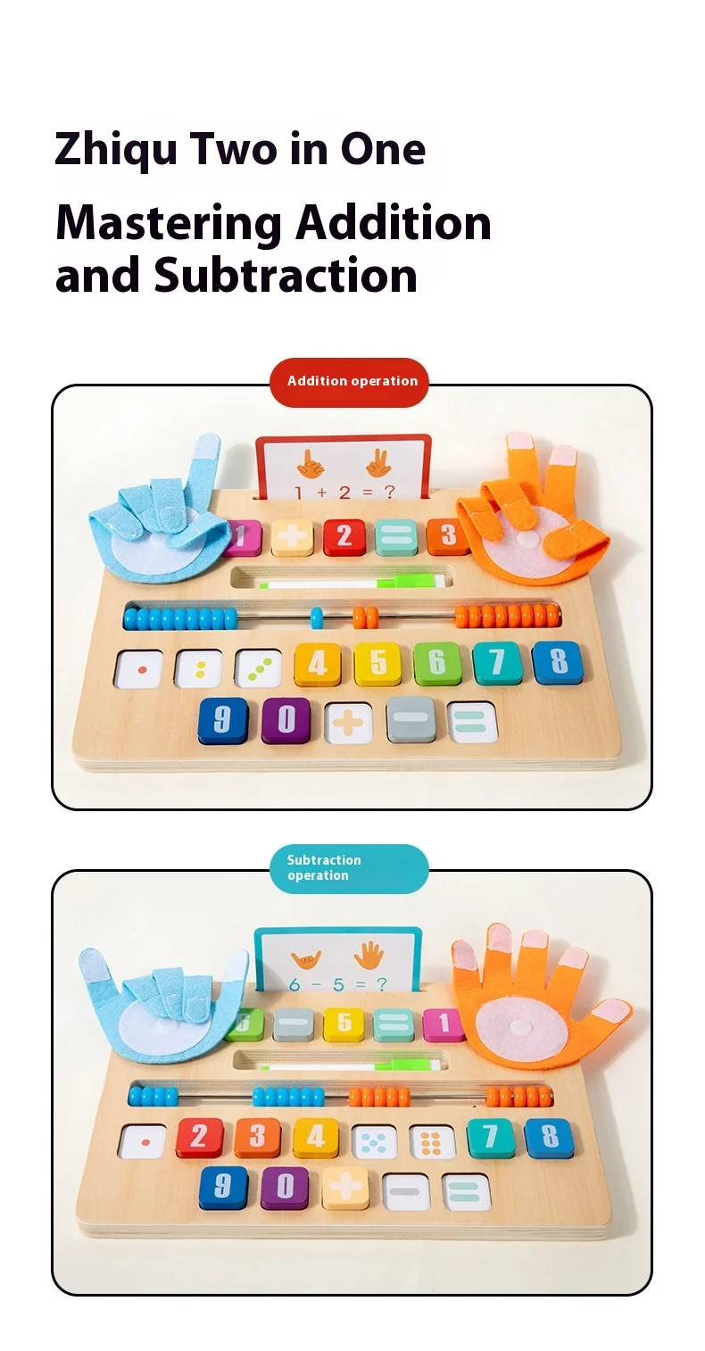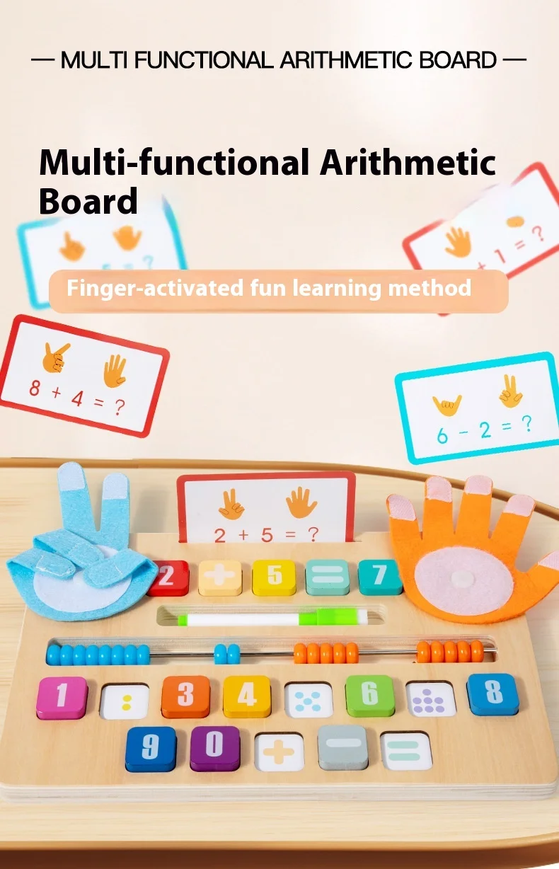 Multi-Functional Arithmetic Board Kids Montessori Learning Toys 2-in-1 Finger Counting Educational Math Toy for Kids