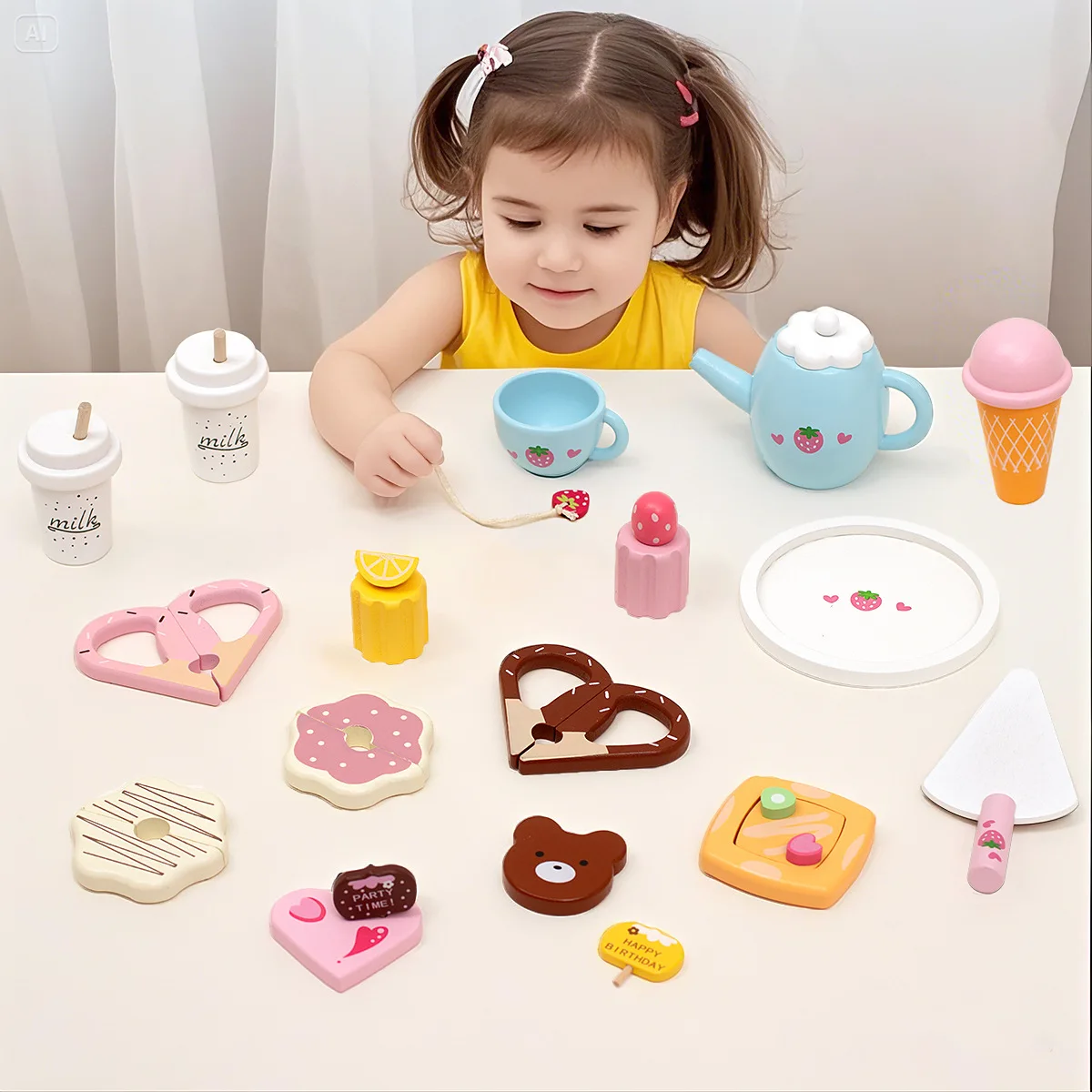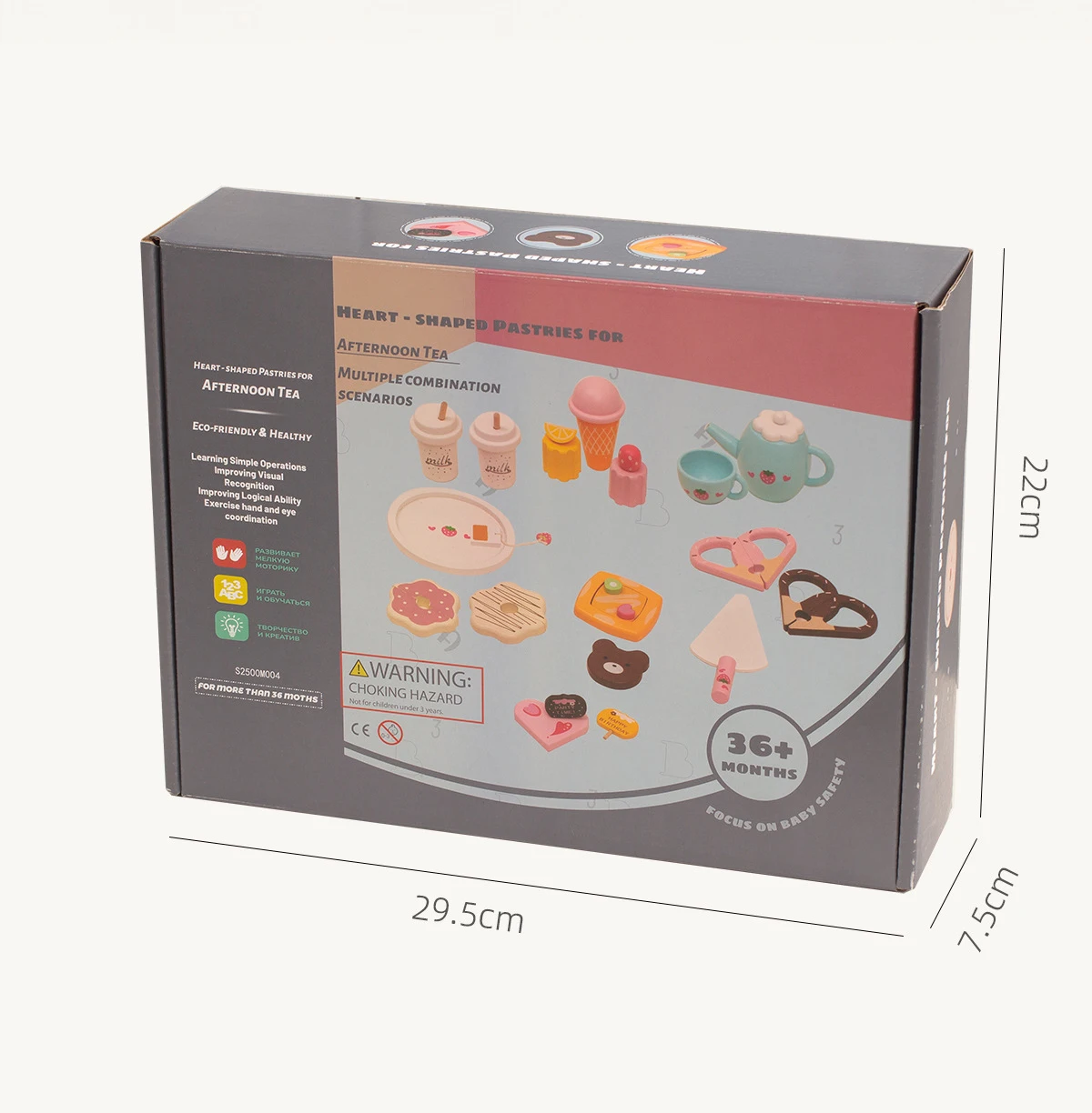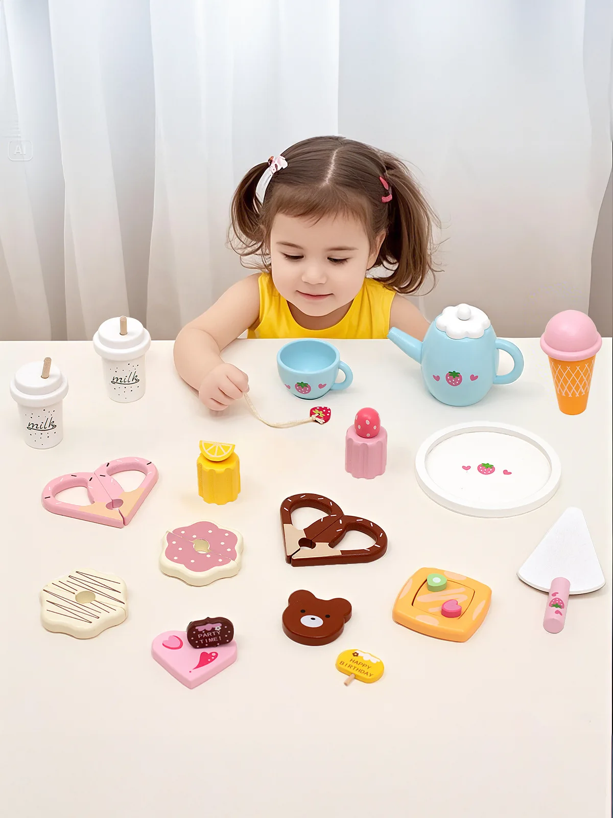 New Design Children's Simulation Wooden Afternoon Tea Dessert Cake Set Educational Pretend Toys for Boys Girls Gift