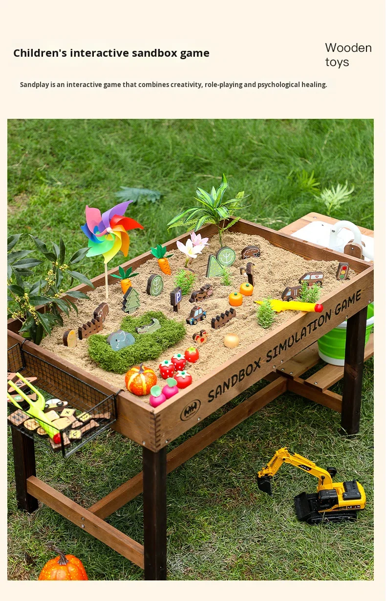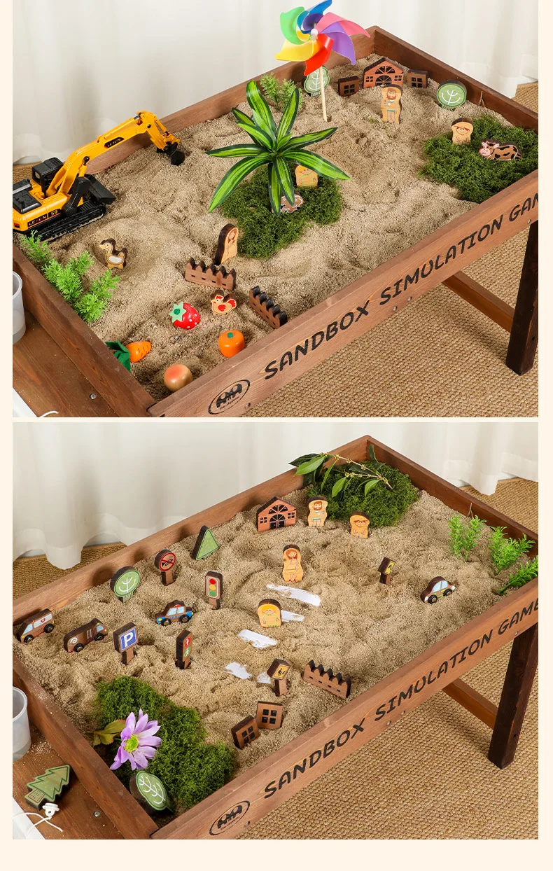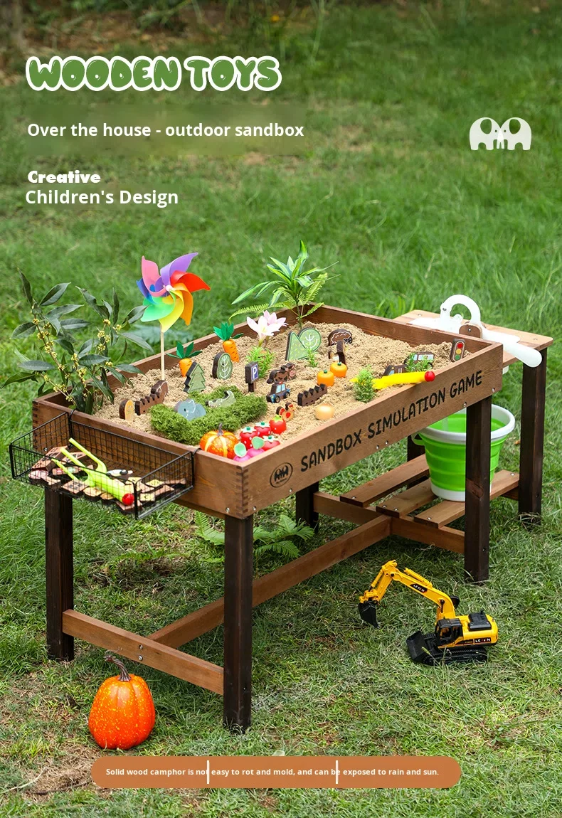 New Outdoor Sand Table Kids Sandpit Wooden Sandbox Sand Pit Play Pretend Toy Wooden Toy Parent-Child Interactive Pretend Play