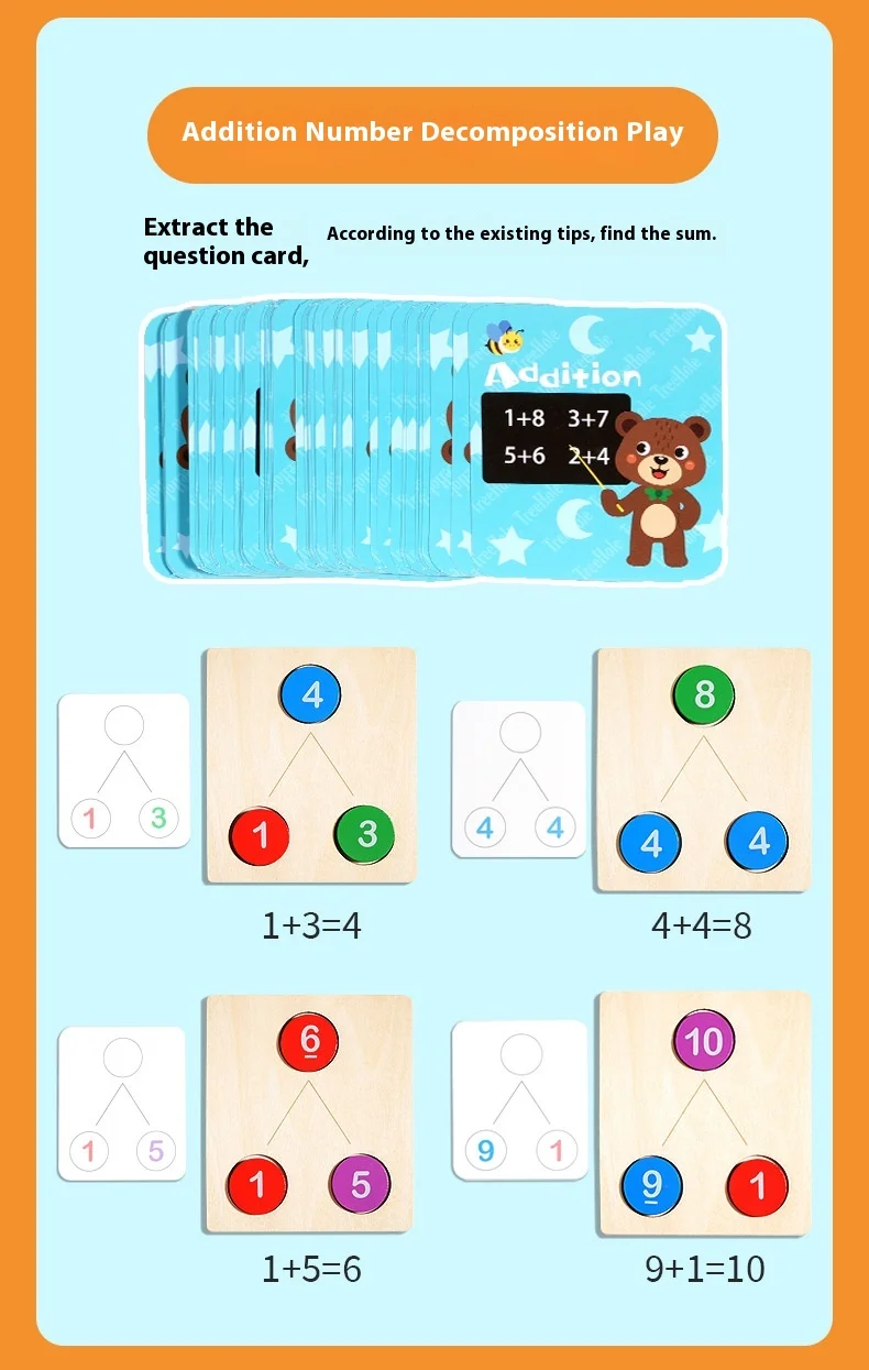 New Wooden Child Number Board Montessori Educational Math Toys for Kids Logical Thinking Training Aids Decomposition Math Skills
