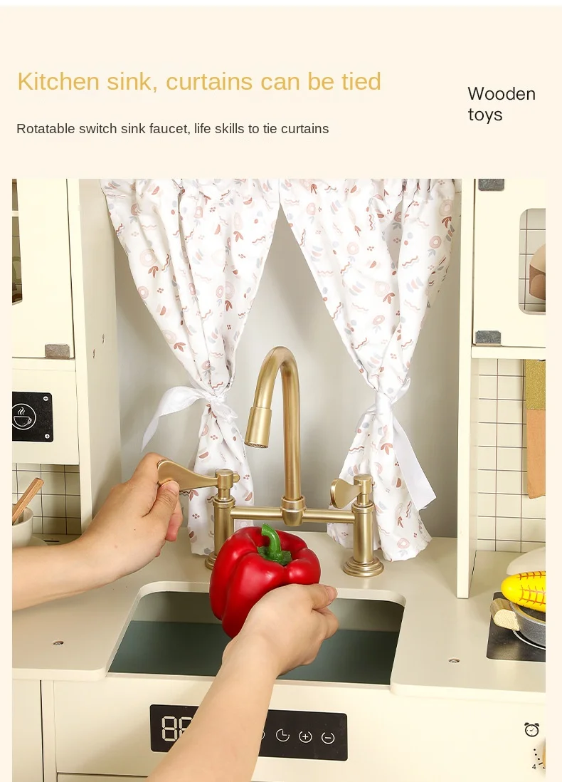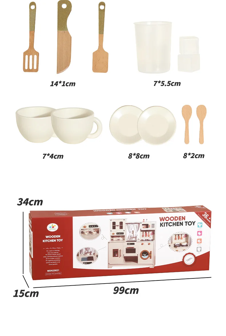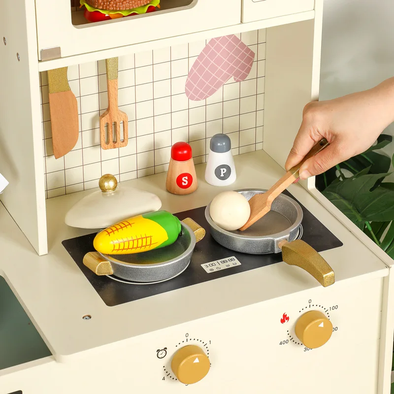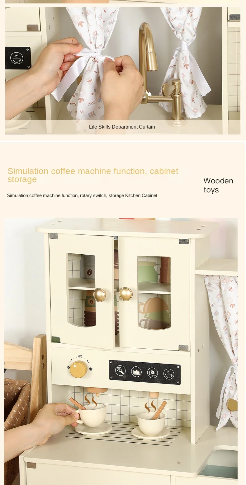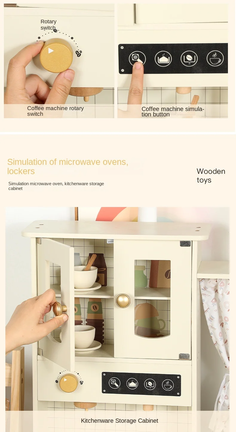 Qiaike Children's Wooden Kitchen Stove Coffee Integrated Toy Kitchen Set Pretend Cooking Toy Early Learning Educational Role Toy
