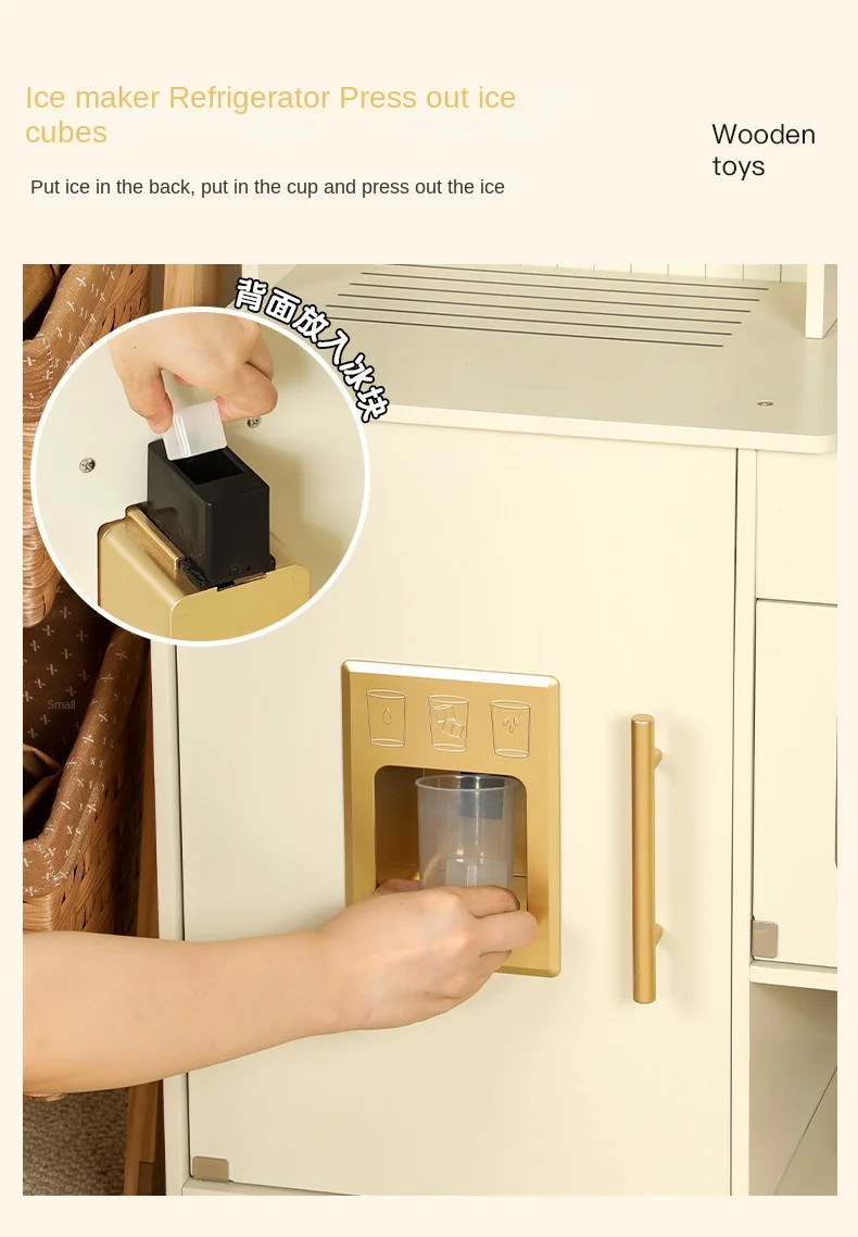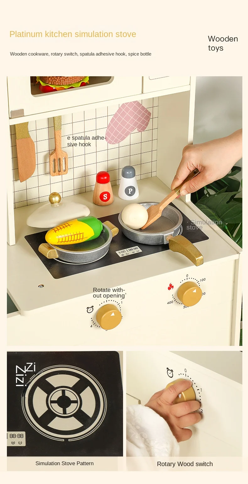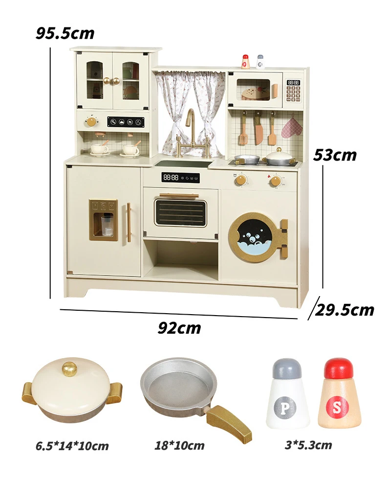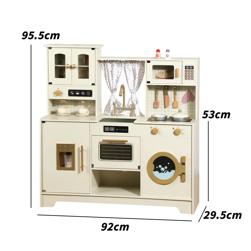 Multi-Functional Wooden Kitchen Simulator Toy for Children Platinum Oven Microwave and Washing Machine for Girls' Pretend Play