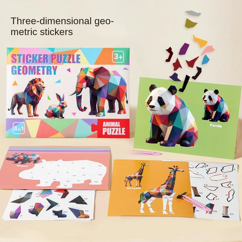 Qiaike New Arrival Educational Paper Geometric Sticker Puzzle Activity Book for Kids Ages 4-6