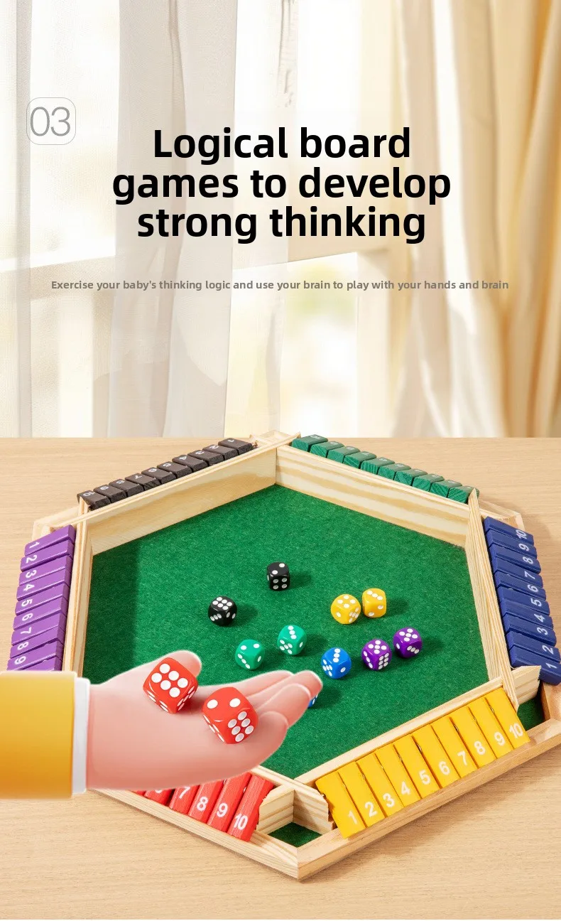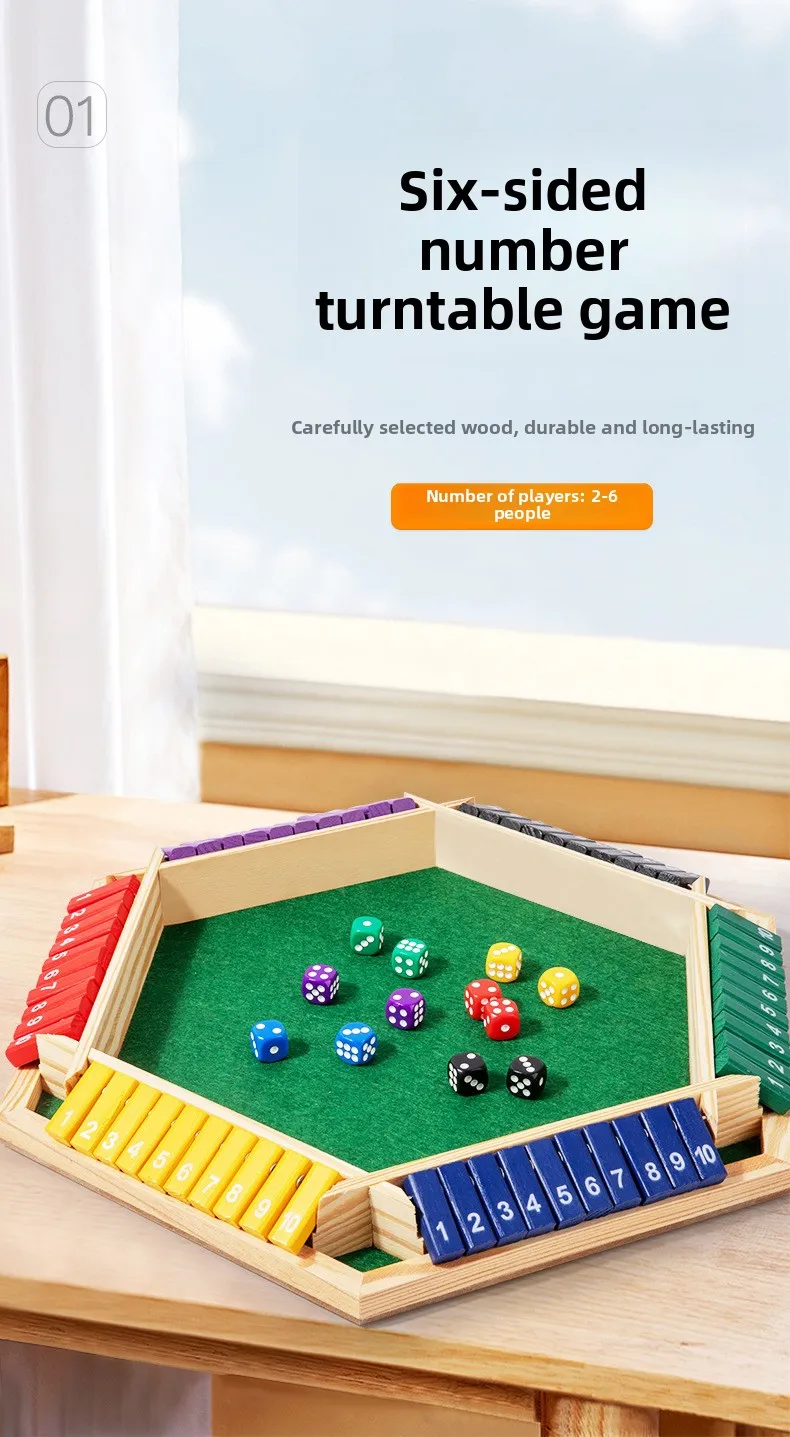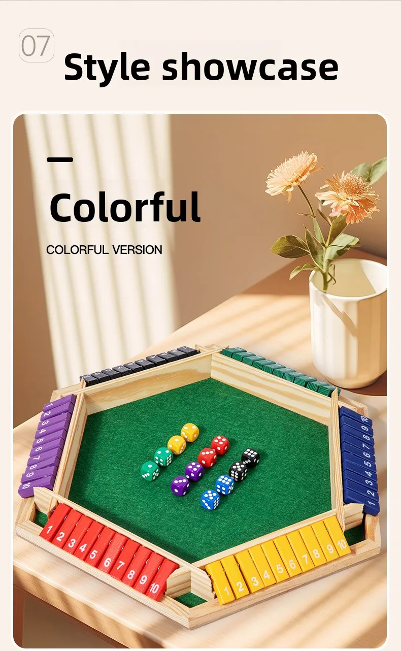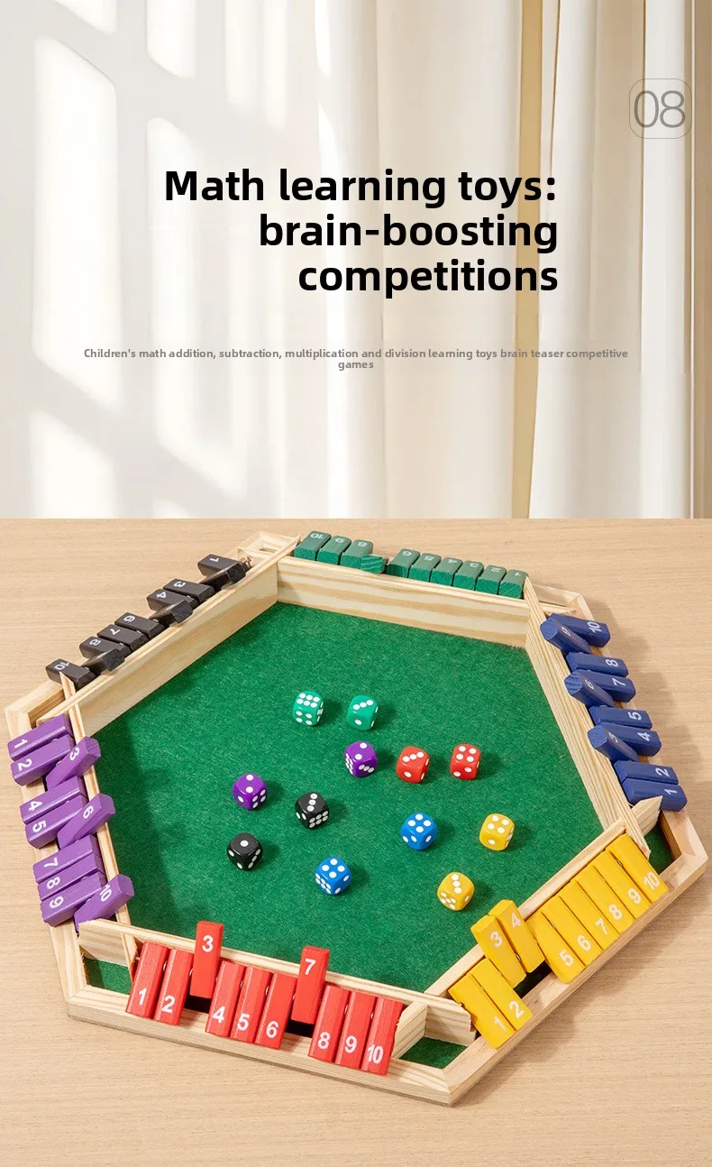 6-Player Shut The Box Game Wooden Close The Box Math Game with Dice Educational Family Board Game for Learning Addition &Strategy Multi-Color 1-10 Number Flip Blocks