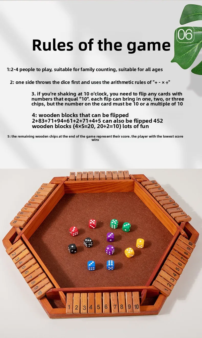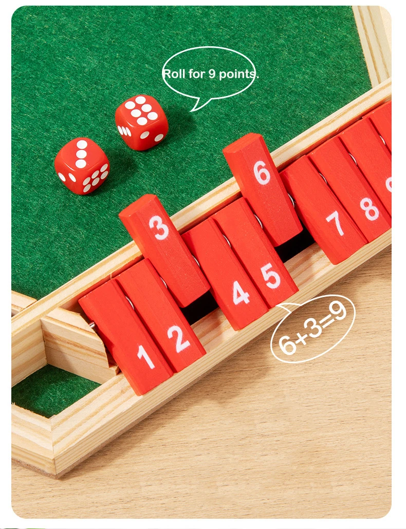 Qiaike Shut the Box Dice Game 2-6 Player Family Wooden Board Table Math Games for Adults and Kids Party Club Game