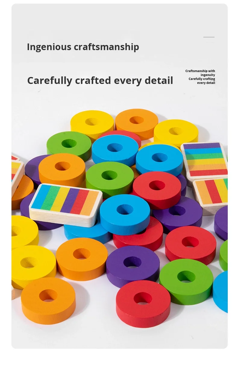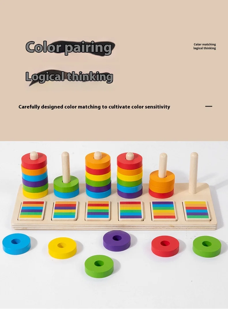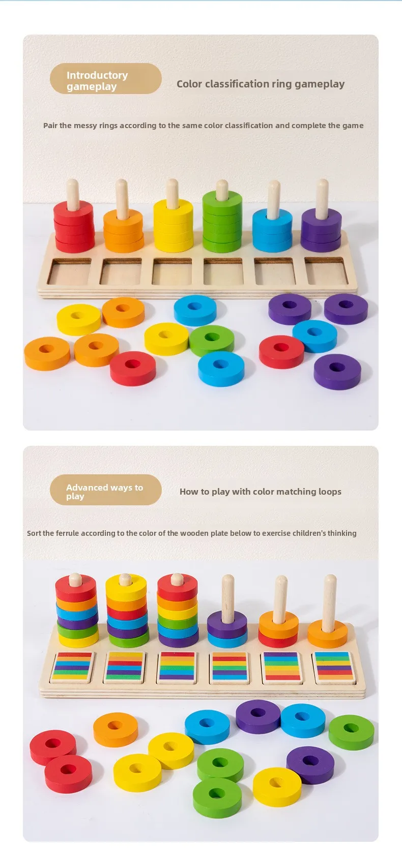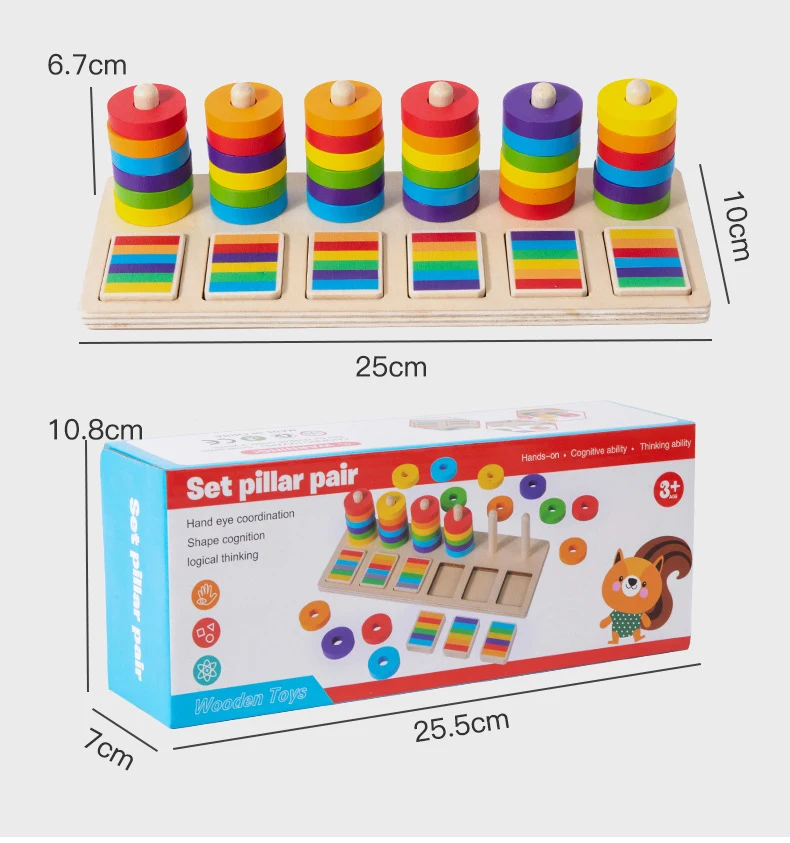 Rainbow Montessori Educational Early Childhood Stacking Blocks Toys Kindergarten Color Matching Rings Set Boards Wood CPC/EN71