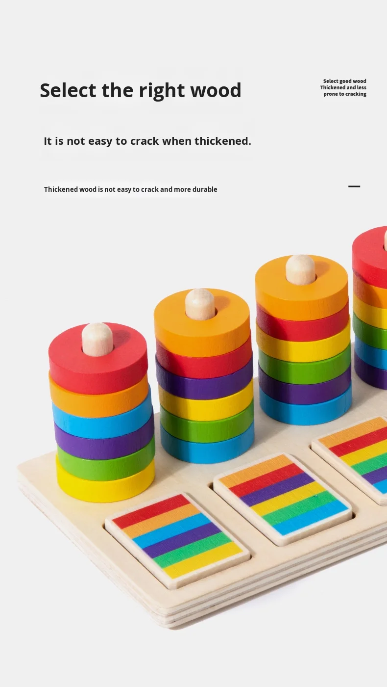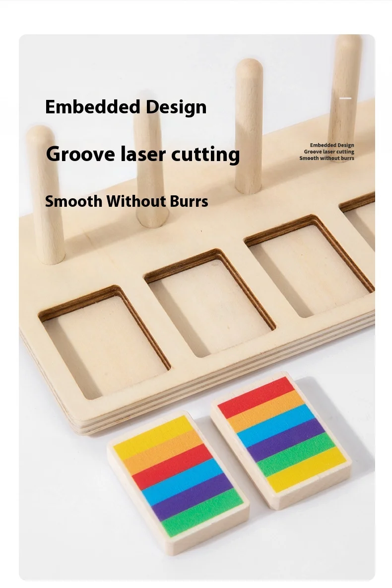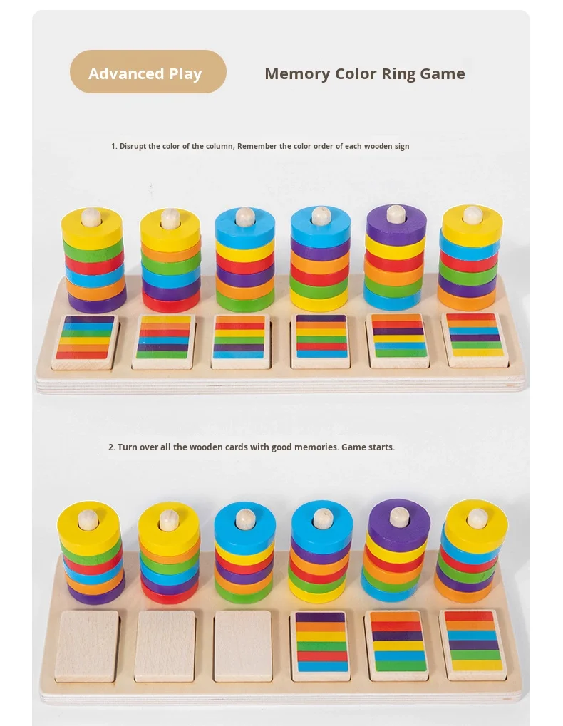 Rainbow Montessori Educational Early Childhood Stacking Blocks Toys Kindergarten Color Matching Rings Set Boards Wood CPC/EN71