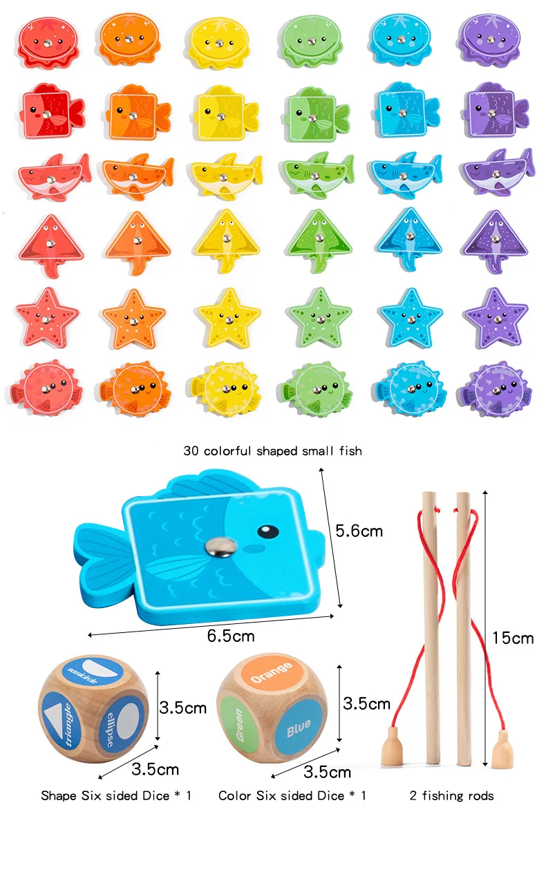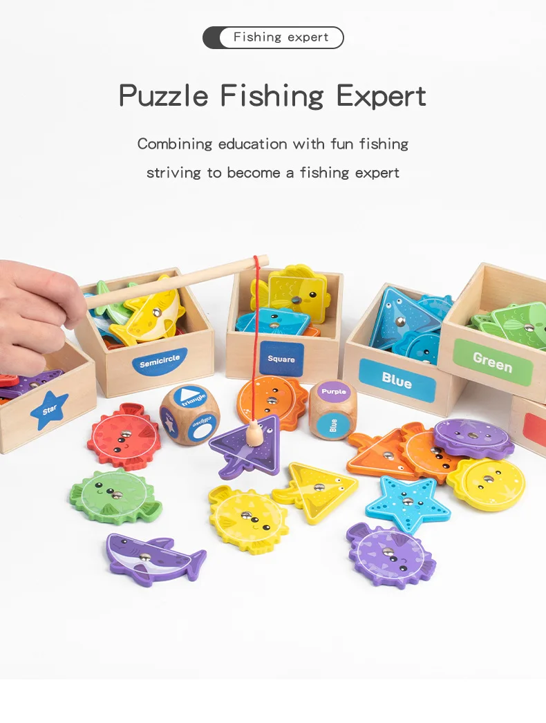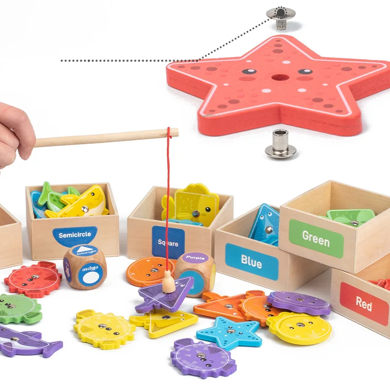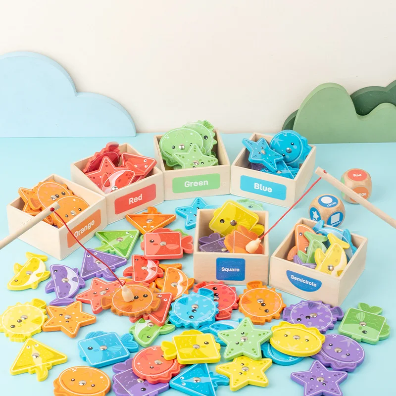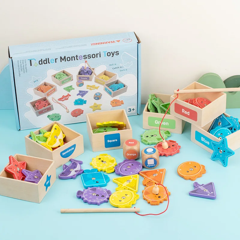 Toddler Toy Wooden Fishing Game for Kids Montessori Shape and Color Sorting Fine Motor Skill Activity Learning Educational Toys