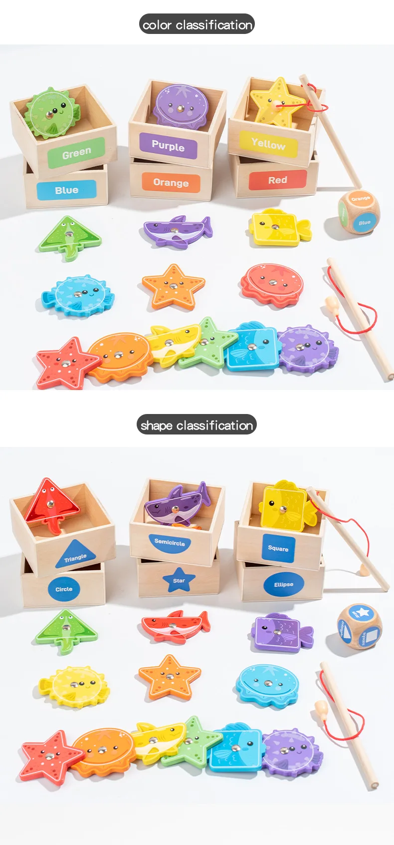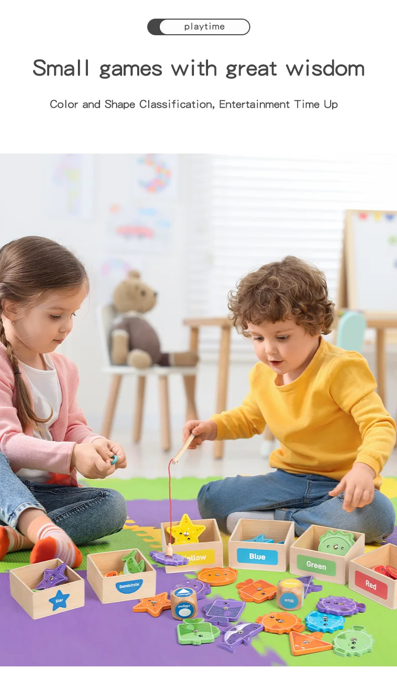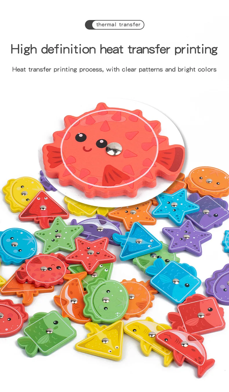 Toddler Toy Wooden Fishing Game for Kids Montessori Shape and Color Sorting Fine Motor Skill Activity Learning Educational Toys