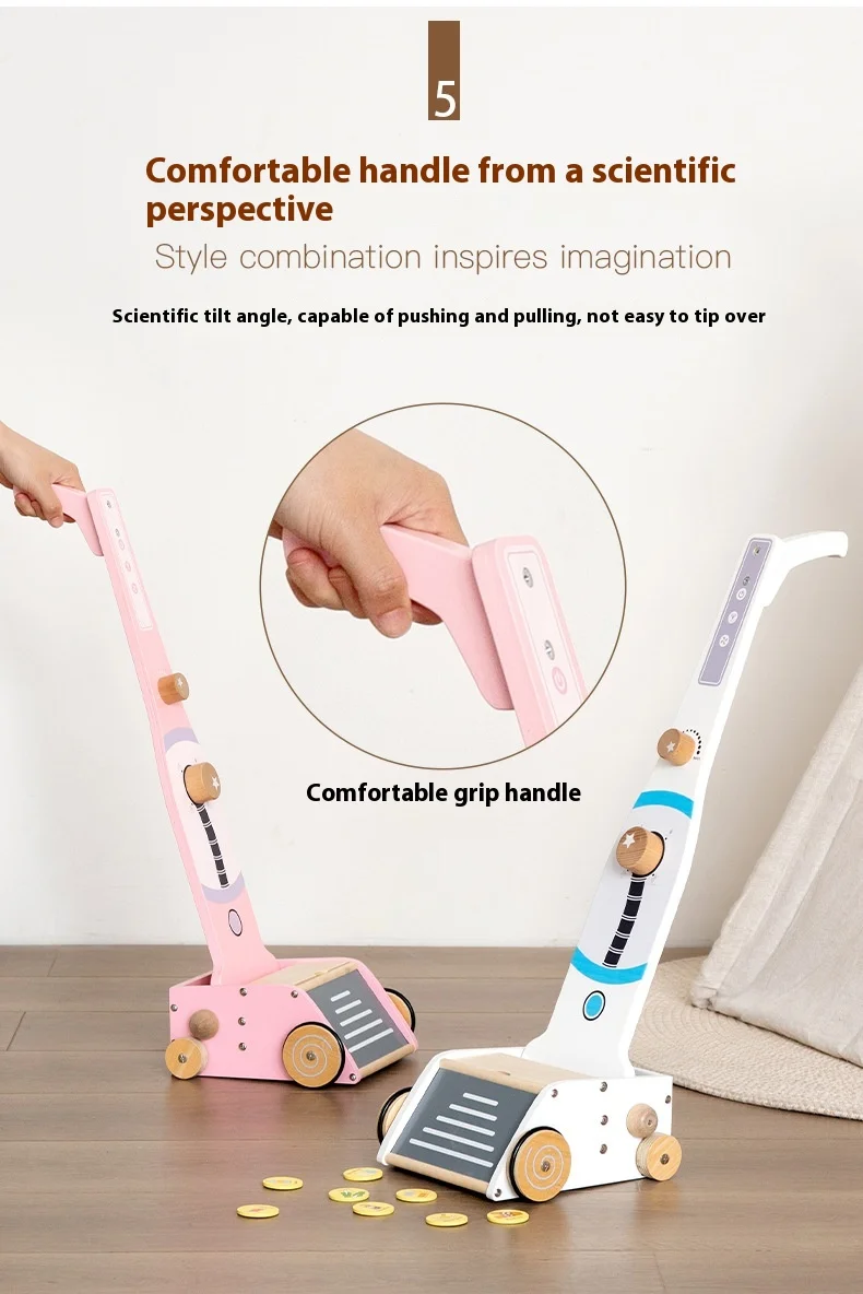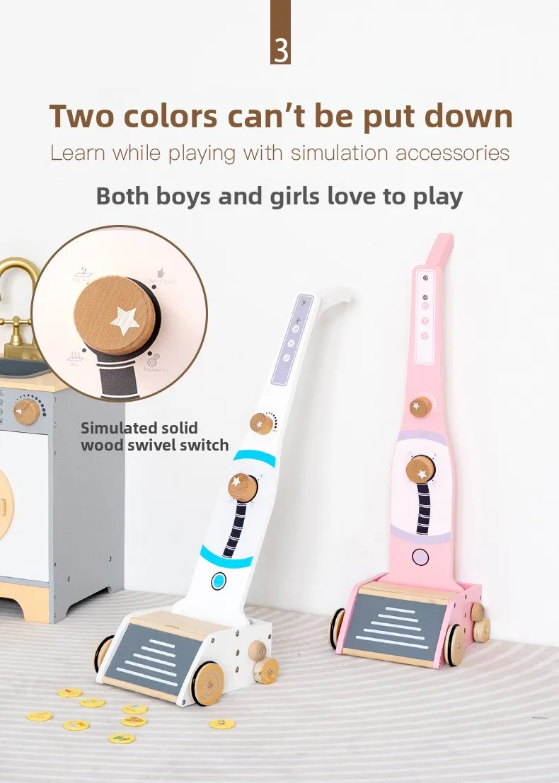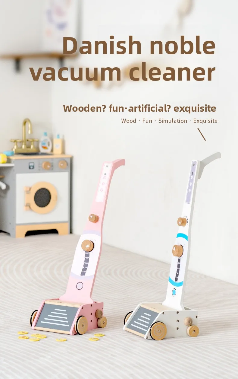 Vintage Nordic Wooden Early Education Housework Toy Children's Role Play Housekeeping Cleaner Toys Vacuum Cleaner for Boys Girls