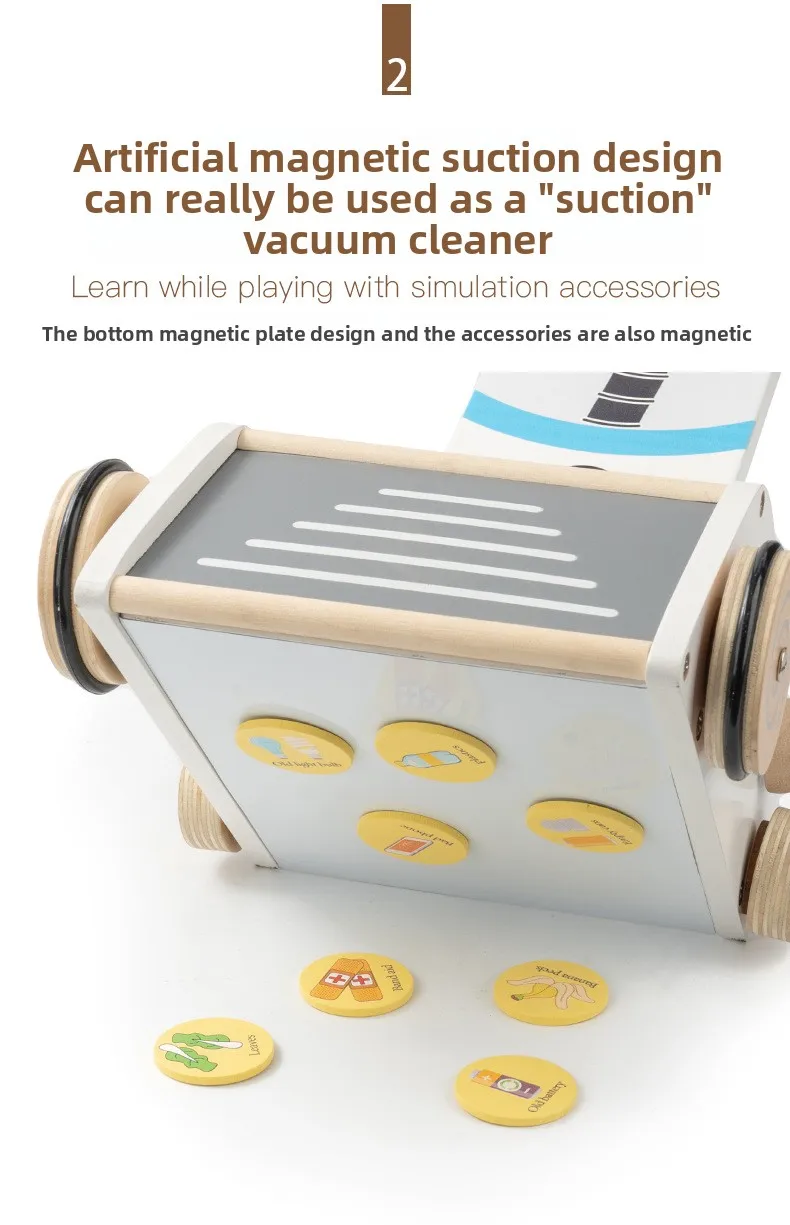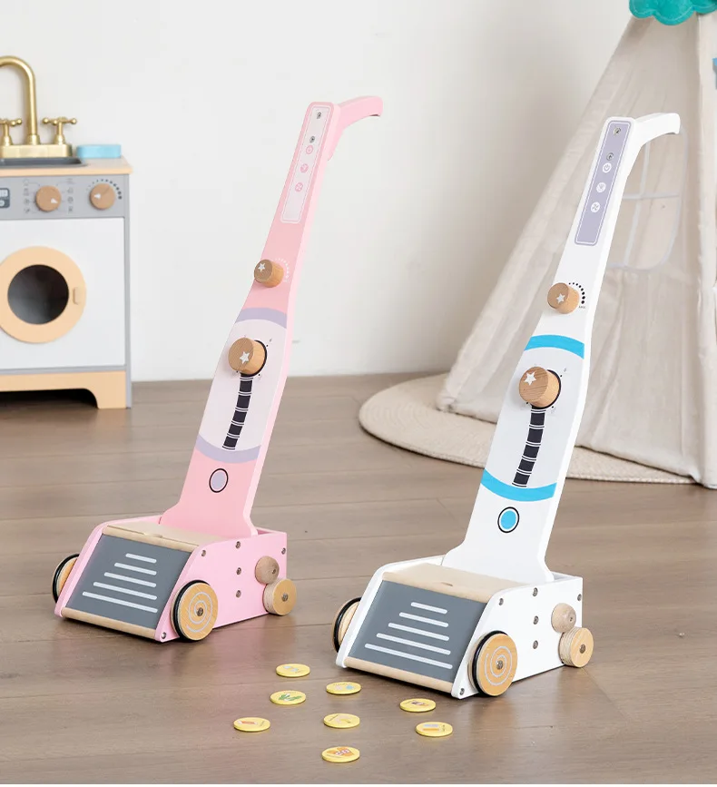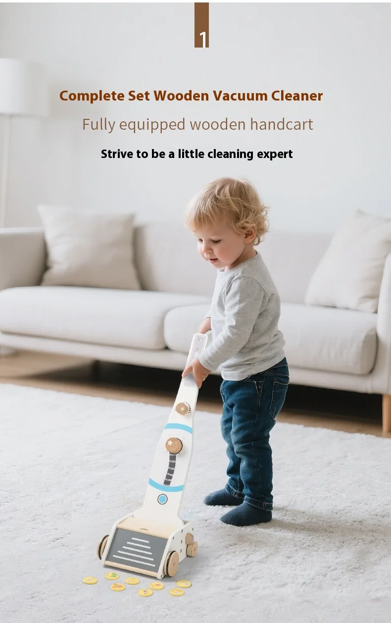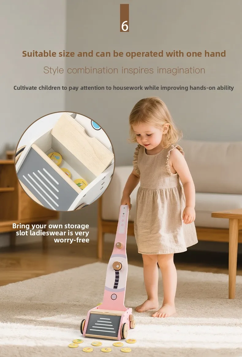Vintage Nordic Wooden Early Education Housework Toy Children's Role Play Housekeeping Cleaner Toys Vacuum Cleaner for Boys Girls