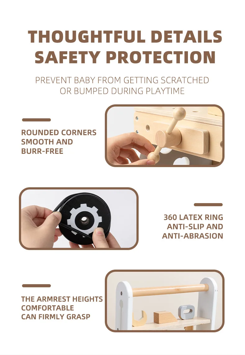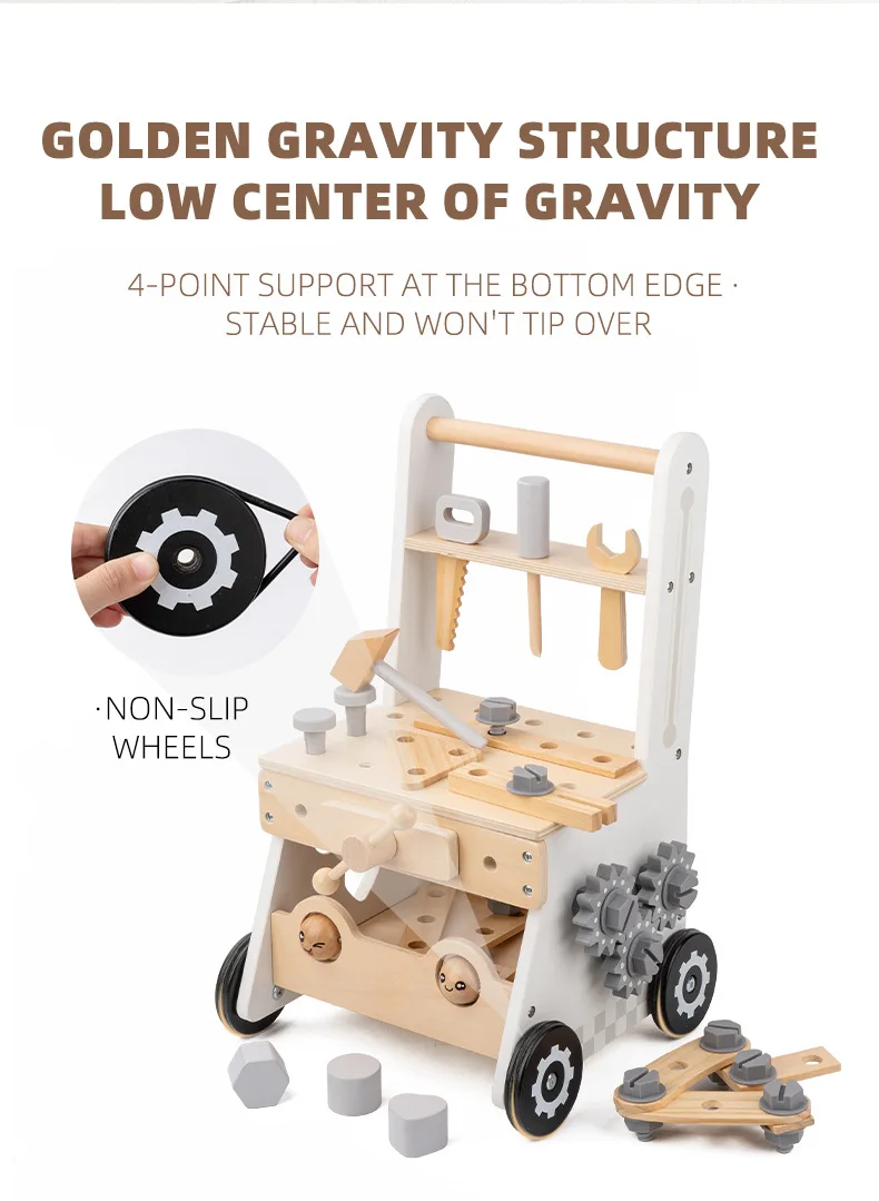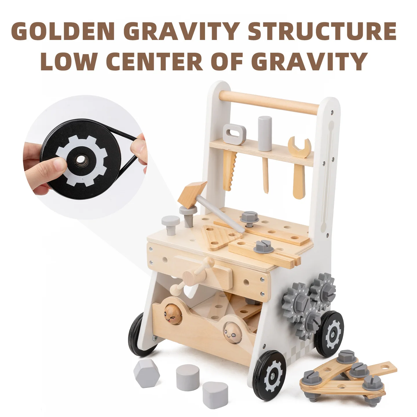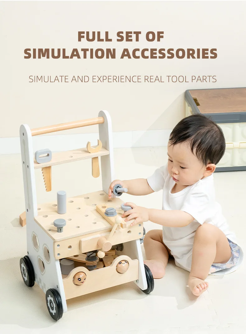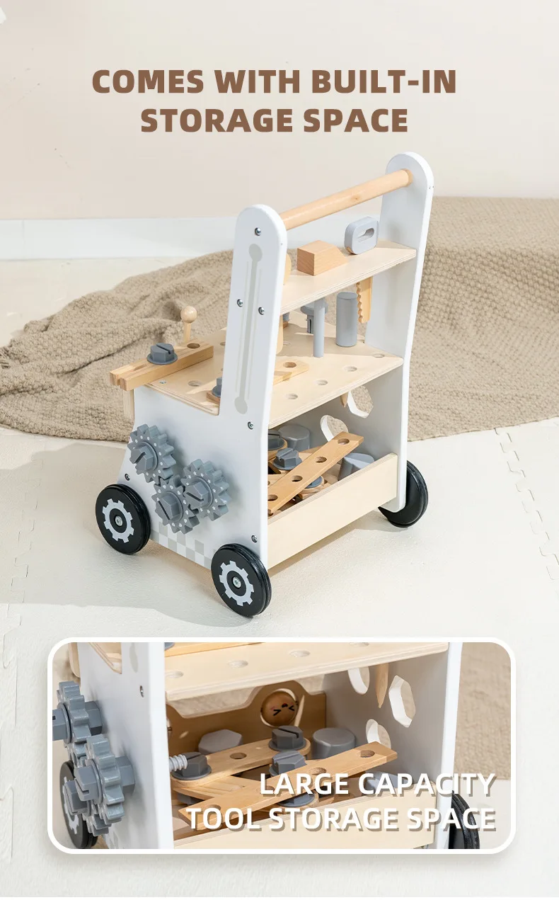 Wholesale Multifunctional Montessori Tool Bench Wooden Baby Push Walking Toy with Educational Activities for Toddlers
