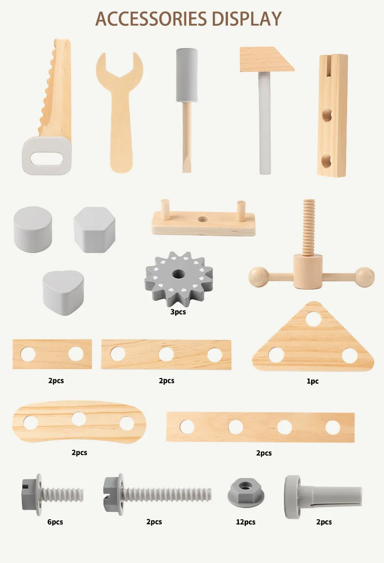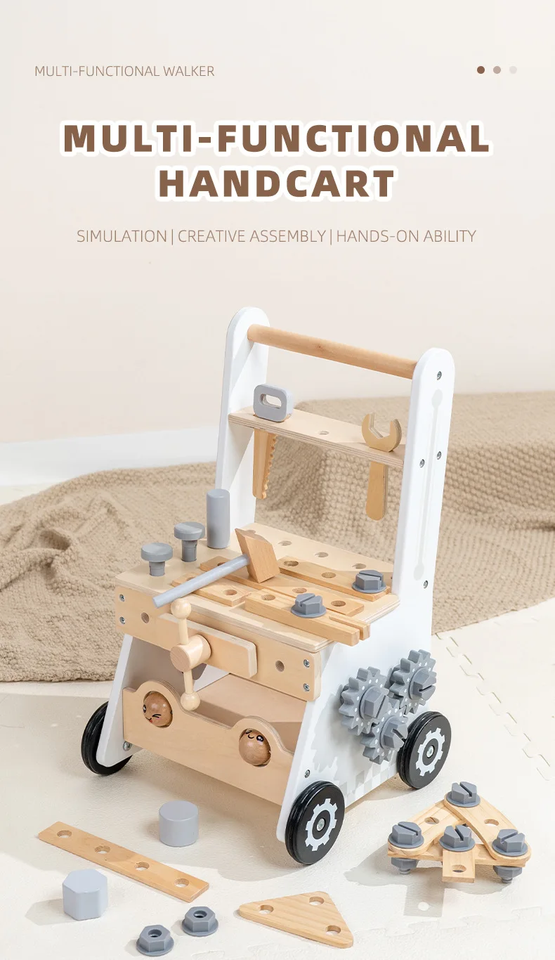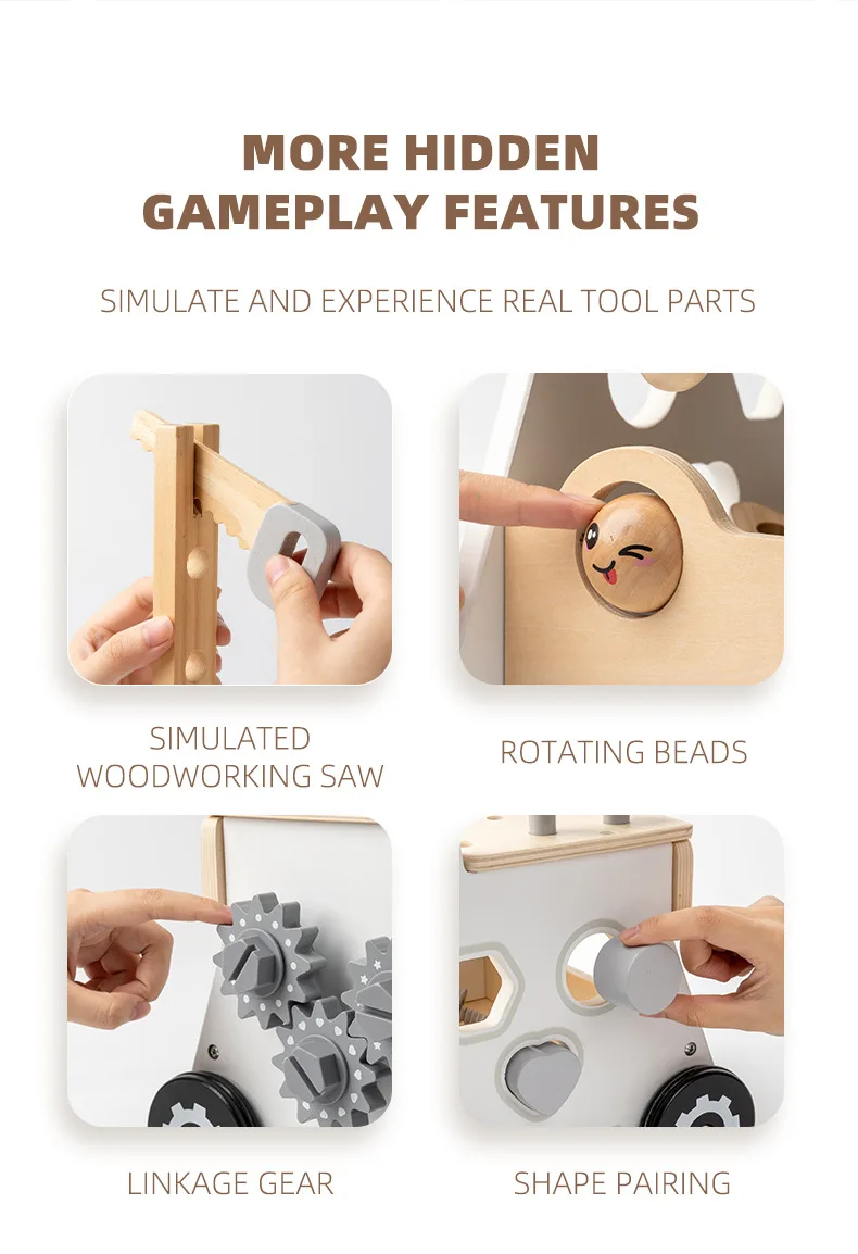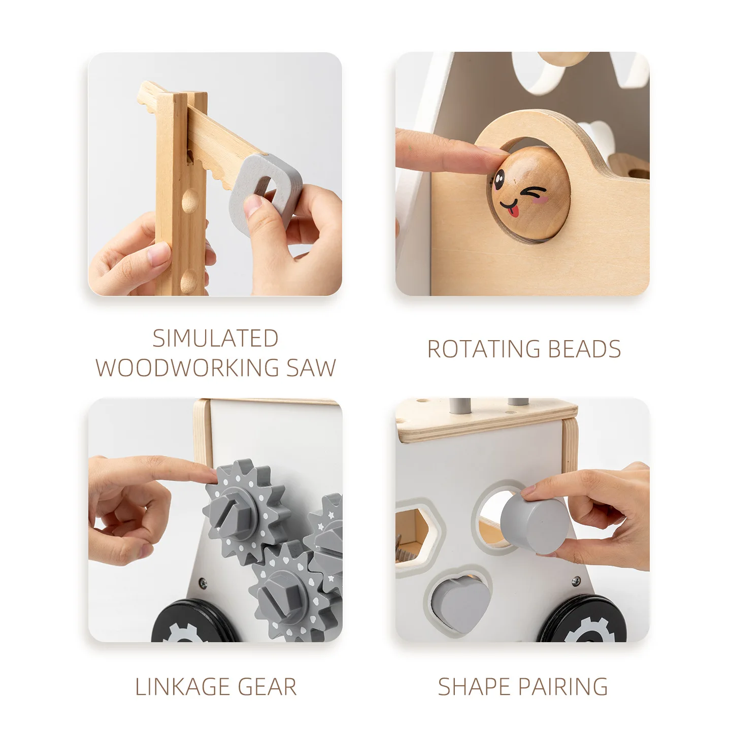 Wholesale Multifunctional Montessori Tool Bench Wooden Baby Push Walking Toy with Educational Activities for Toddlers