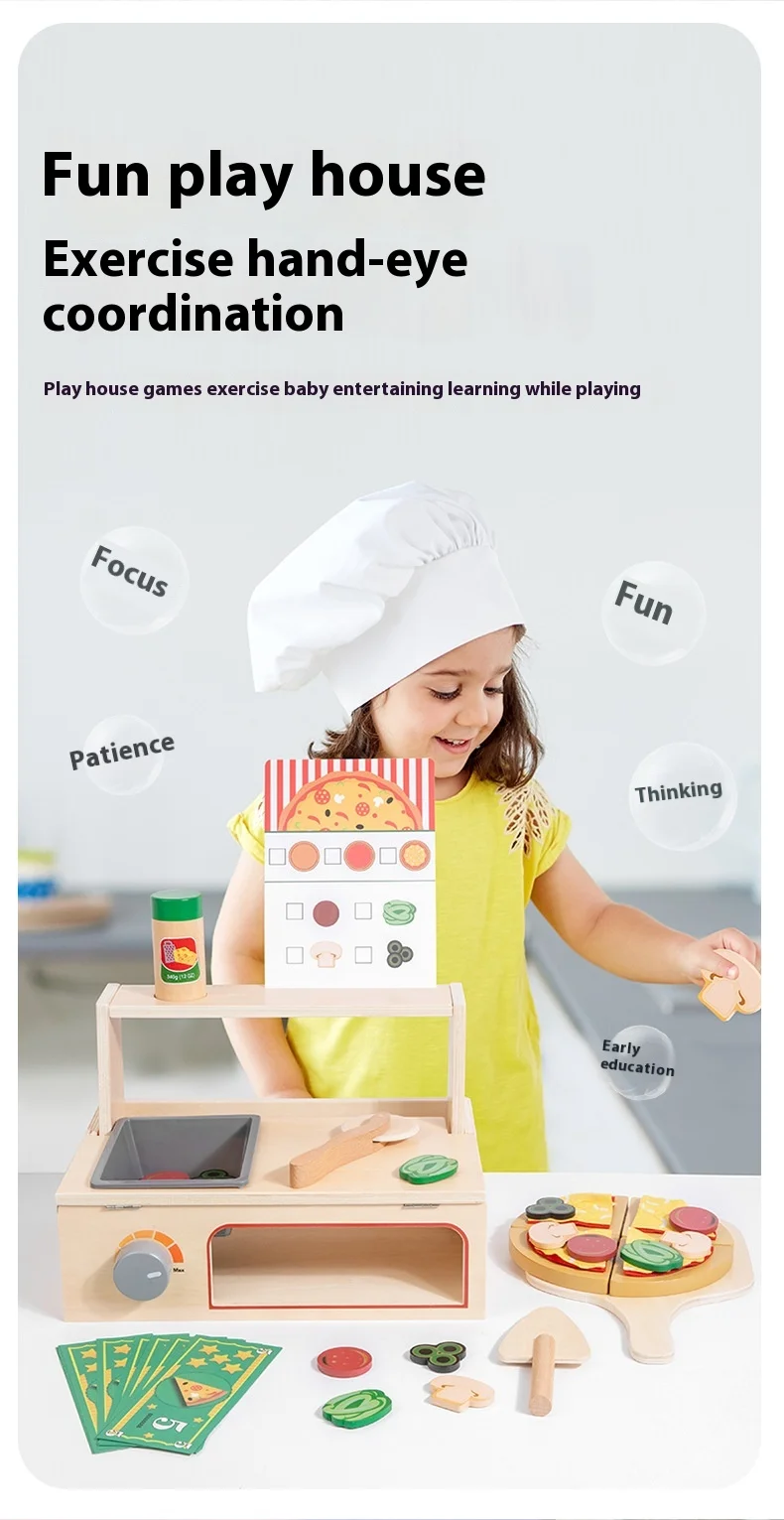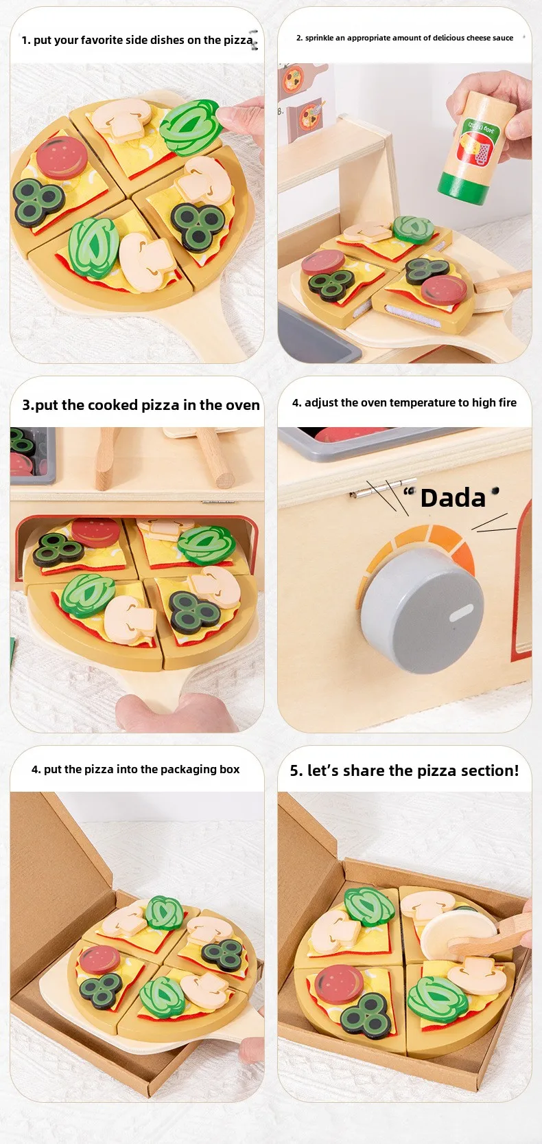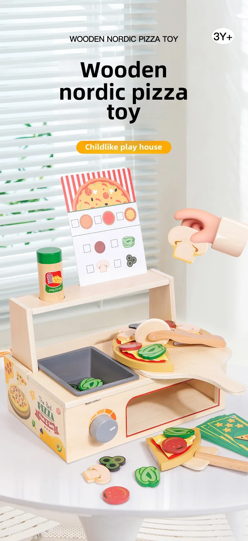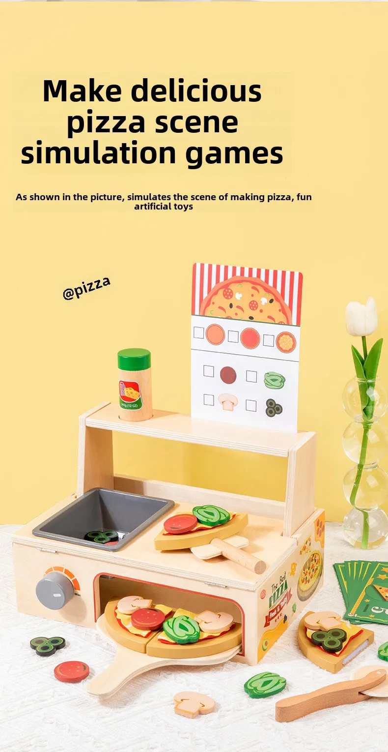 Wooden Pretend Play Kitchen Pizza Oven Toy Education DIY Cooking Simulation Store Toy Simulation Pizza Oven Toy