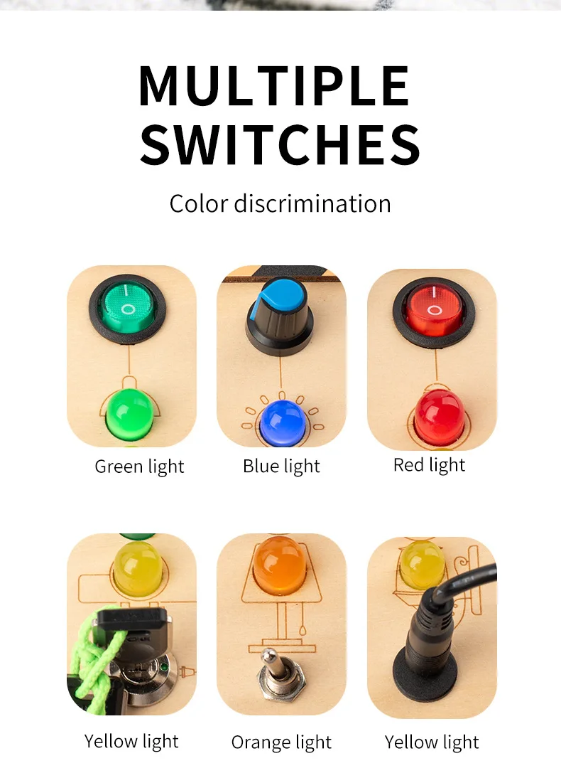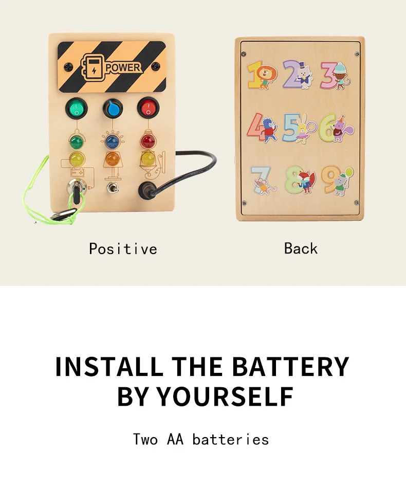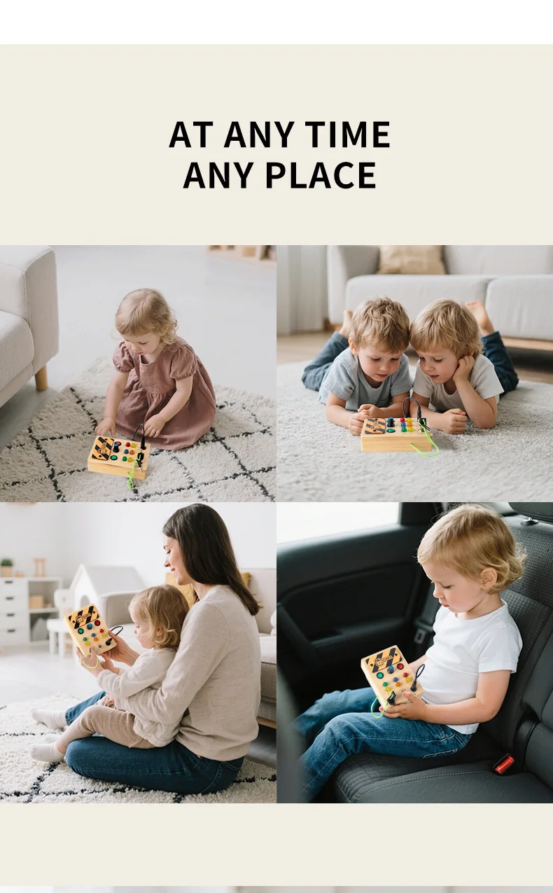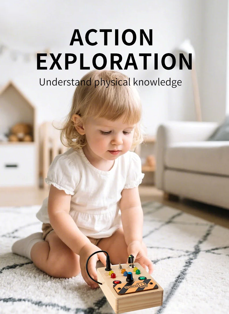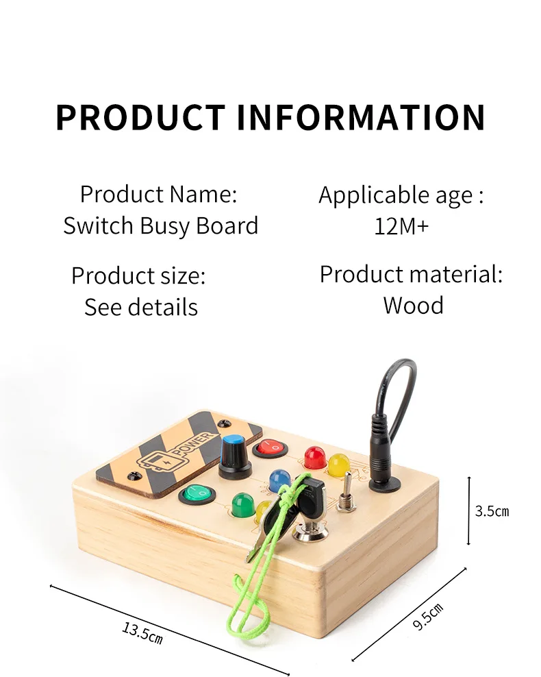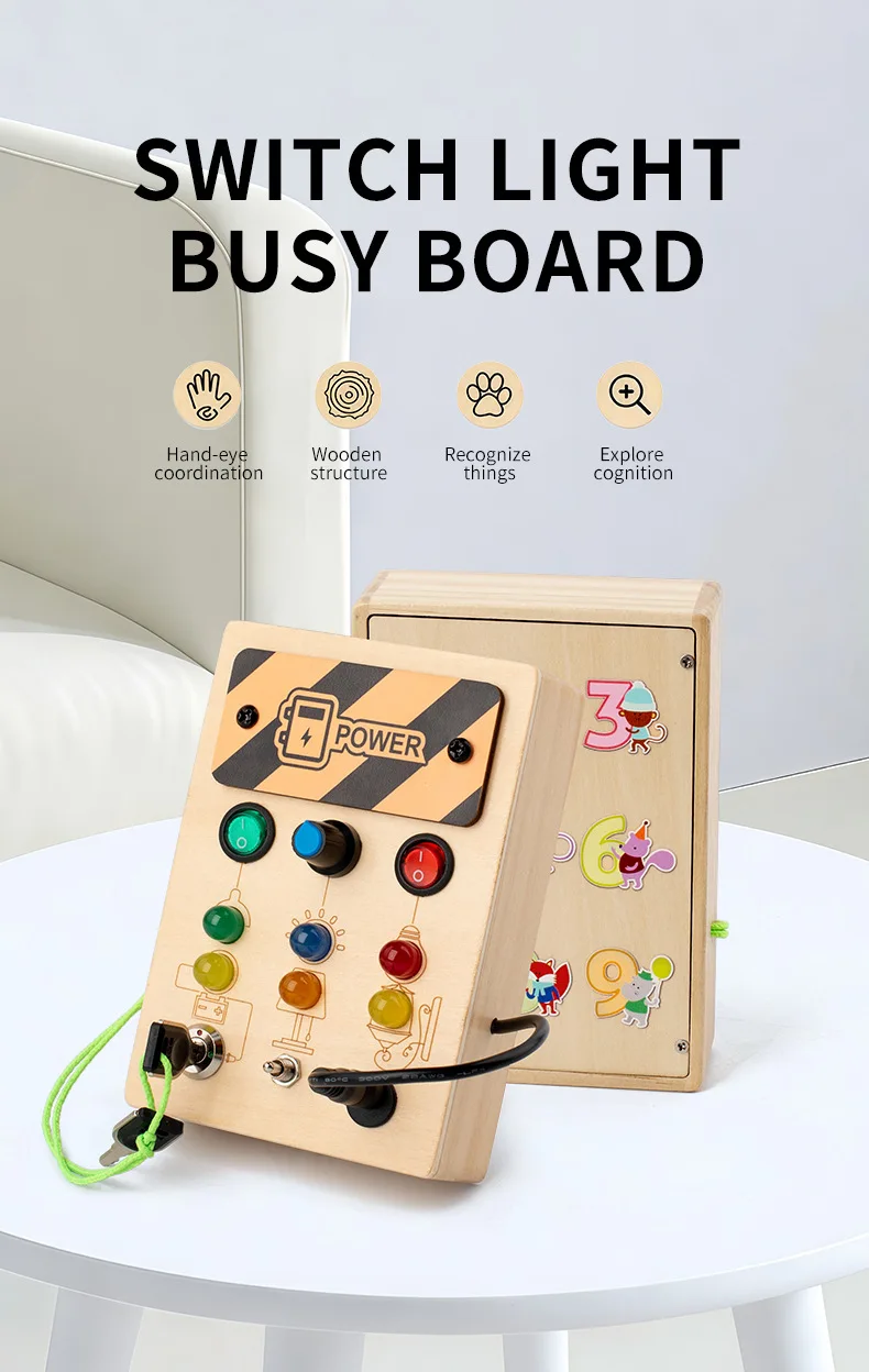 Обучающая доска Монтессори для малышей, сенсорные игрушки, деревянная активная доска с переключателем со светодиодной подсветкой, антистресс доска для детей 2–4 лет