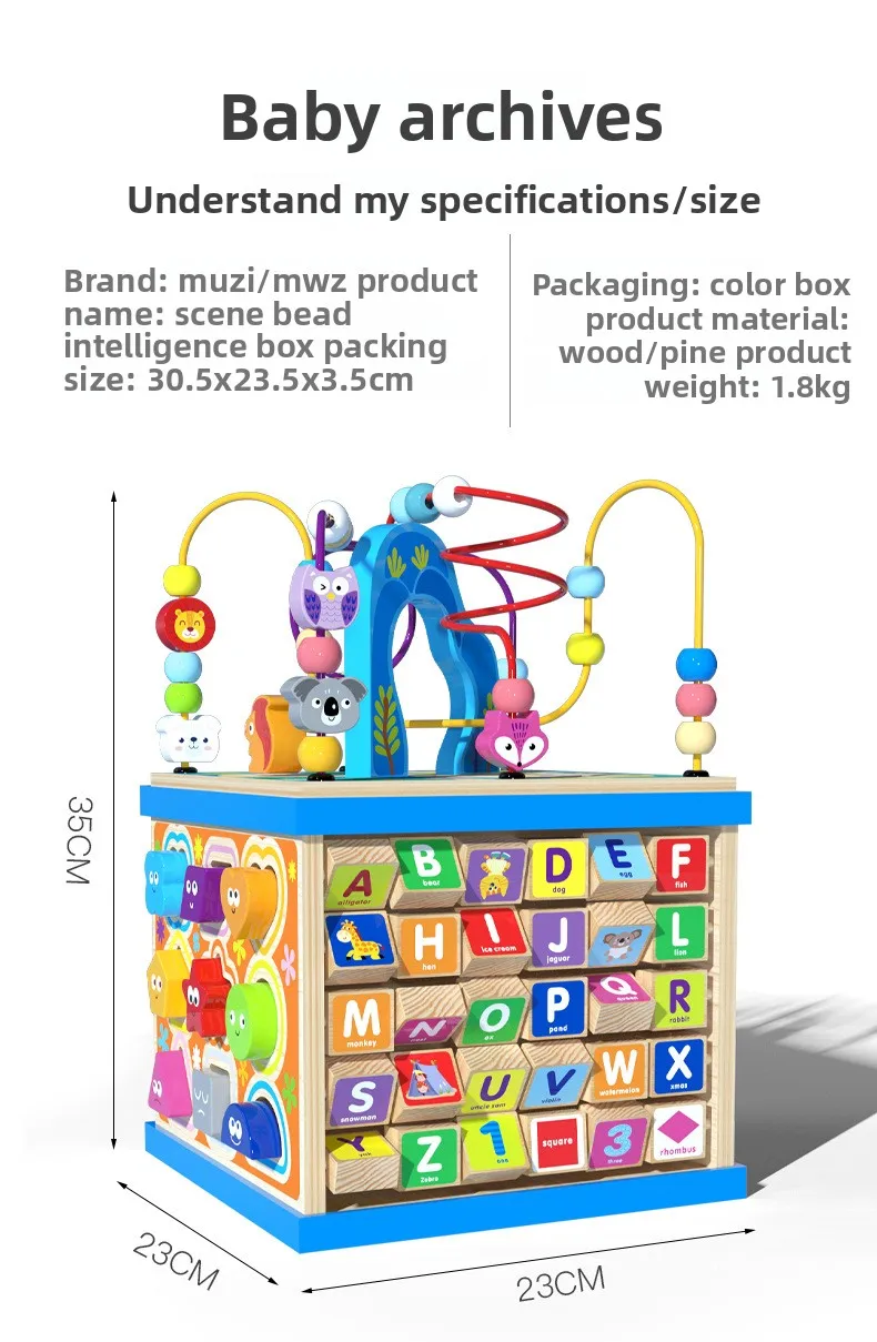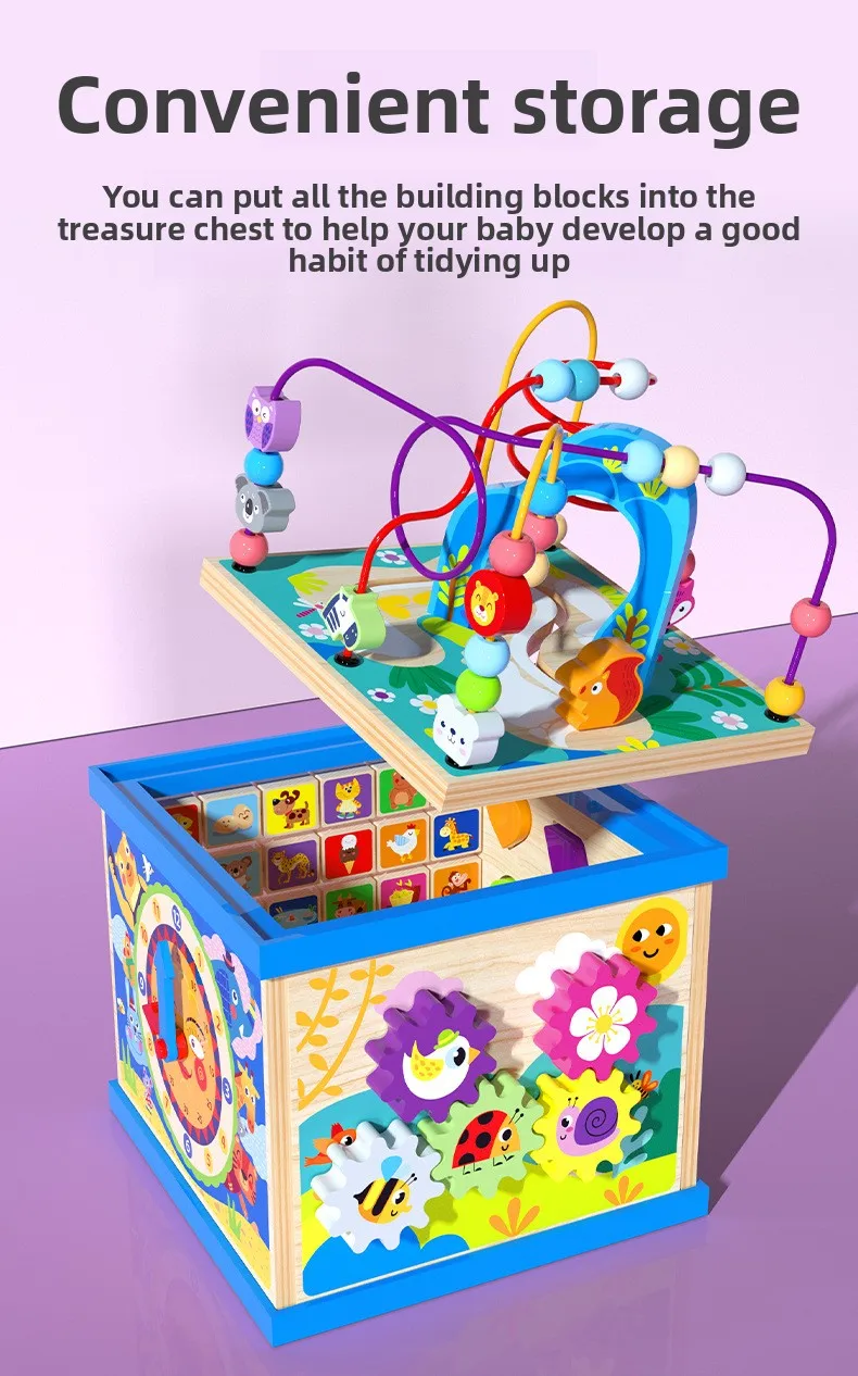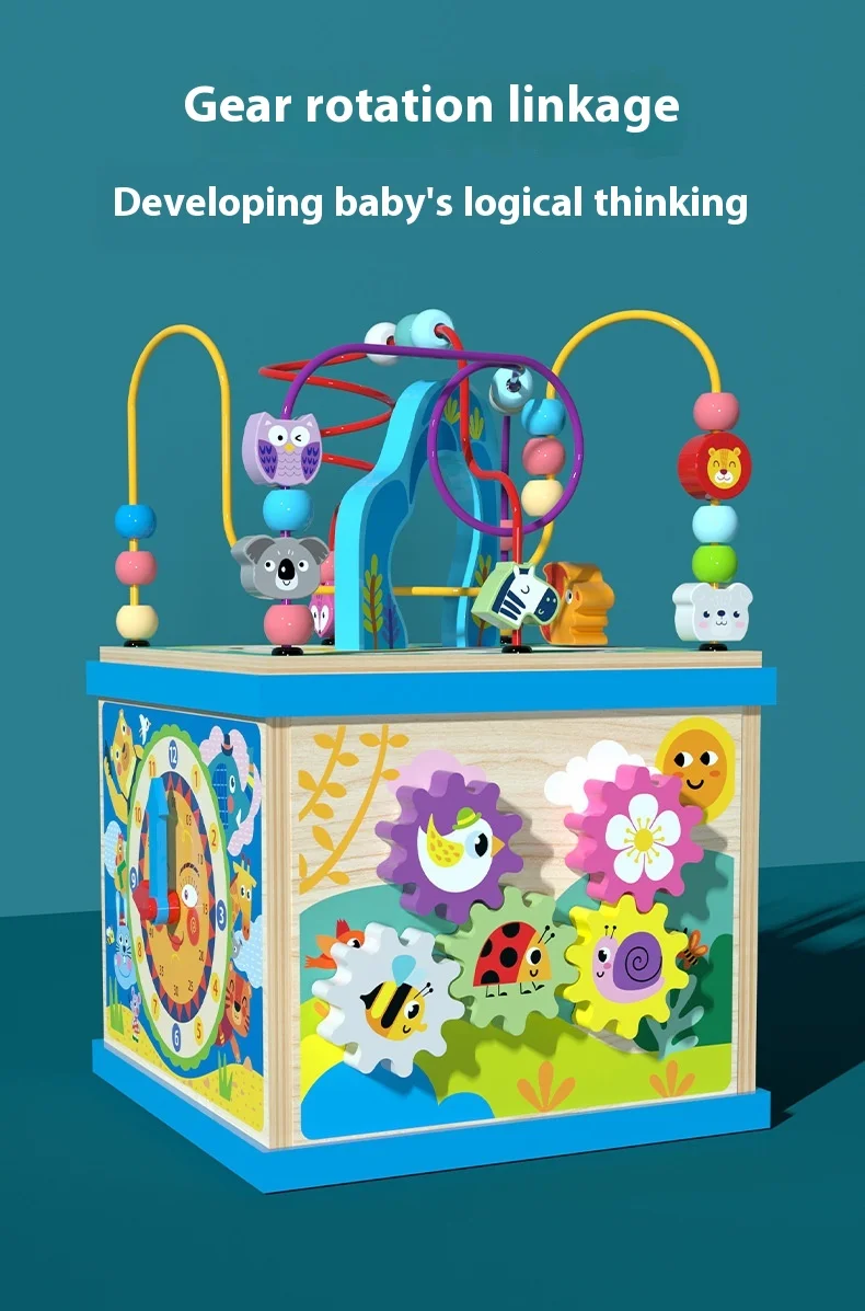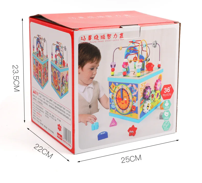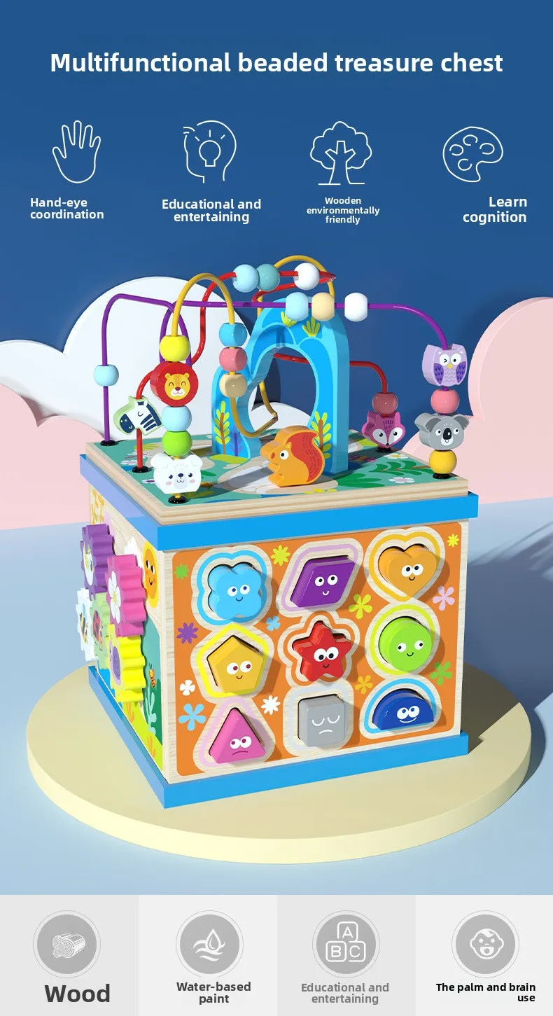 Большой многофункциональный деревянный лабиринт-счеты Монтессори, шкатулка-сокровищница, кубик с развивающими заданиями для раннего обучения и развития интеллекта, детские обучающие игрушки