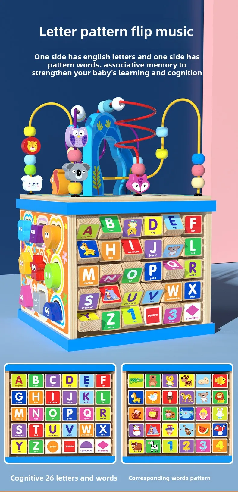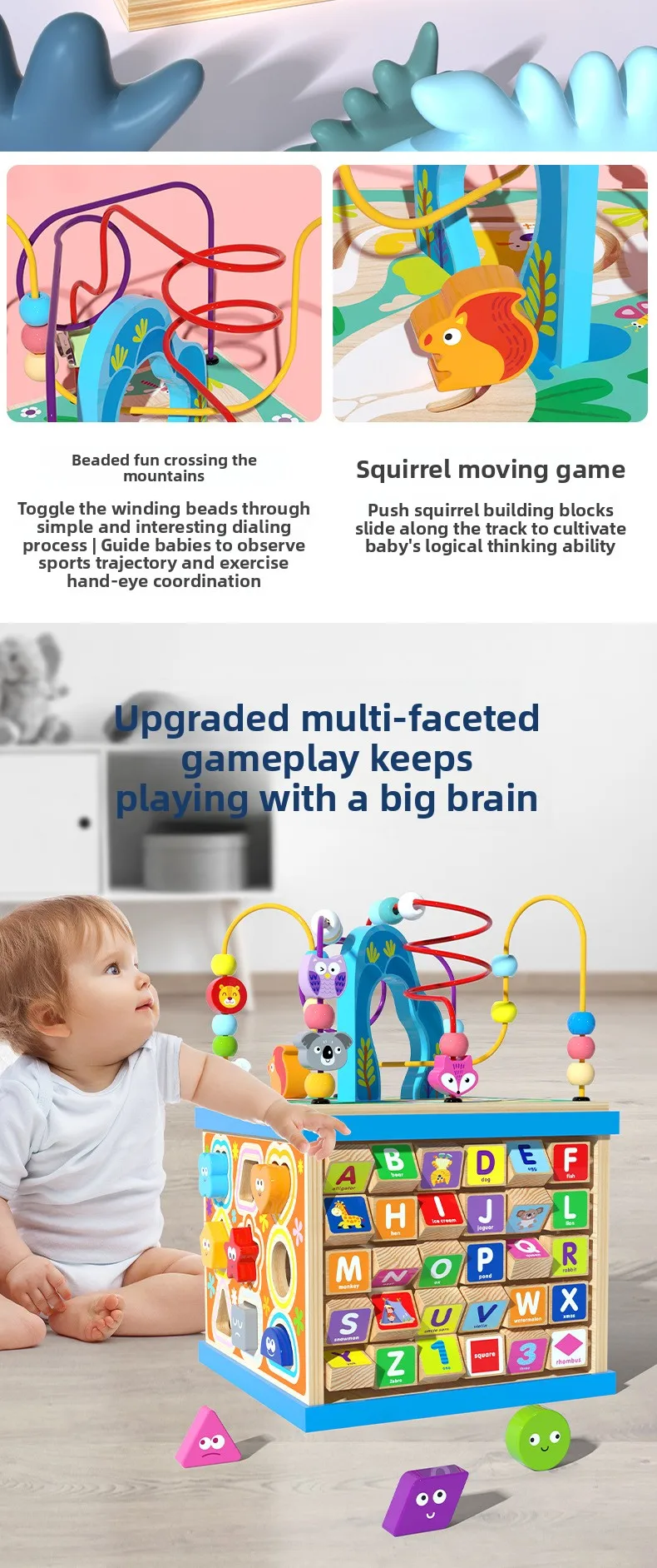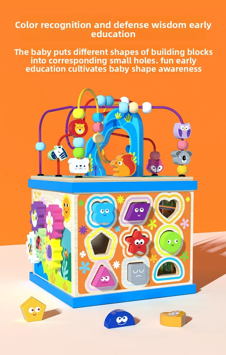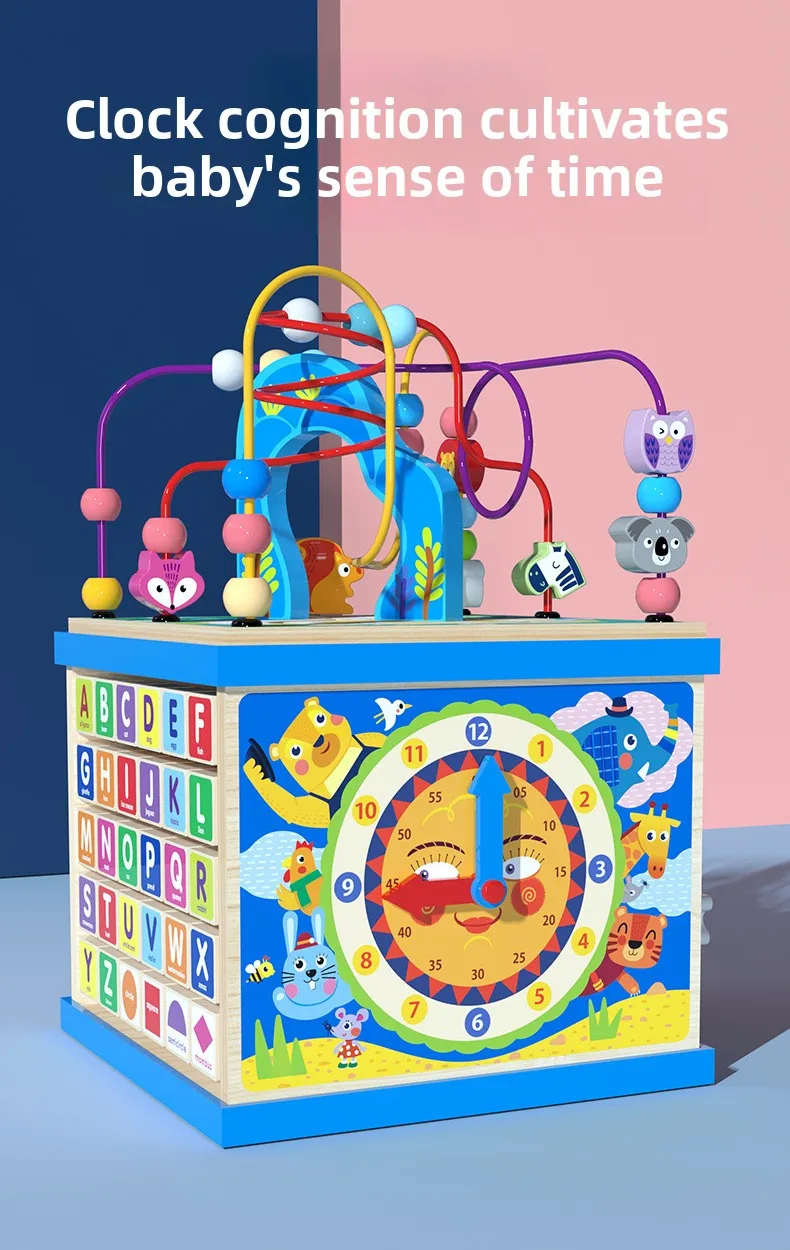 Большой многофункциональный деревянный лабиринт-счеты Монтессори, шкатулка-сокровищница, кубик с развивающими заданиями для раннего обучения и развития интеллекта, детские обучающие игрушки