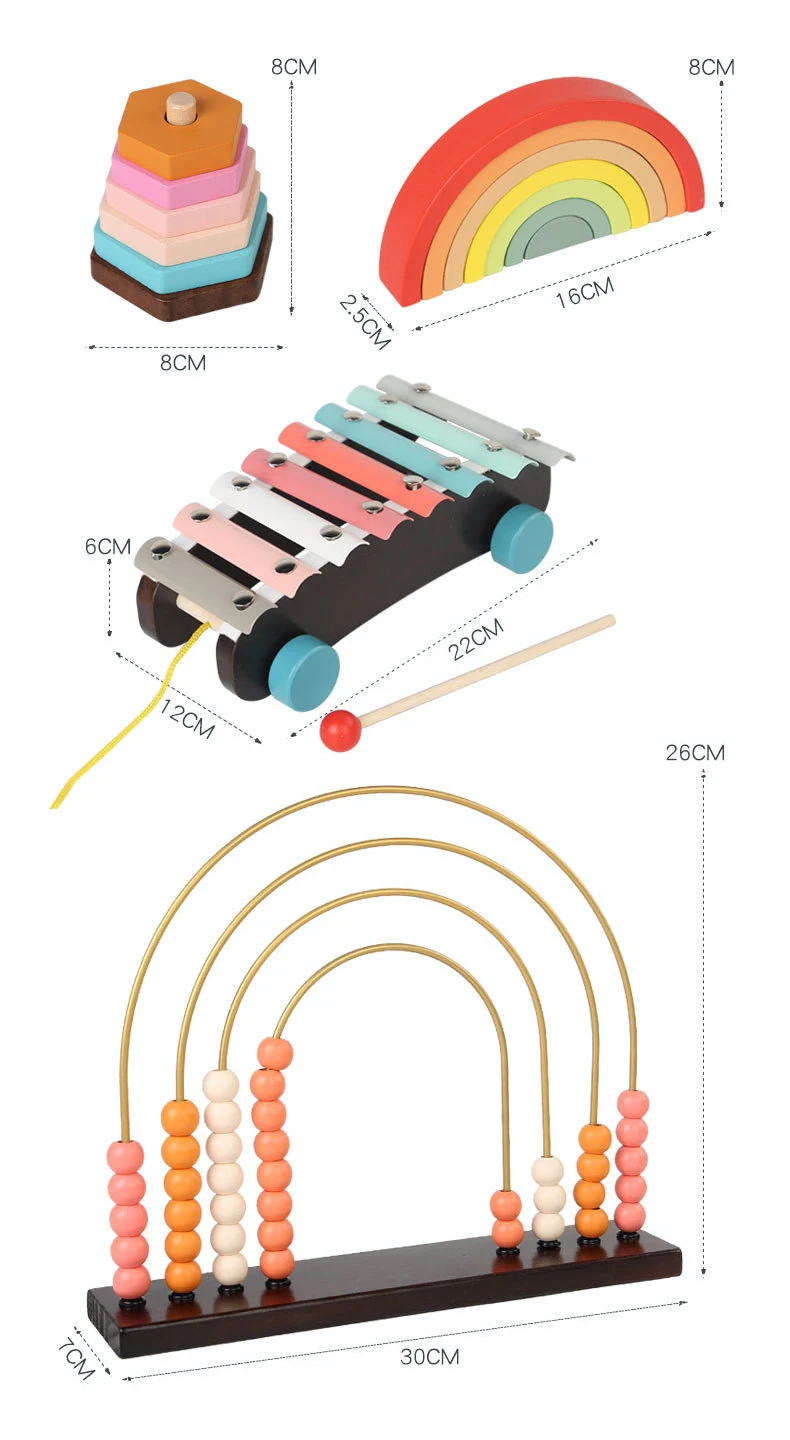 Многопрофильные деревянные сенсорные развивающие игрушки по методу Монтессори, строительные блоки для детского сада, штабелируемый ксилофон, счётная рамка для обучения