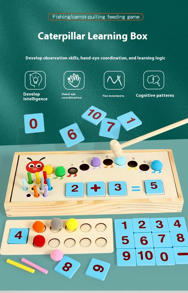 Новинка — деревянная обучающая коробка «Гусеница» с цифрами и подбором цветов, игровая развивающая игрушка для детского сада, математическая игрушка для детей
