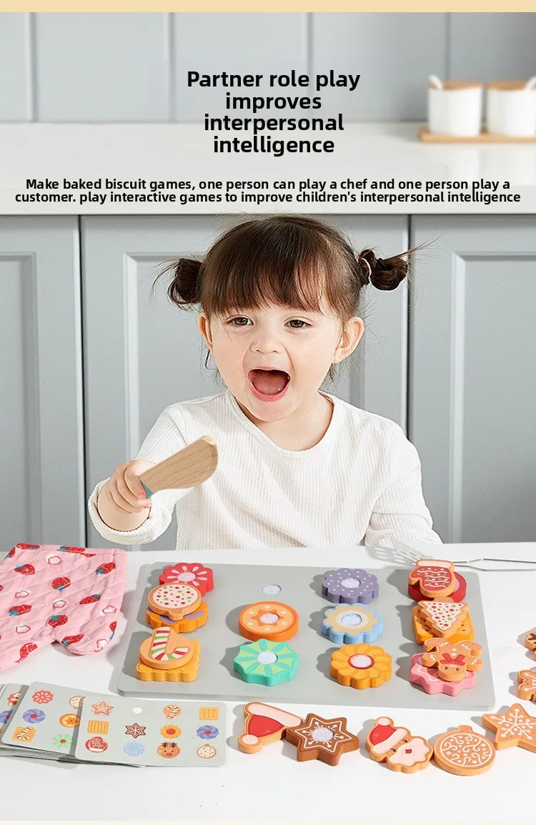 Träkakspussel för barns kökstillbehör Matleksaker för småbarn 1-3 år Rolllek Skär och baka Present för 3 4 5 år gamla flickor och pojkar Småbarns lärandeleksaker