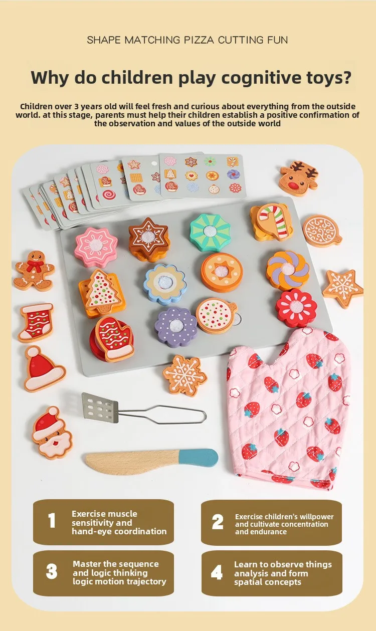 Jultema Trä kakleksak Matset för låtsaskök Dessert Pedagogiska leksaker för pojkar och flickor Gåvor