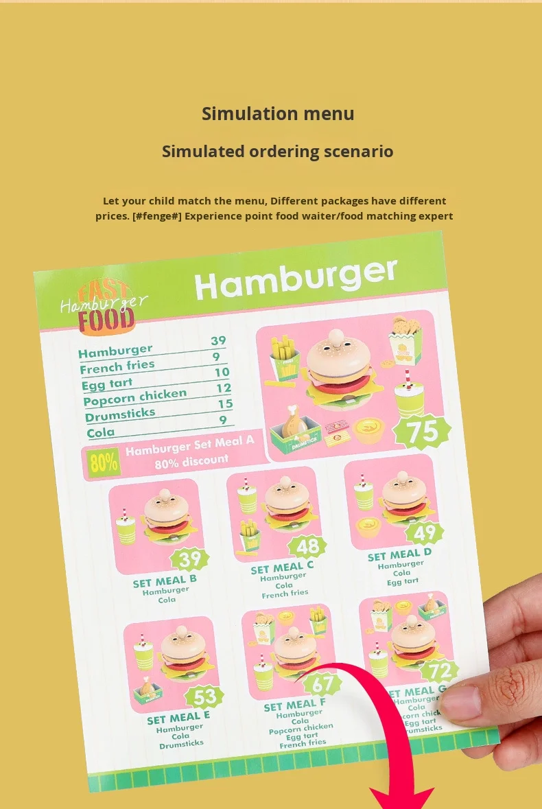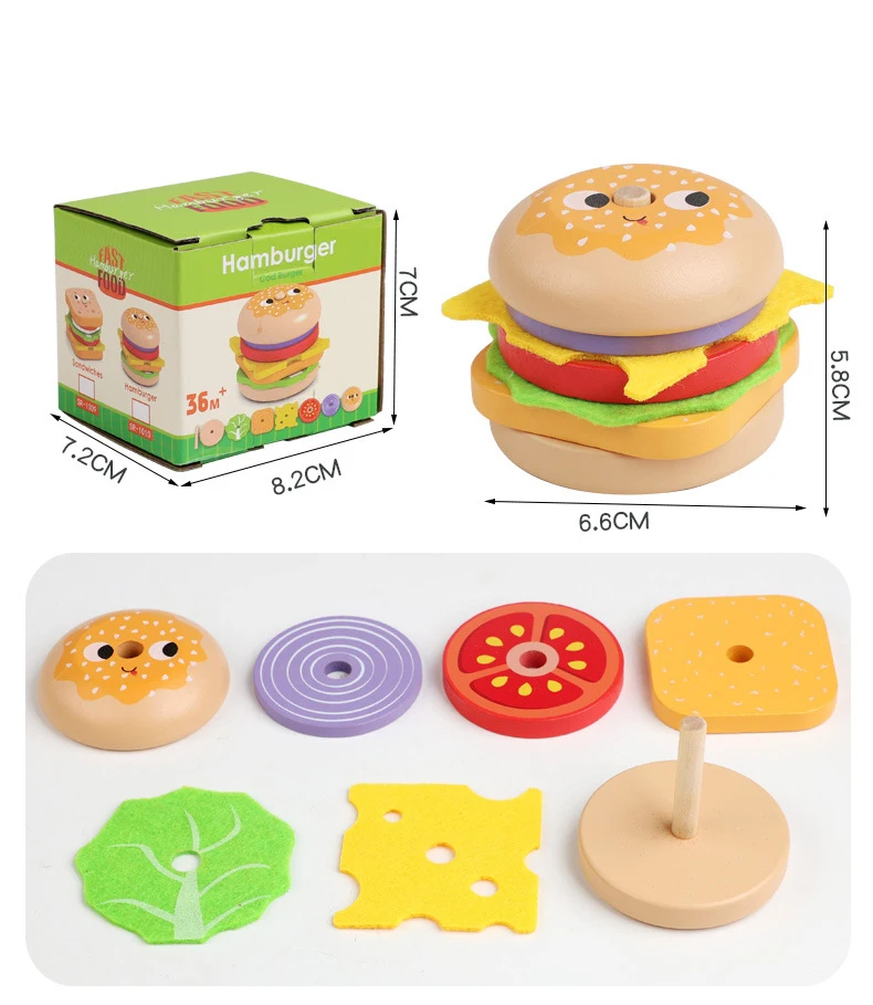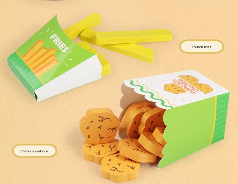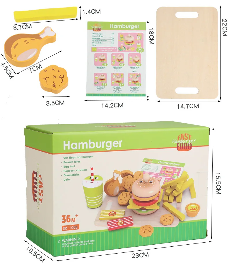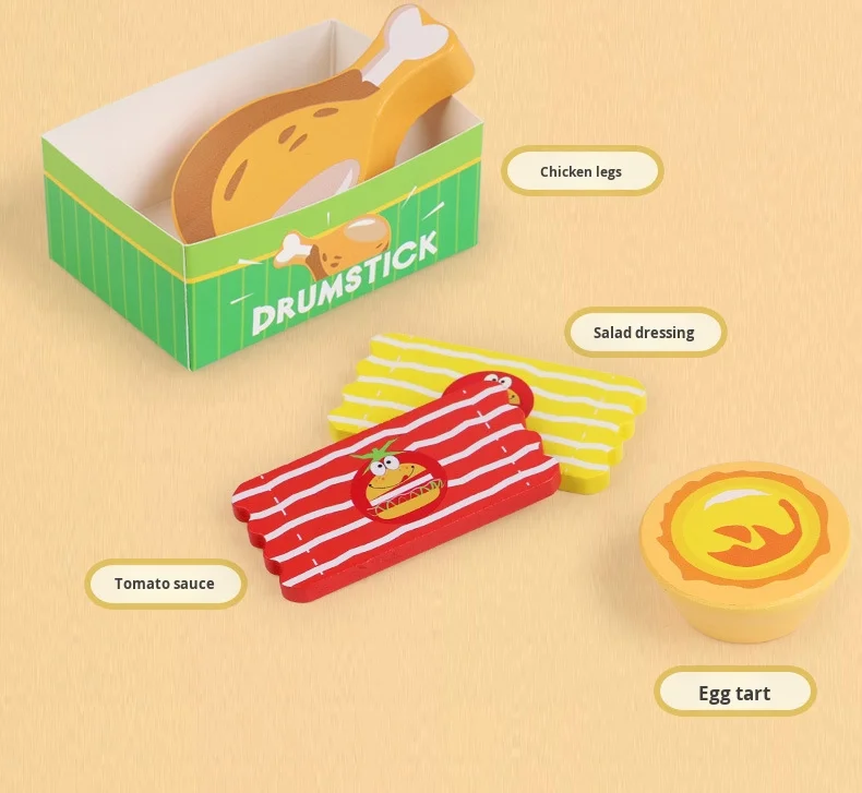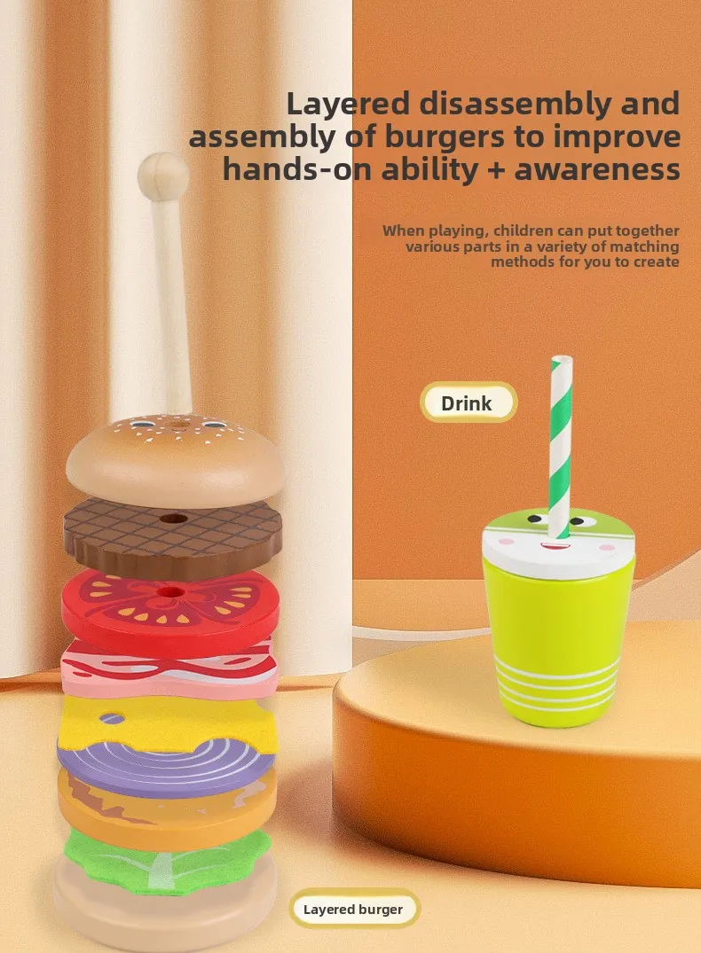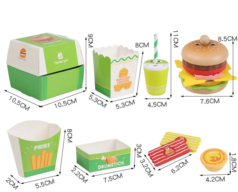 Lekmatset för barn Köksaccessoarer Trä simulering Hamburger Set Snabbmat Pommes Frites Dryck Smörgås Set Träleksaker