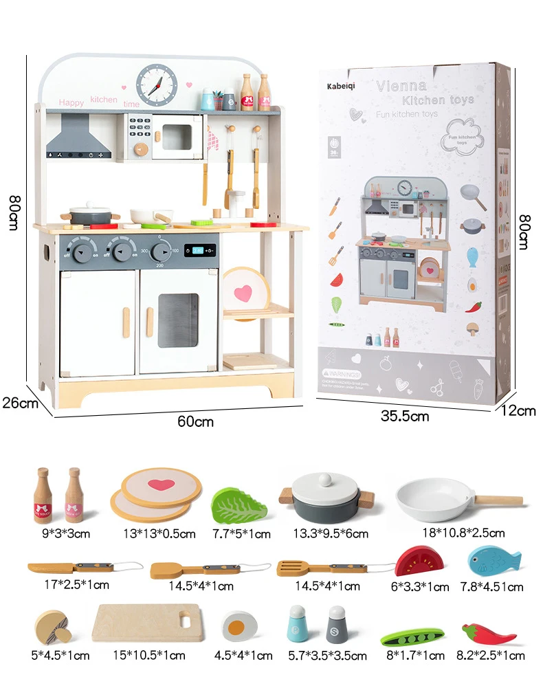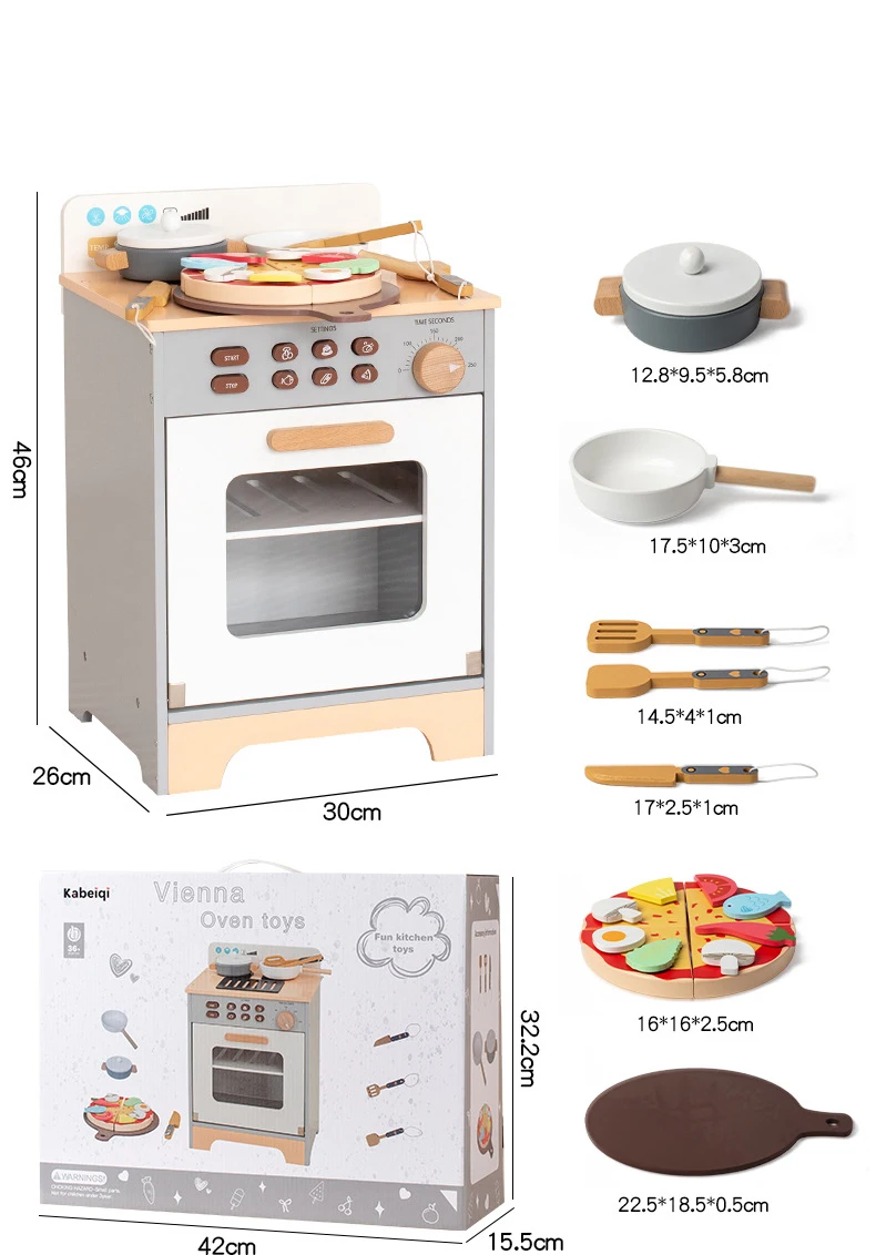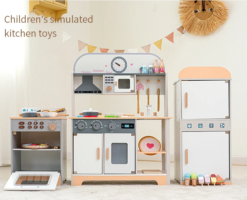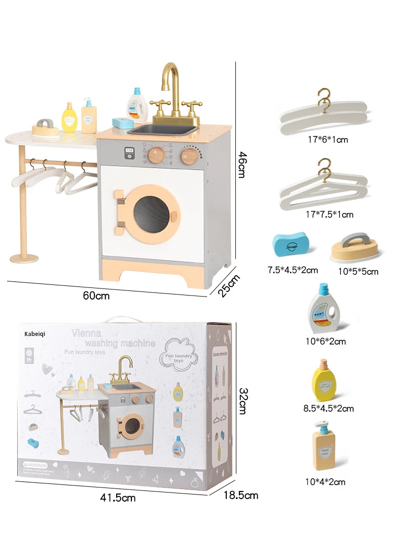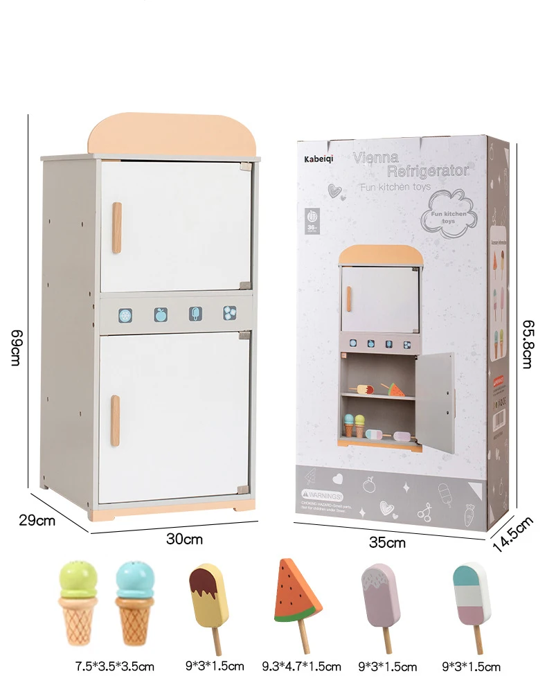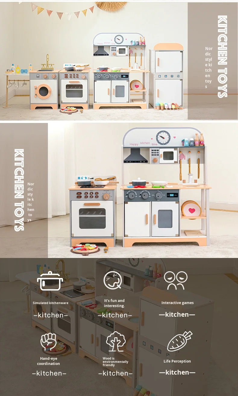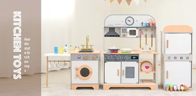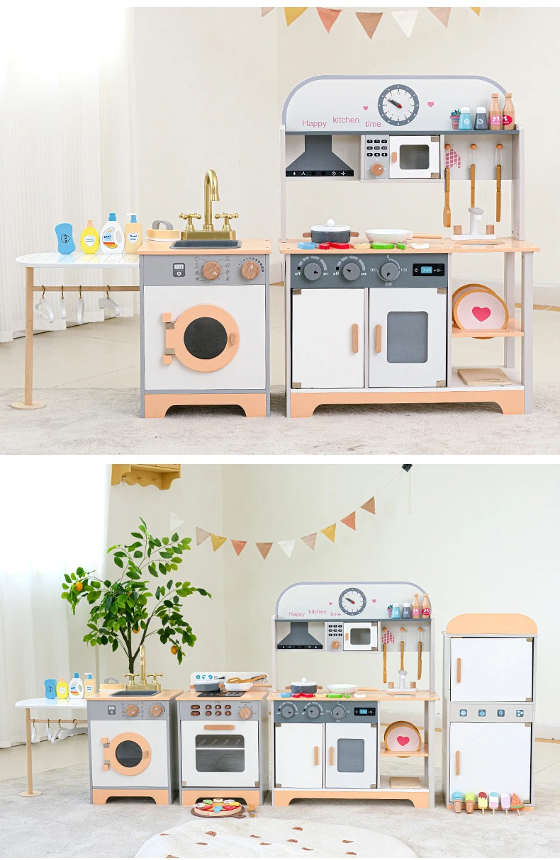 Trämini kökssats för småbarn Lekhus Kylskåp Tvättmaskin Spis för simulerad rolllek Förskolelek