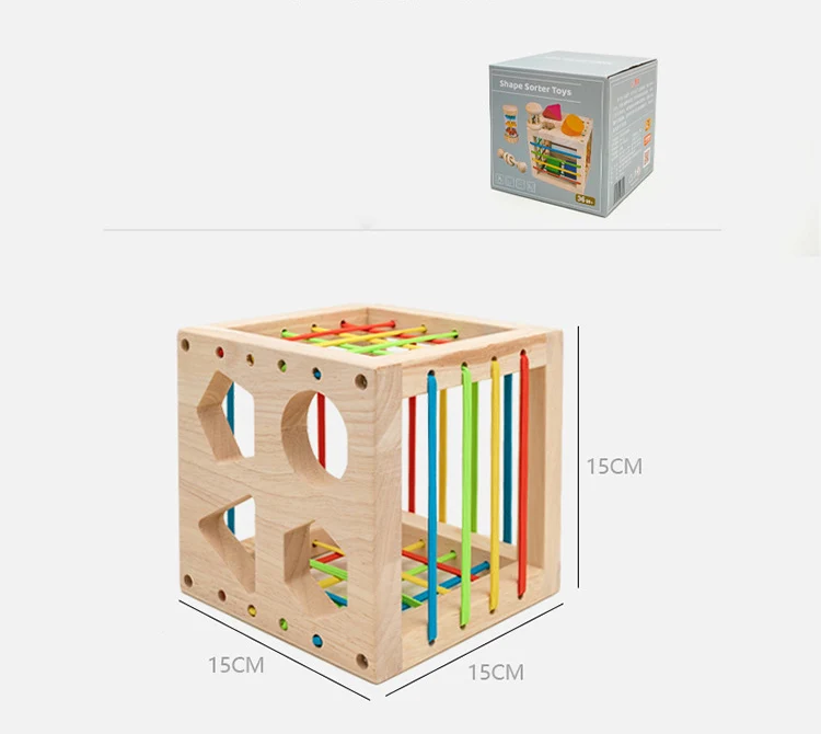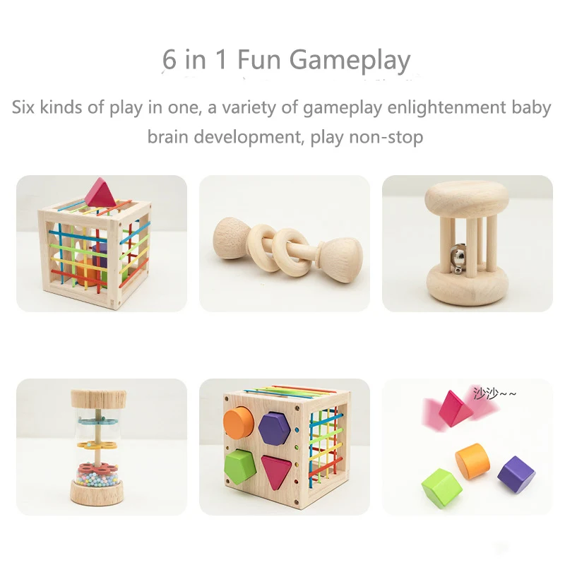 6-in-1 na Laruan para sa Bata, Maagang Edukasyon, Kahoy na Pambibilang ng Anyo (Shape Sorter Cube), Montessori na Laruan, Panlinang na Laruan sa Pagkatuto, Regalo para sa mga Babae at Lalaki na 2-4 Taong Gulang