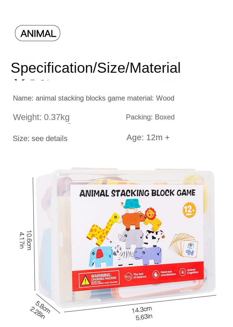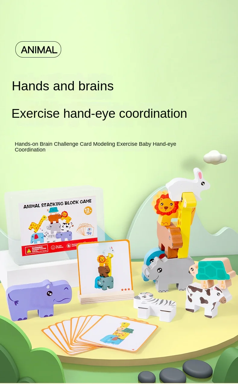 Bebek Hayvanları Yığılabilir Oyuncaklar, İnşa Blokları Oyunu, Çocuklar İçin Montessori Ahşap Yığılabilir Oyuncaklar, Toptan Satış, 1-3 Yaş Erkek ve Kız Çocuklar İçin